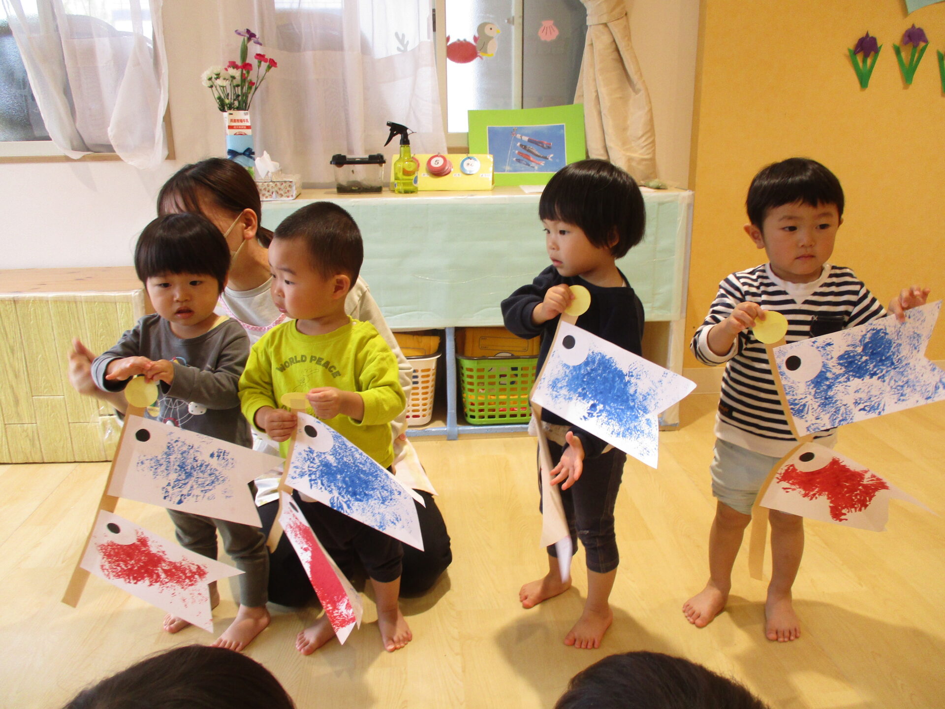 こいのぼりの作品を学年別で発表しました。