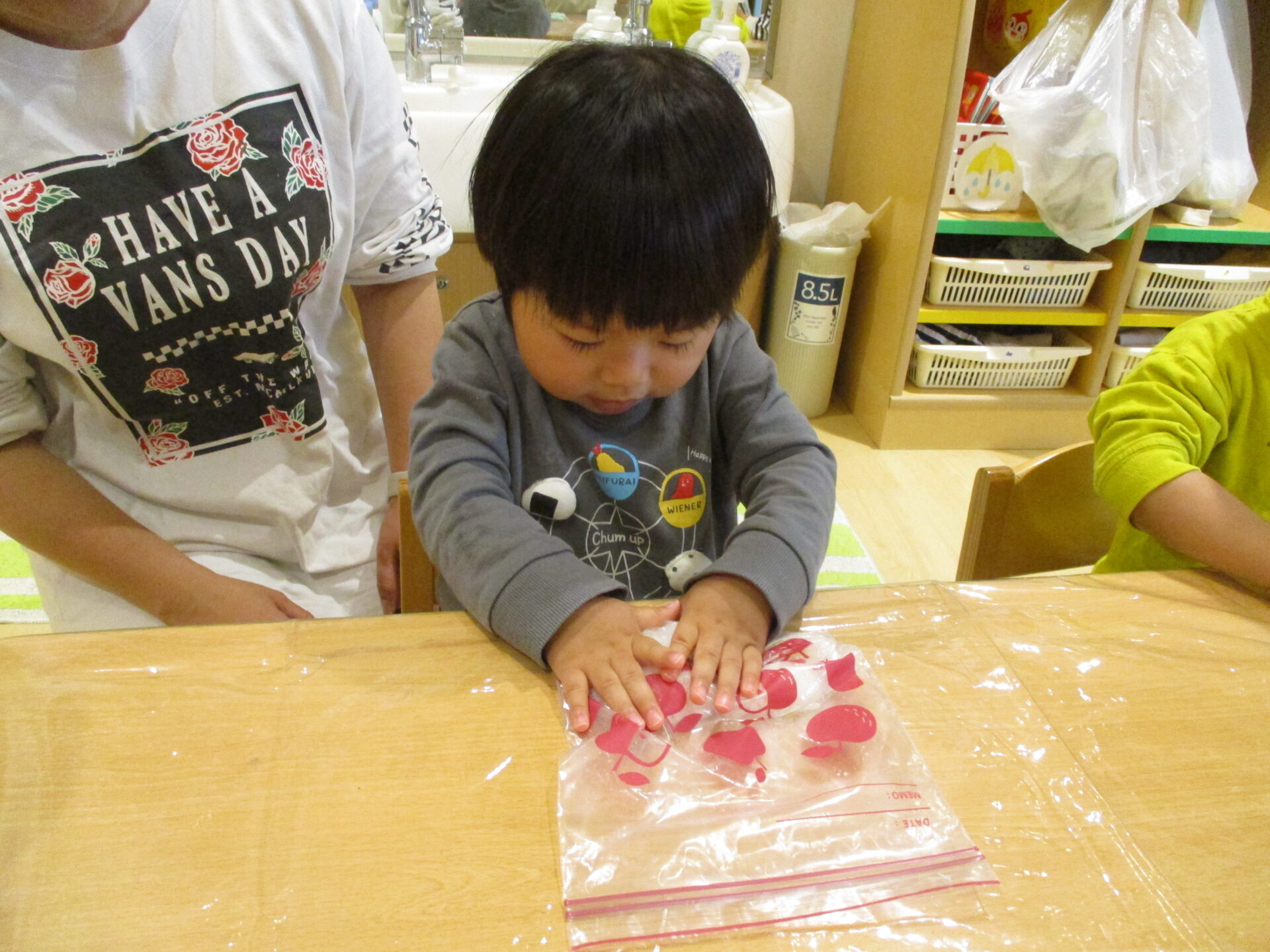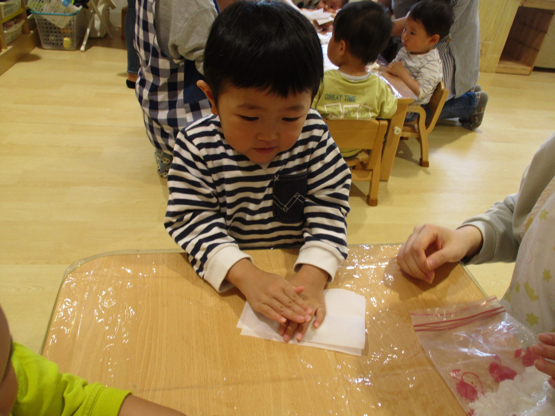 難しい所は保育士と一緒にやりました。