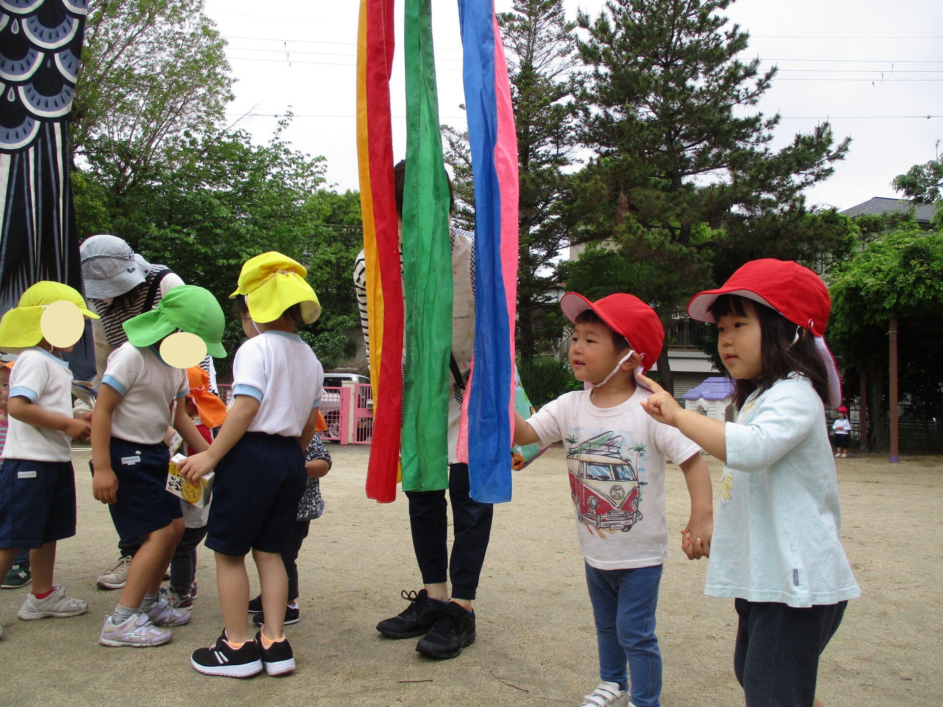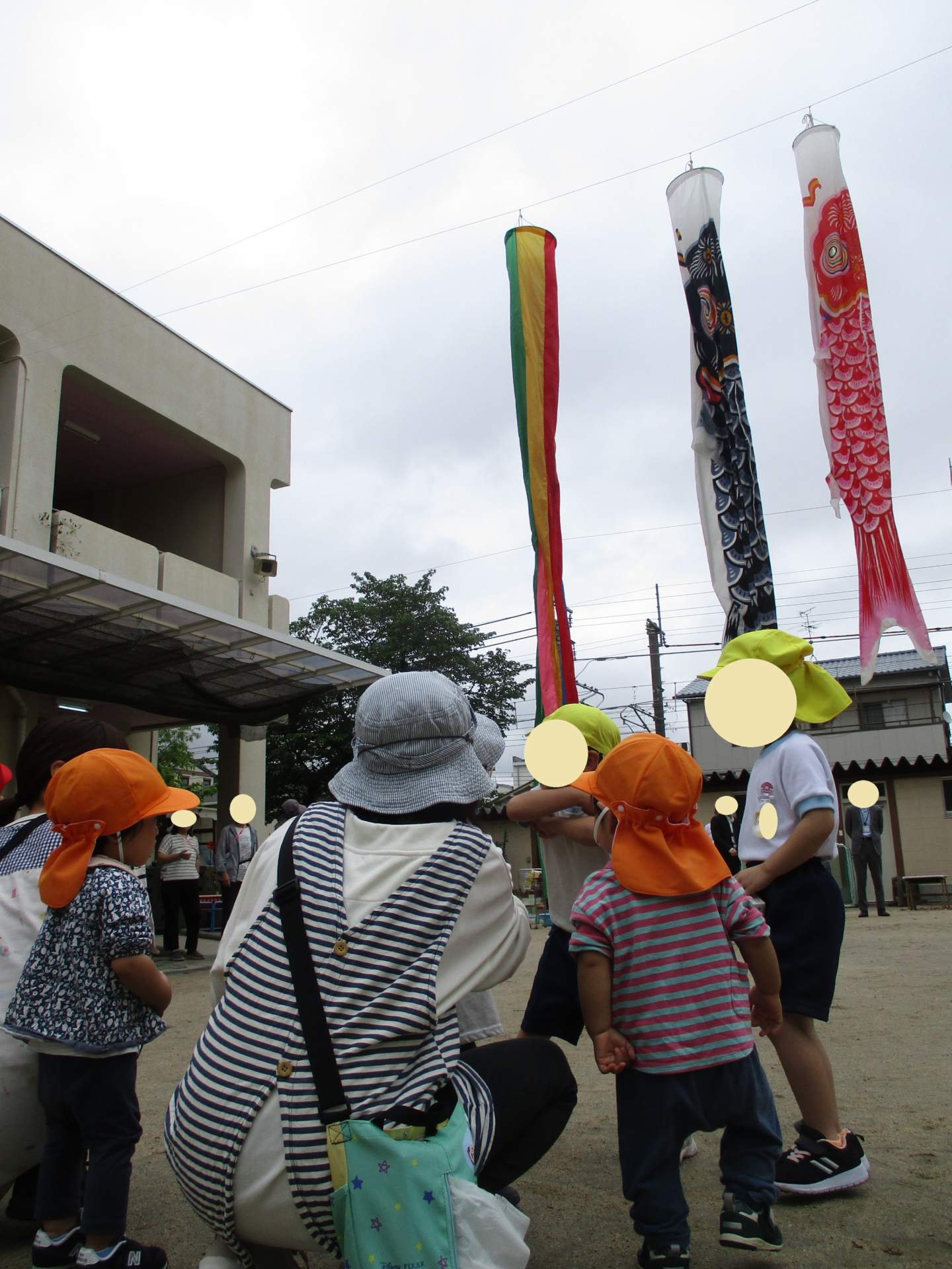 例年、園庭にこいのぼりを飾っている、近所のありおか幼稚園に行ってみました。
