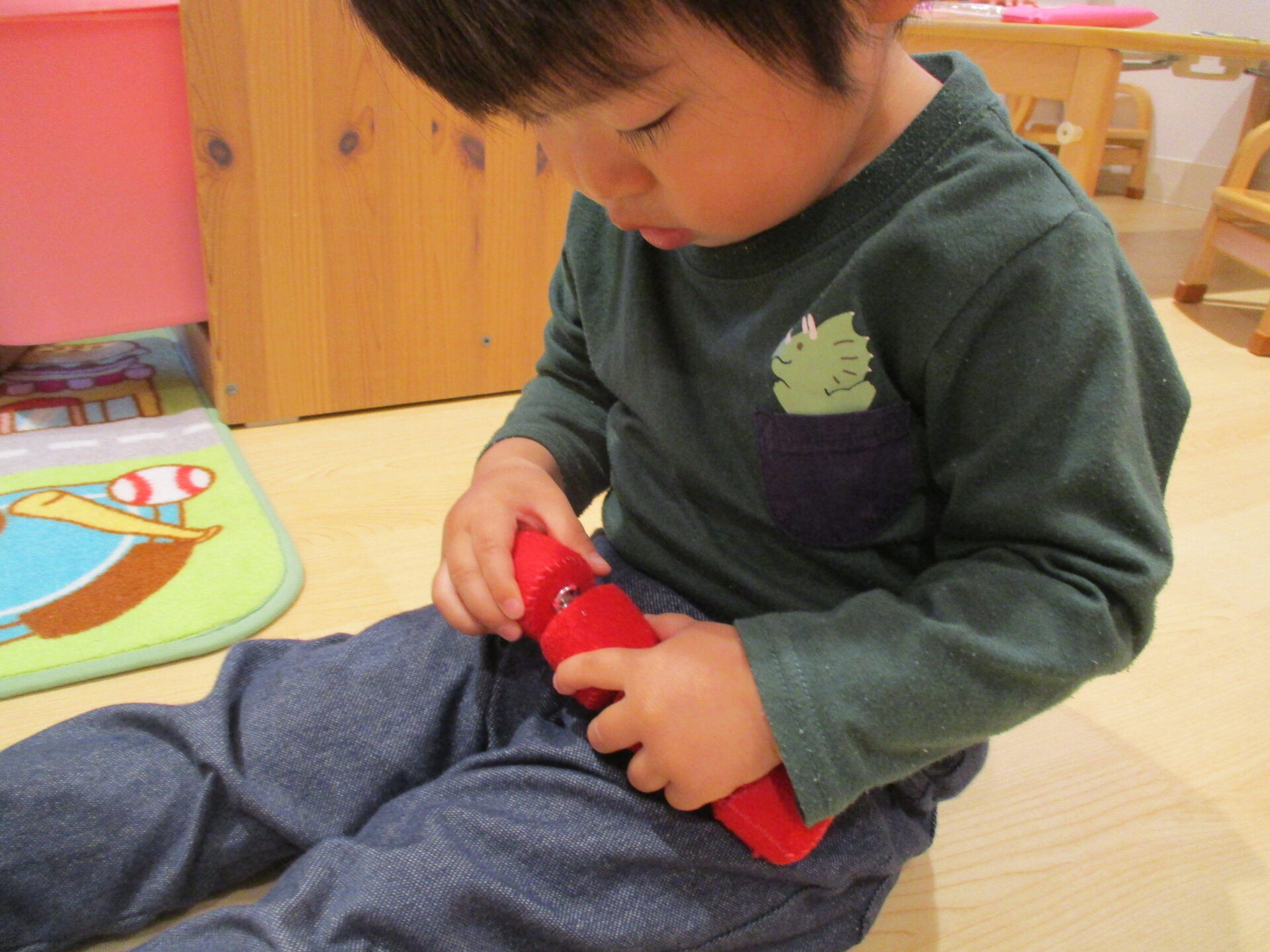 それを見て興味を持ったあめ組(当時だいち組)が、スナップの凸と凹を合わせて繋げようとするようになりました。