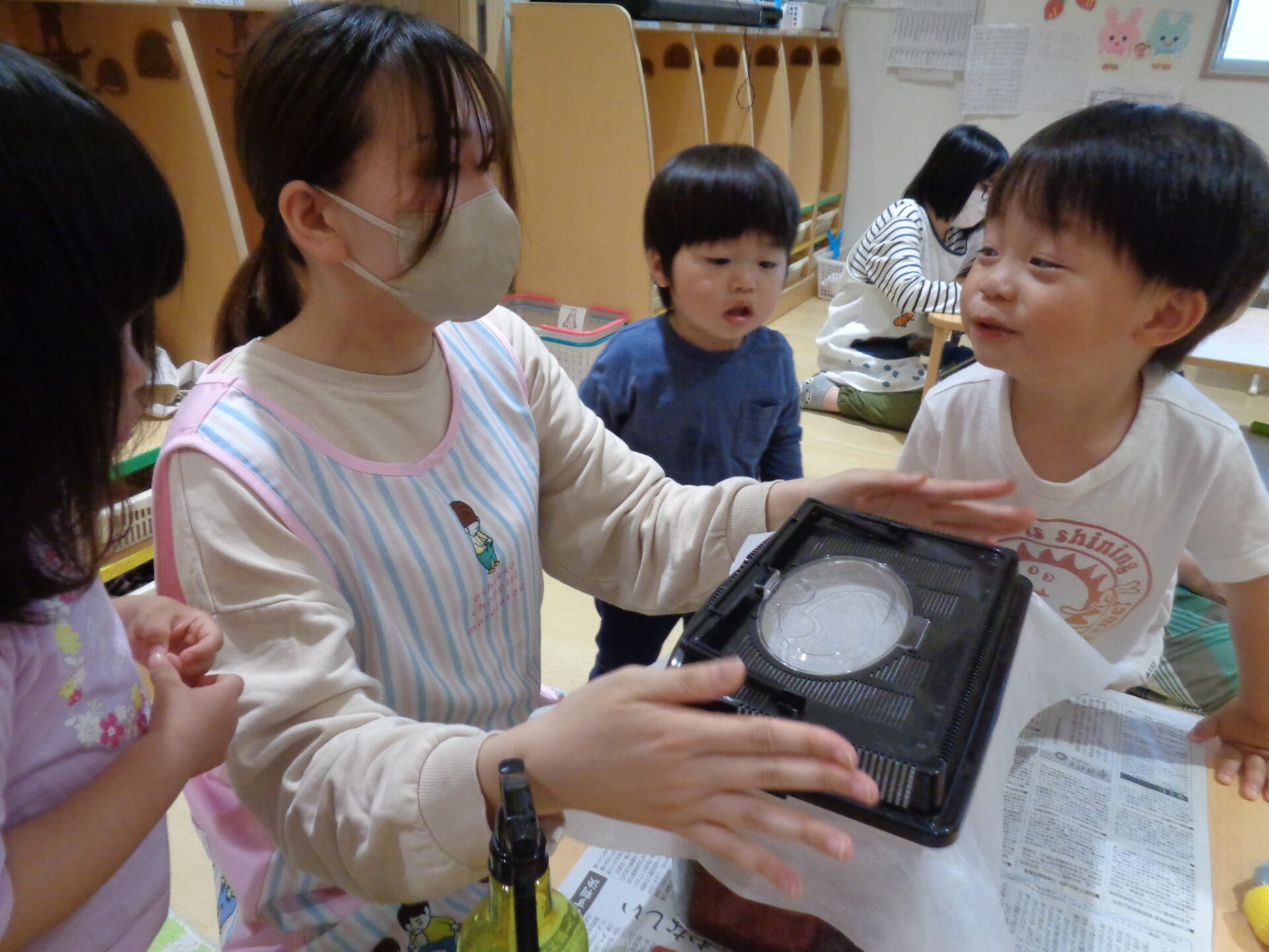 普段昆虫と触れ合う機会がほとんどない子ども達ですが、大丈夫でしょうか・・・?