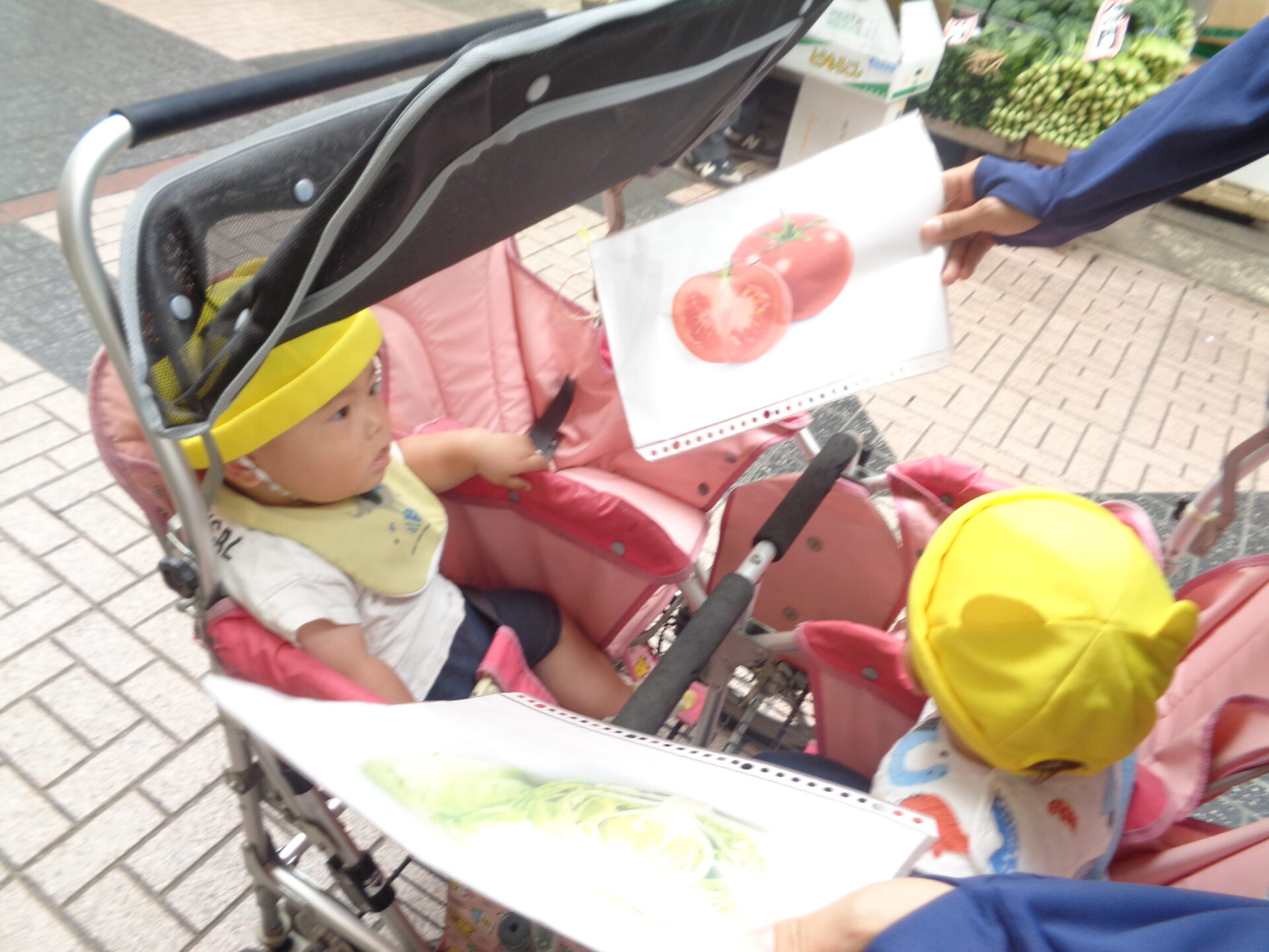 今回は夏野菜に触れようということで、園の近くの商店街へ野菜を買いに行きました。