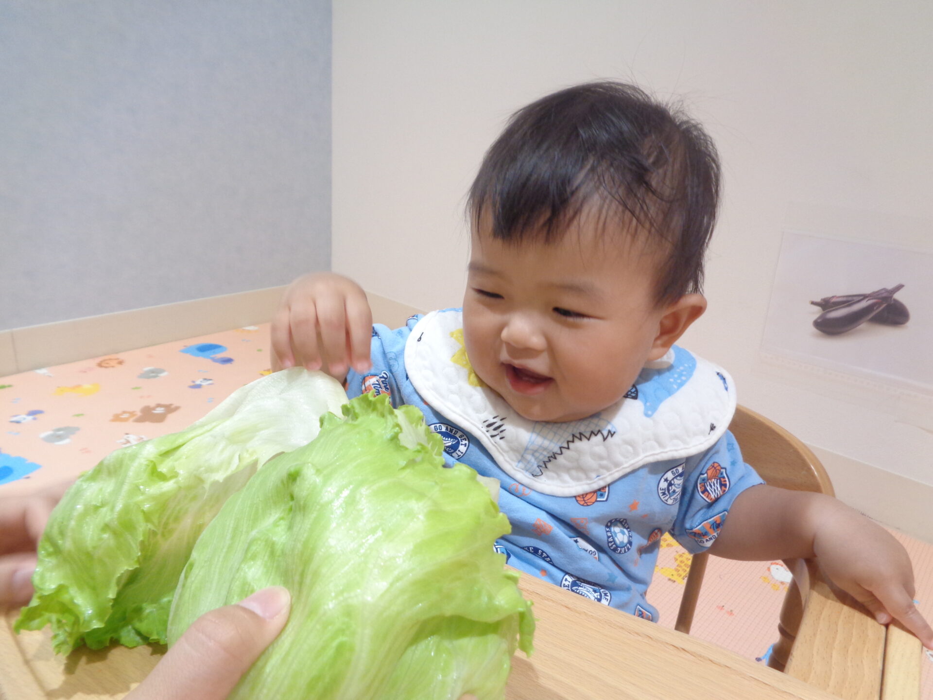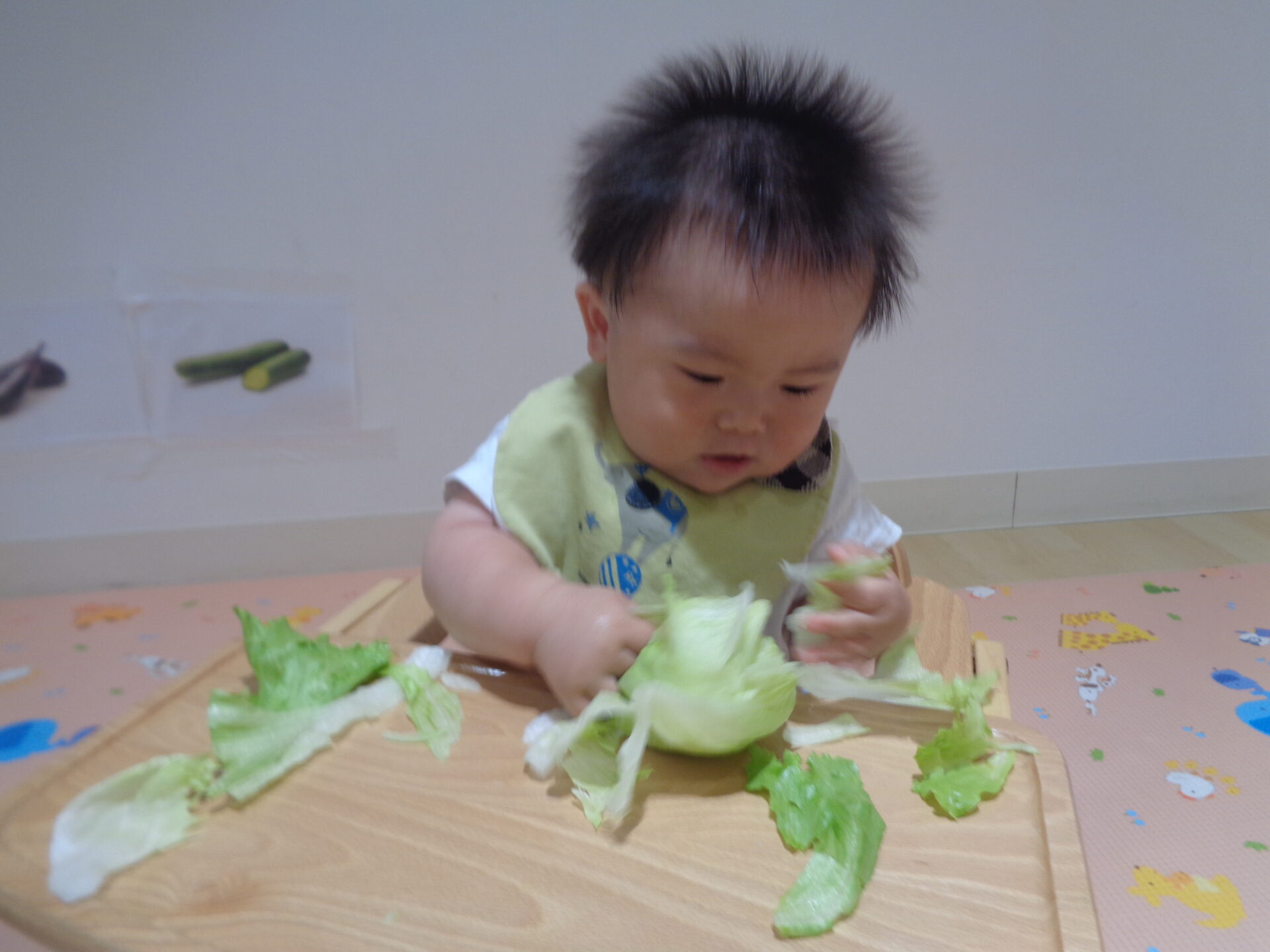 またレタスを触った時に”パリッ””シャキッ”と音が鳴るのが、楽しかったようで、音が鳴るたびに、嬉しそうでした✨