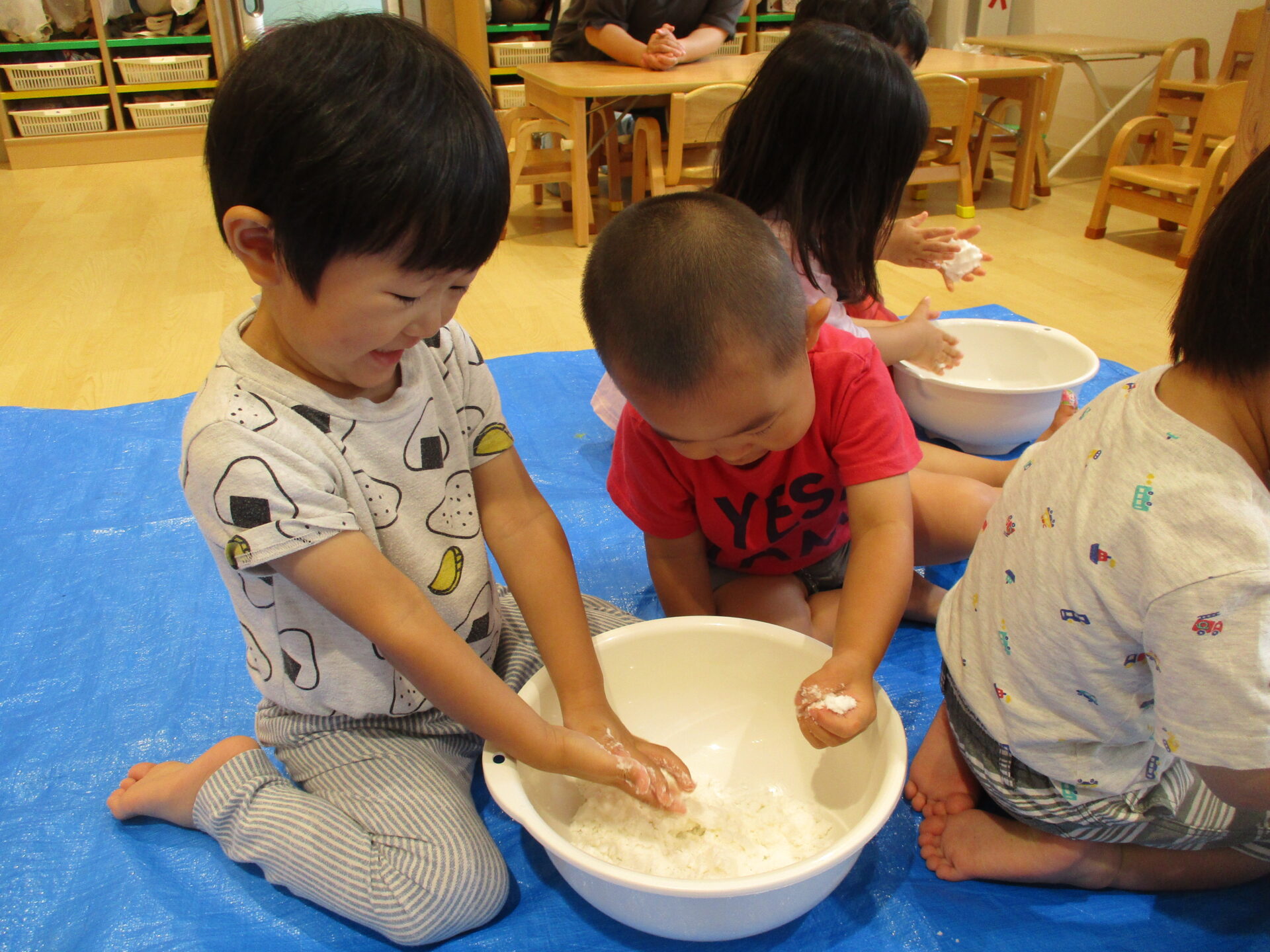 あめ組で感触遊びをしました。