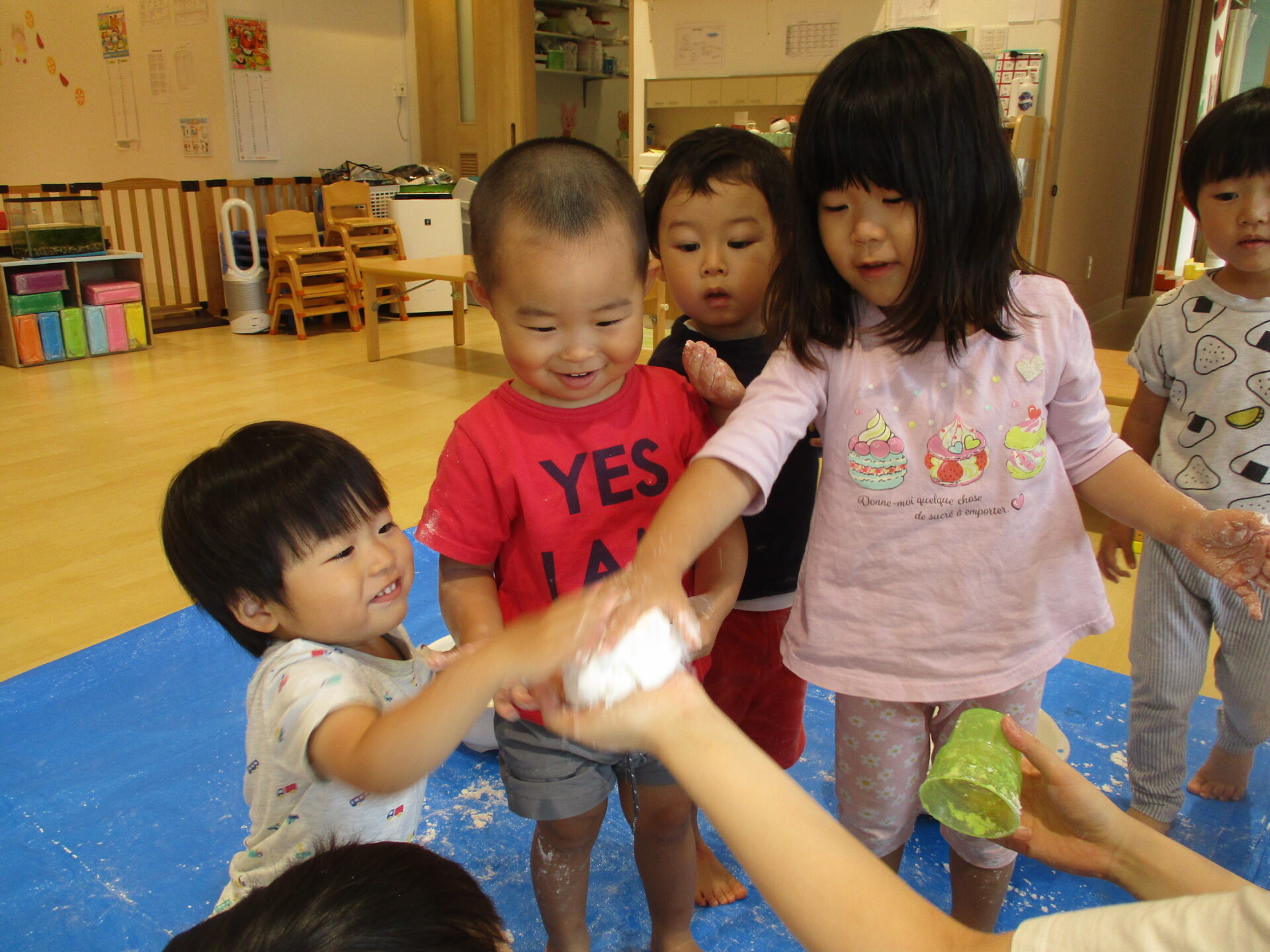 「パラパラ~」と上から降らしてみたりとそれぞれの楽しみ方で遊んでいました👏