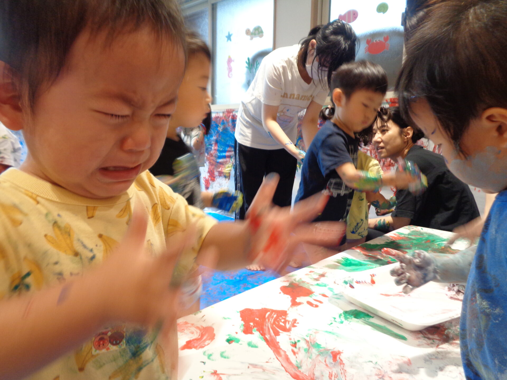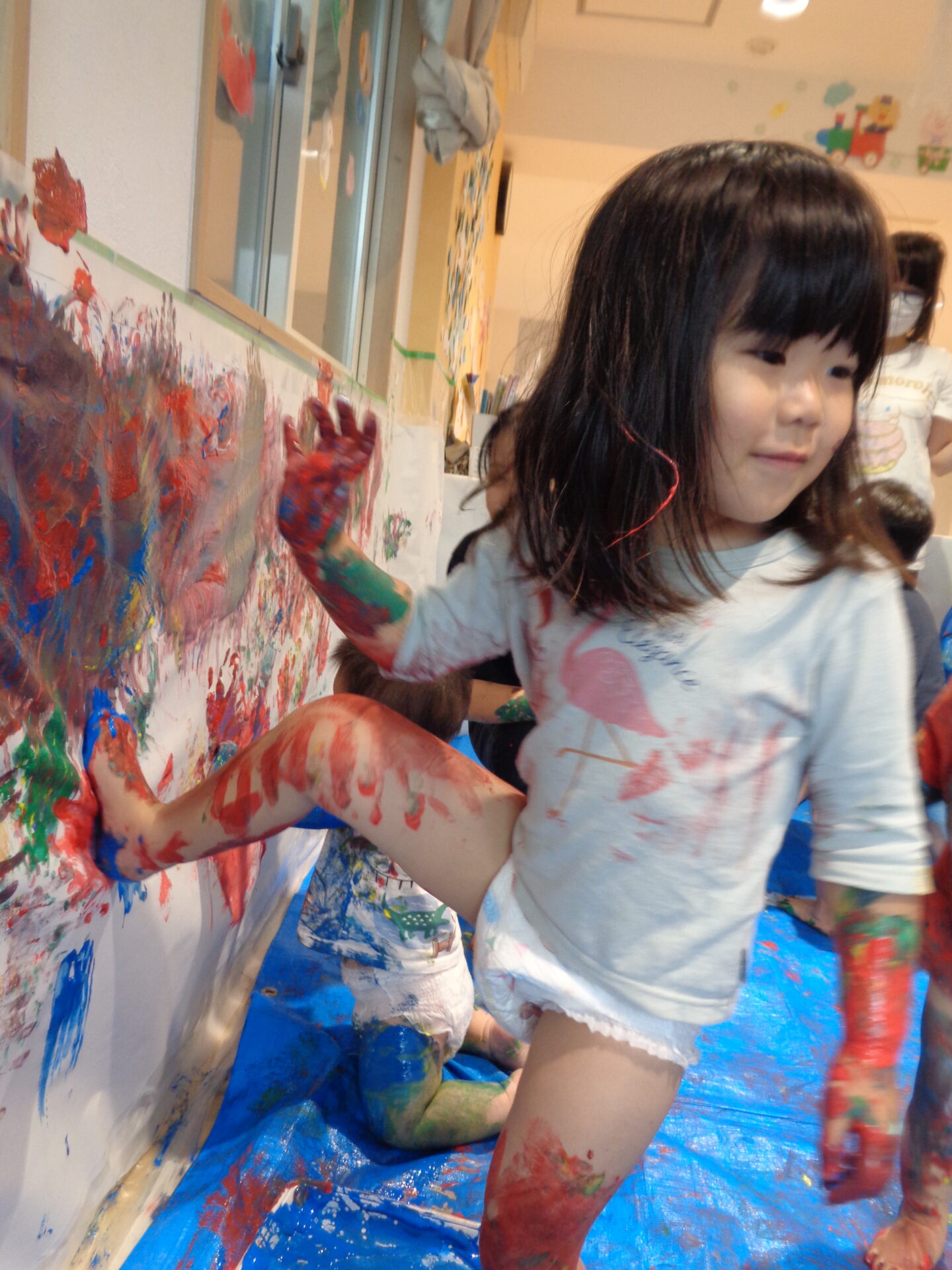 この日は朝からボディペインティング仕様の部屋だった為、少し戸惑っていた子ども達😅