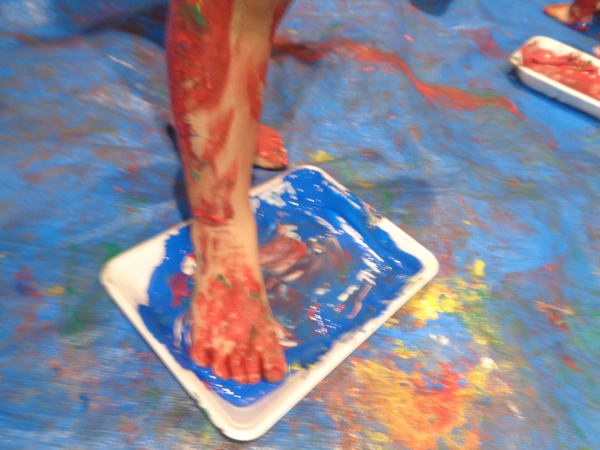 遊び始めて一瞬にして模造紙と服がカラフルになりました👏