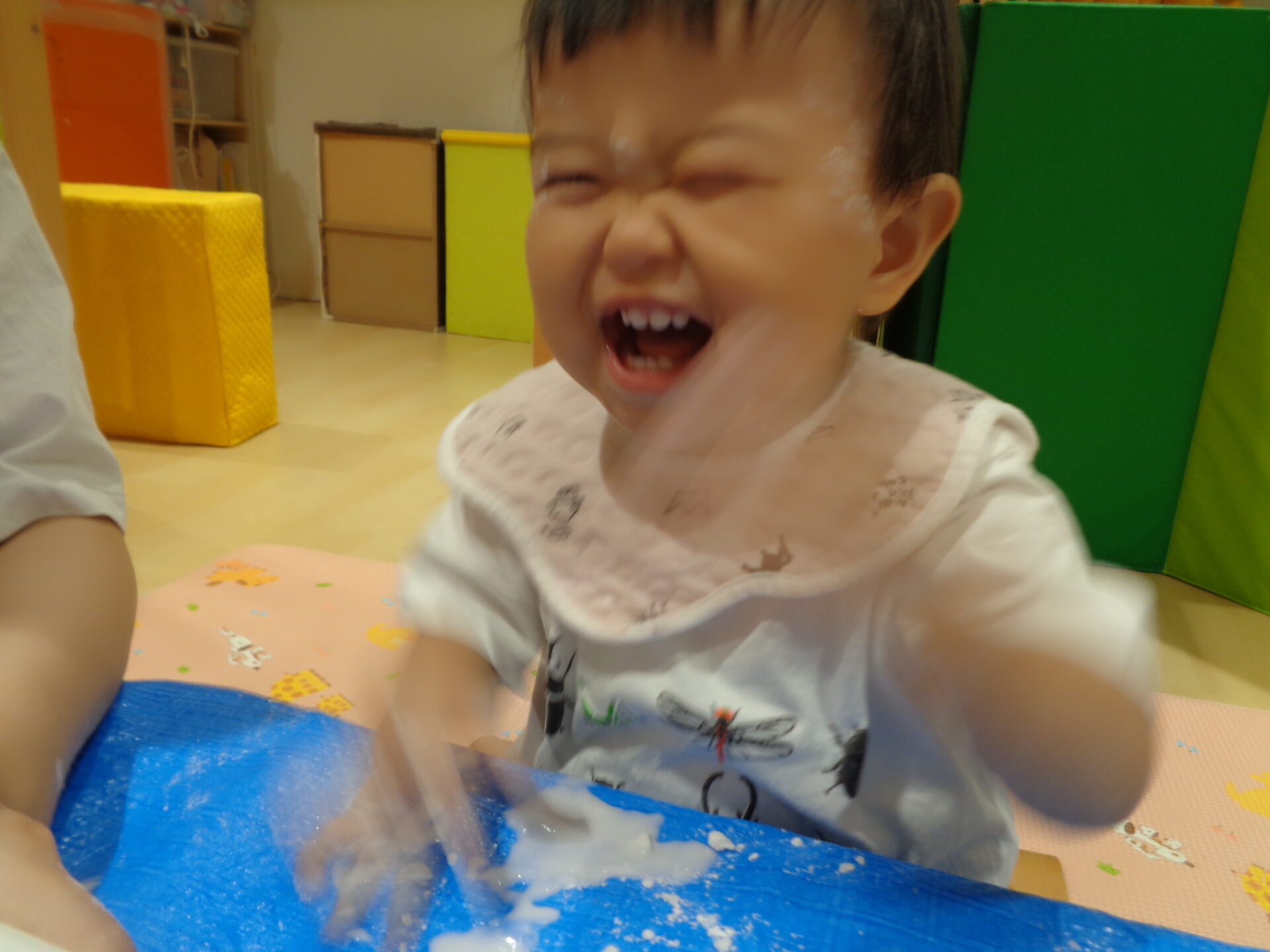 先日、片栗粉を使って感触遊びをしました!