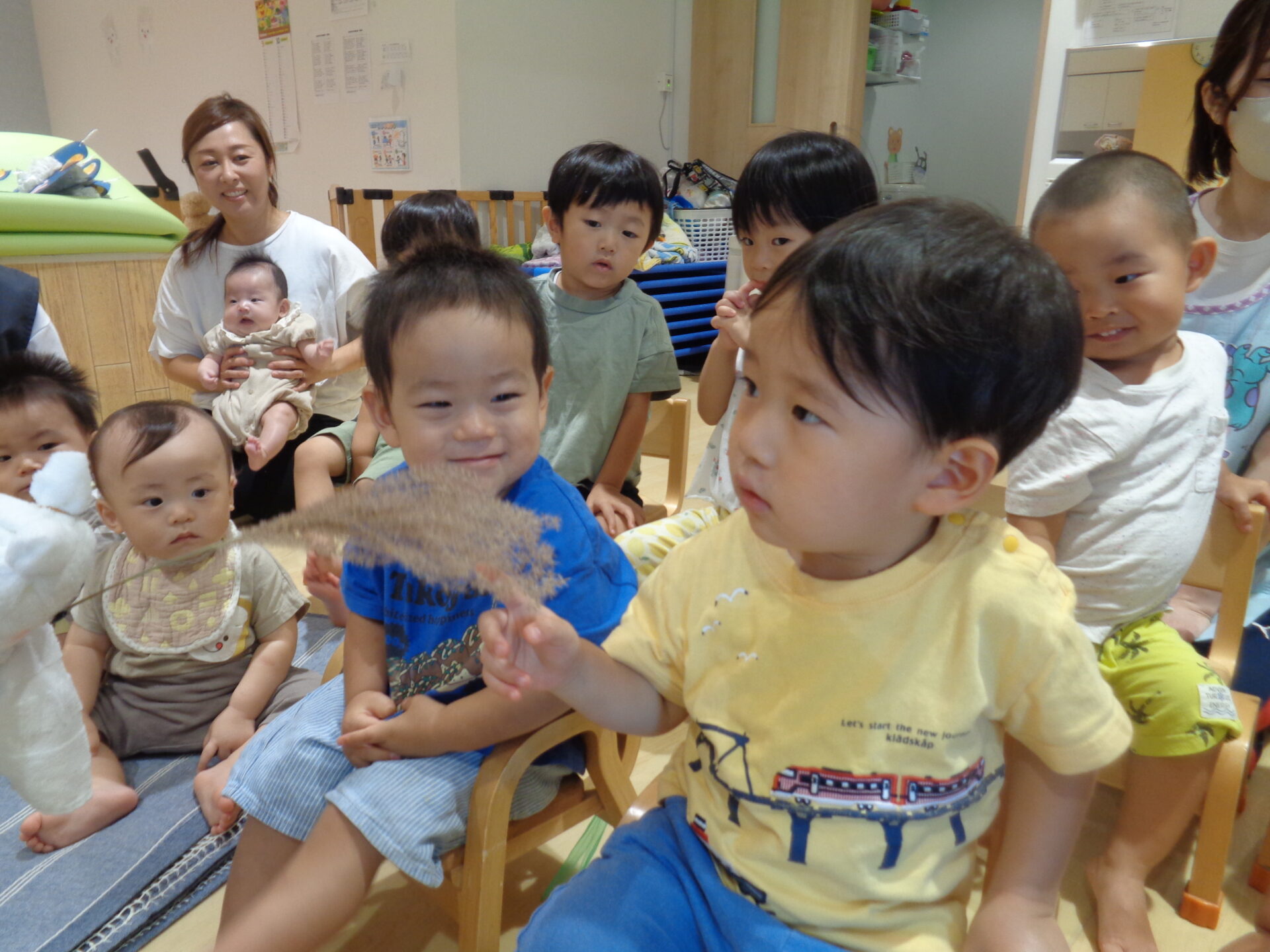 実際にススキ・月見団子を見て、何故これらをお供えするのか、うさちゃんに教えてもらいました。