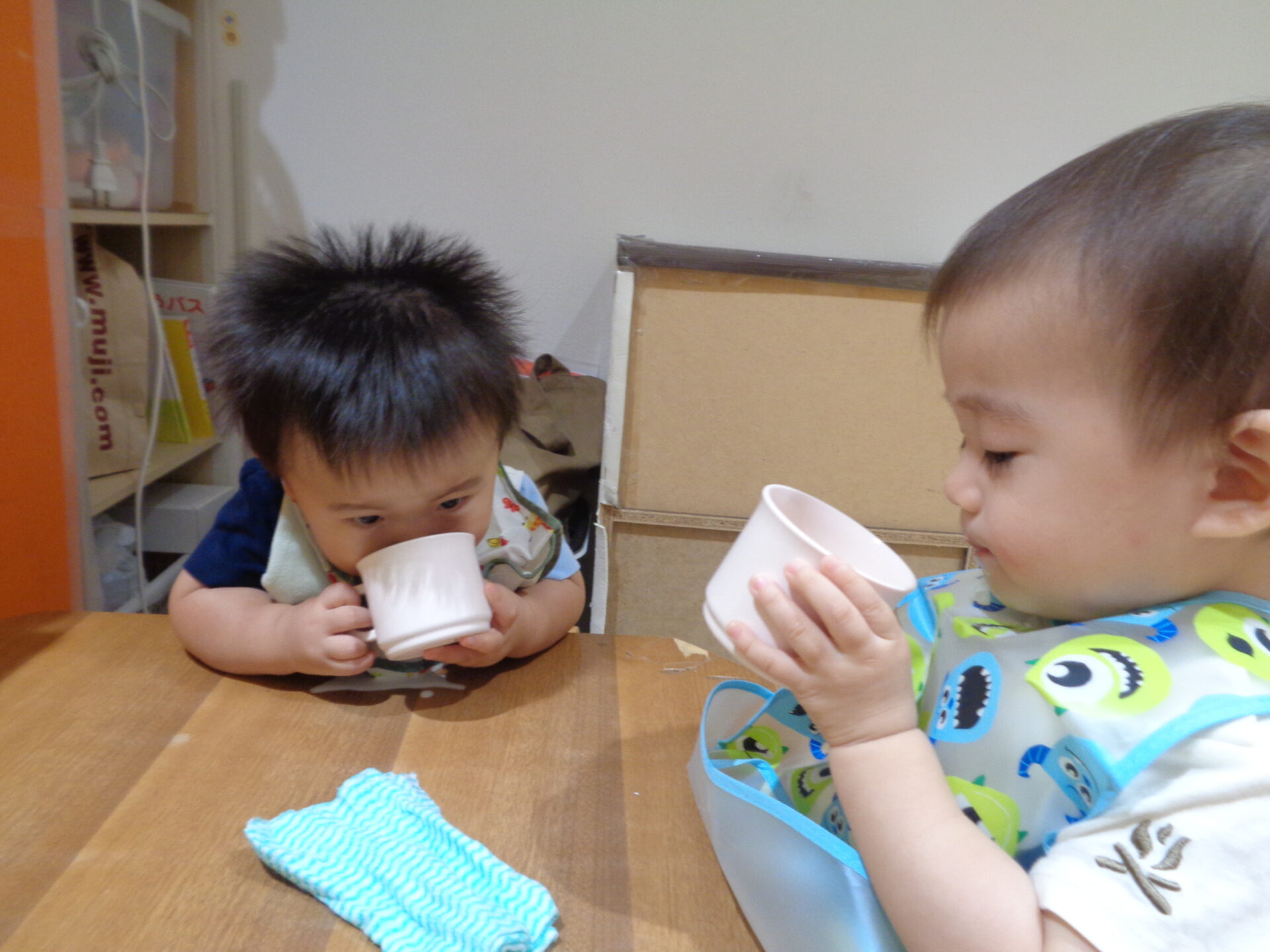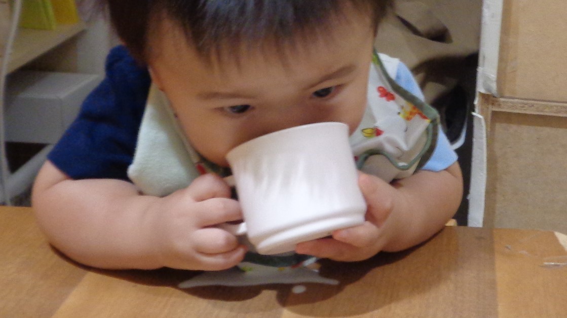 コップ飲みも上手になってきました!