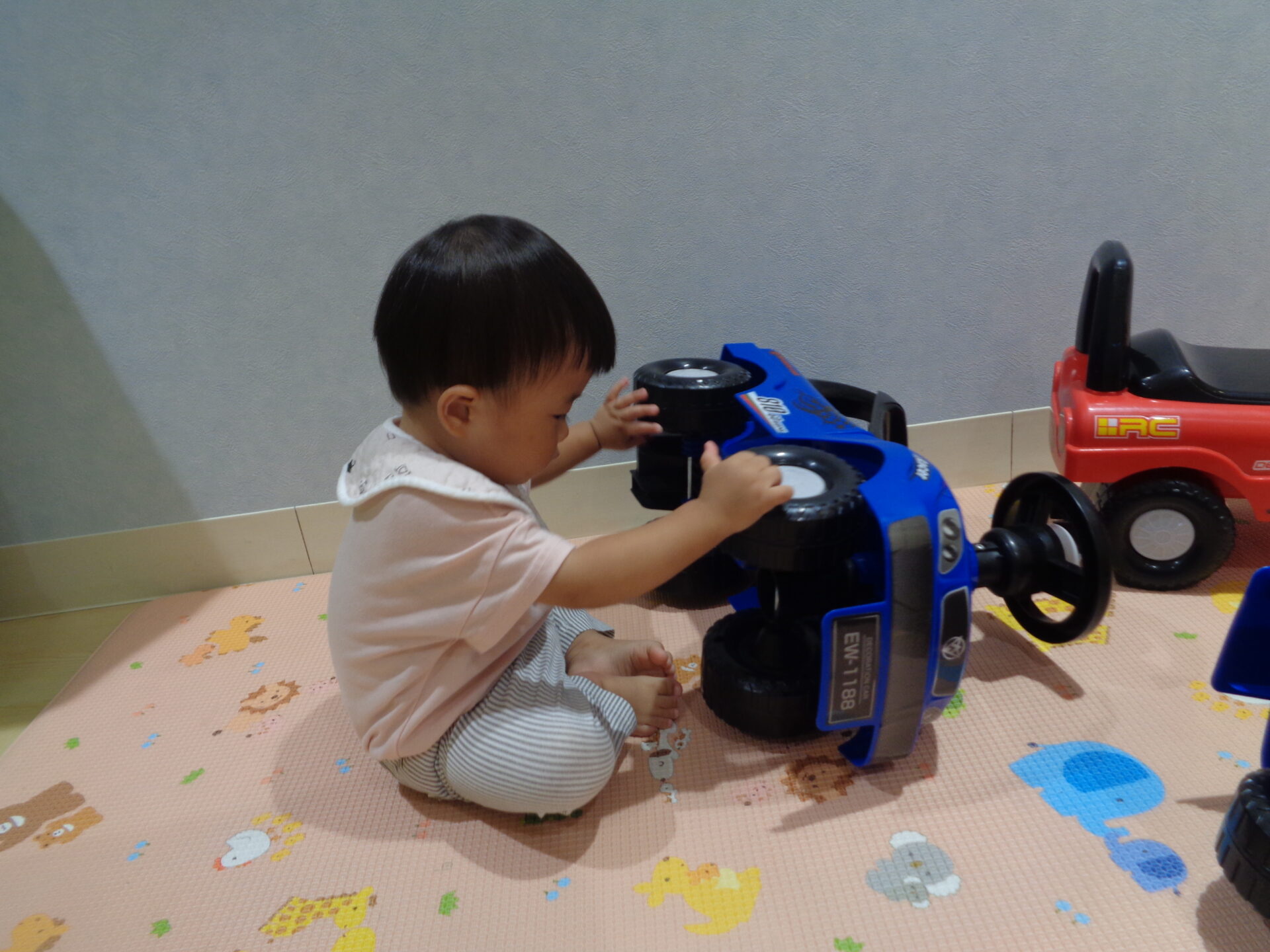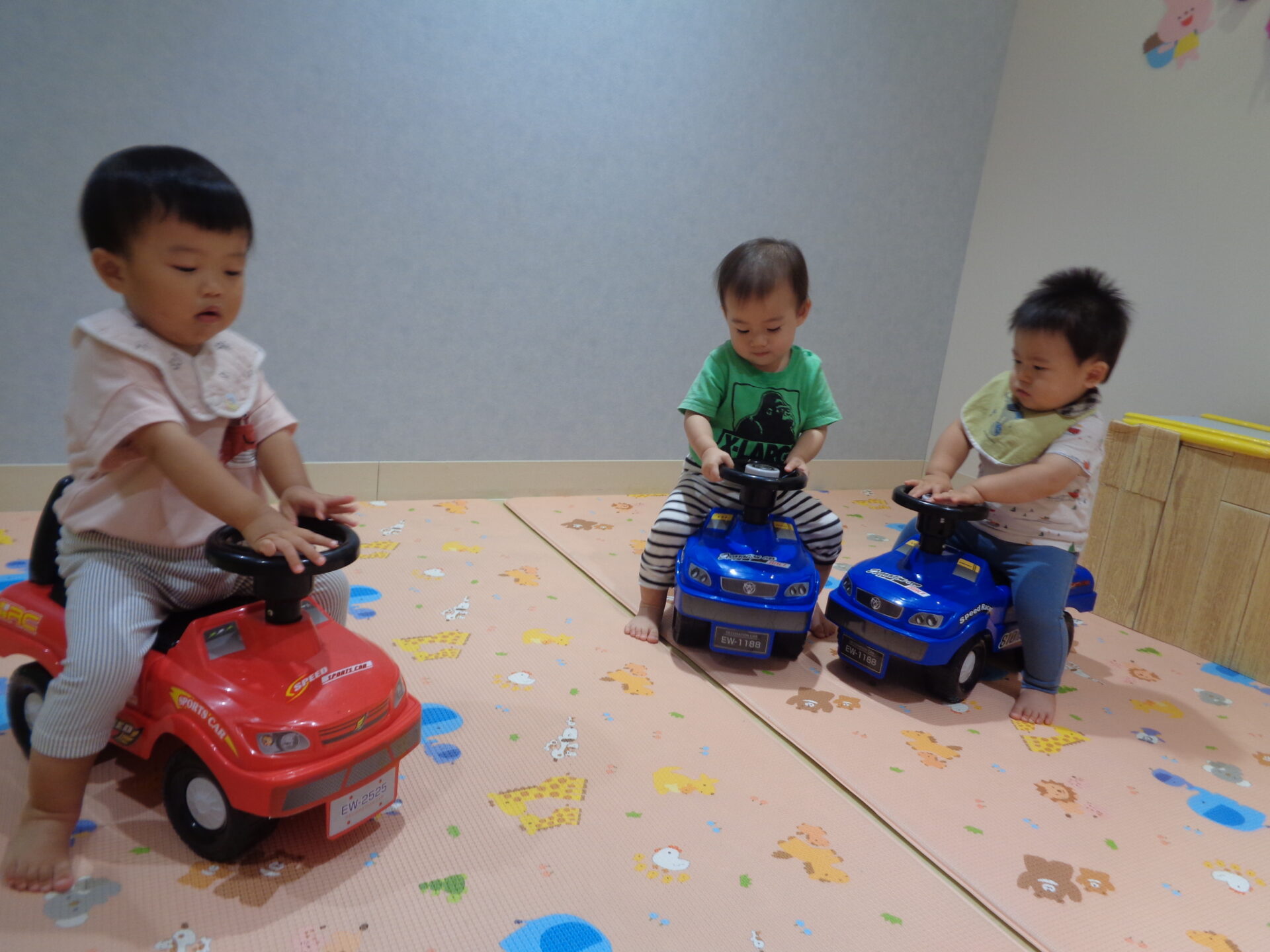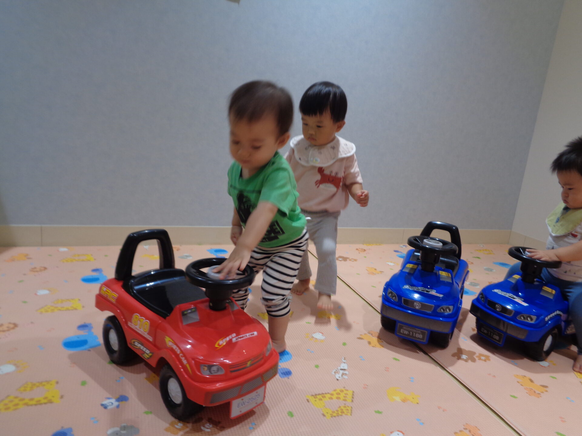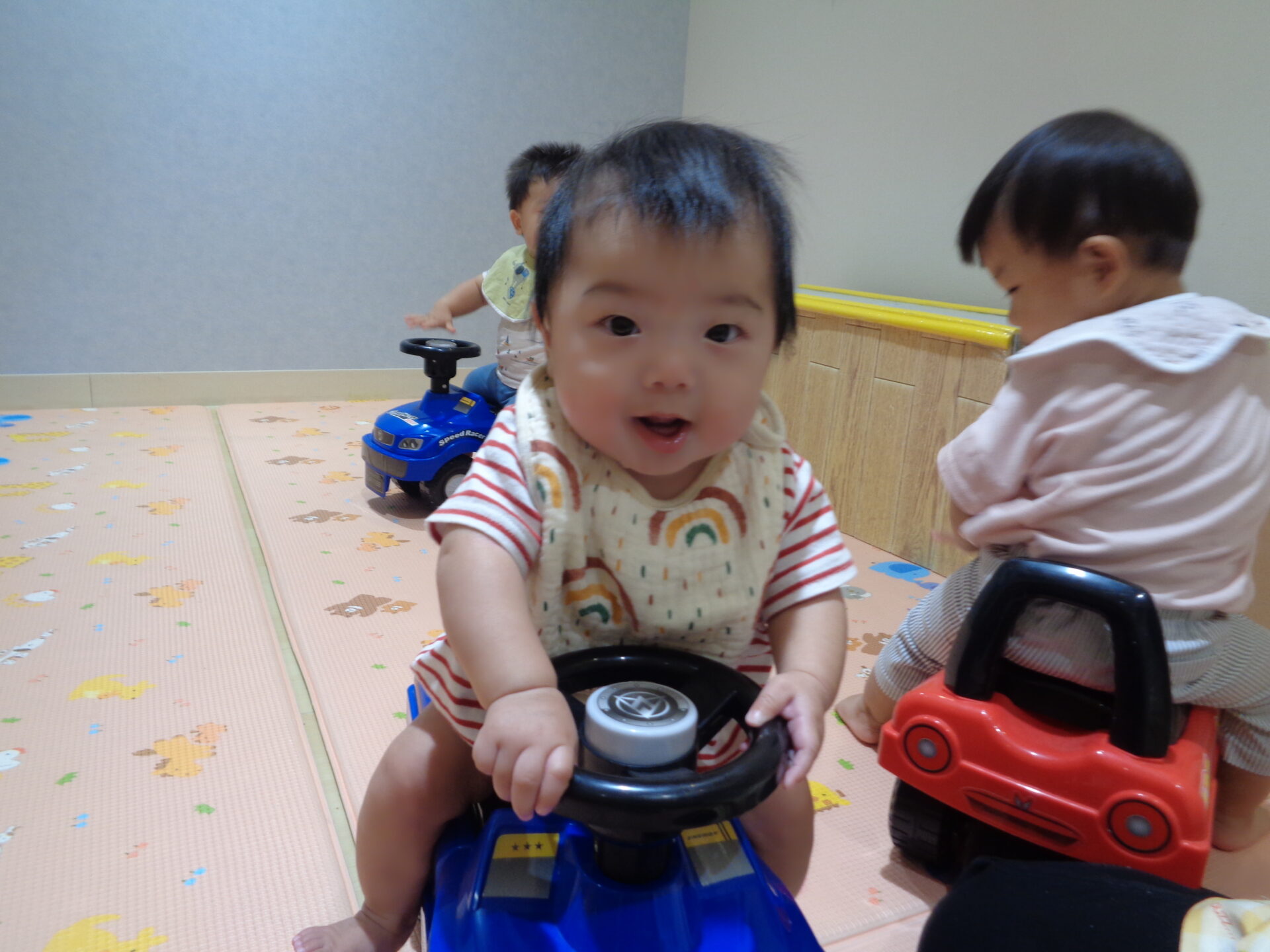 歩ける3人のお友だちは、一台ずつにまたがり、みんなでクラクションを鳴らして喜んでいました😊