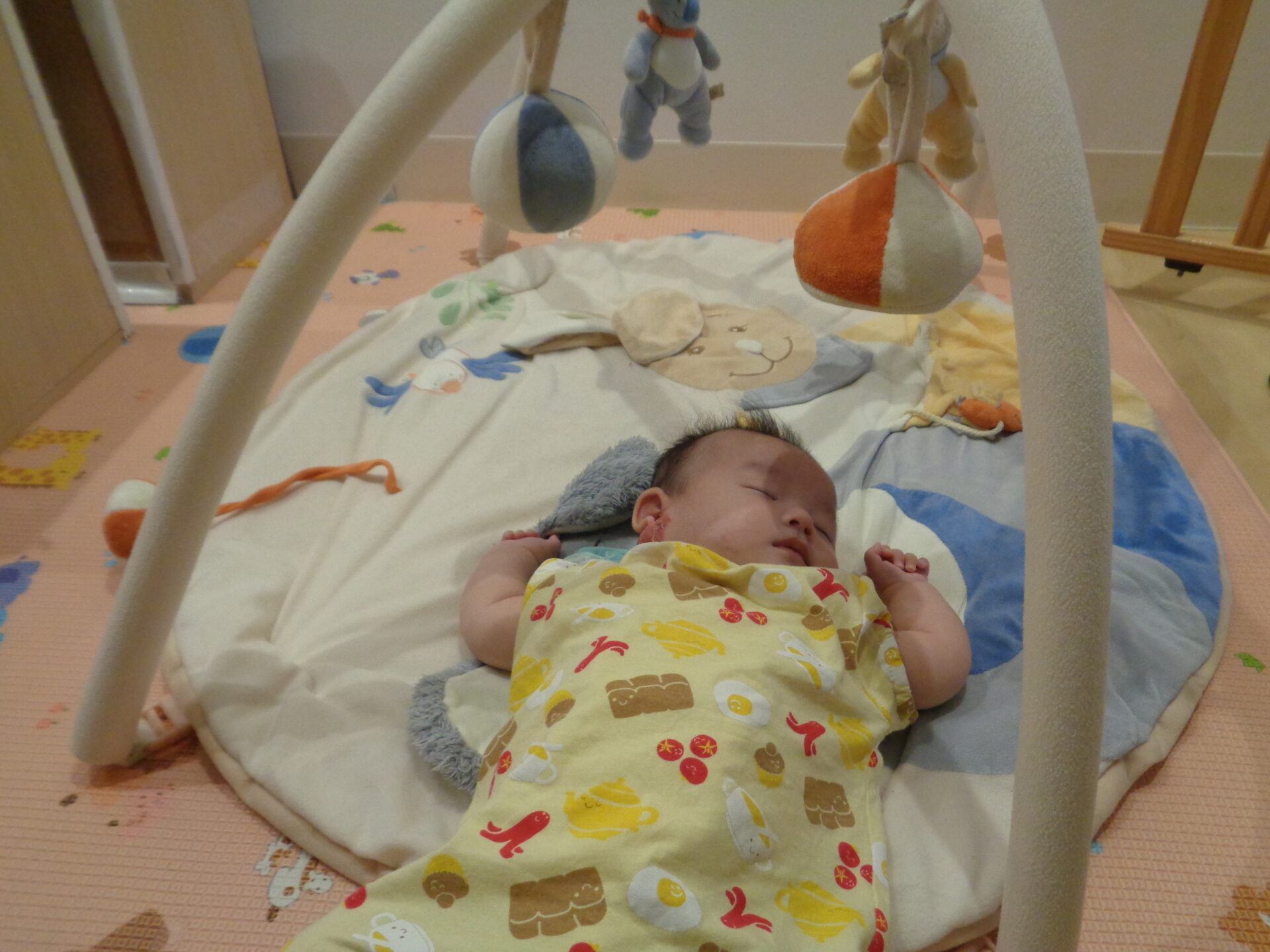 小さな小さなお友だちも、お気に入りのジムの中でスヤスヤ寝ていました💕