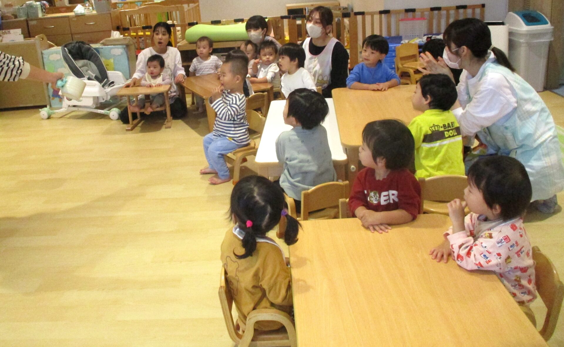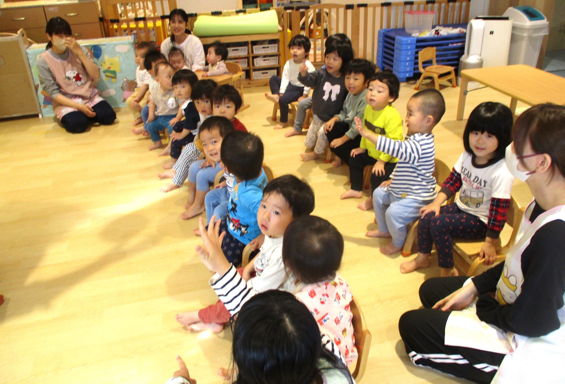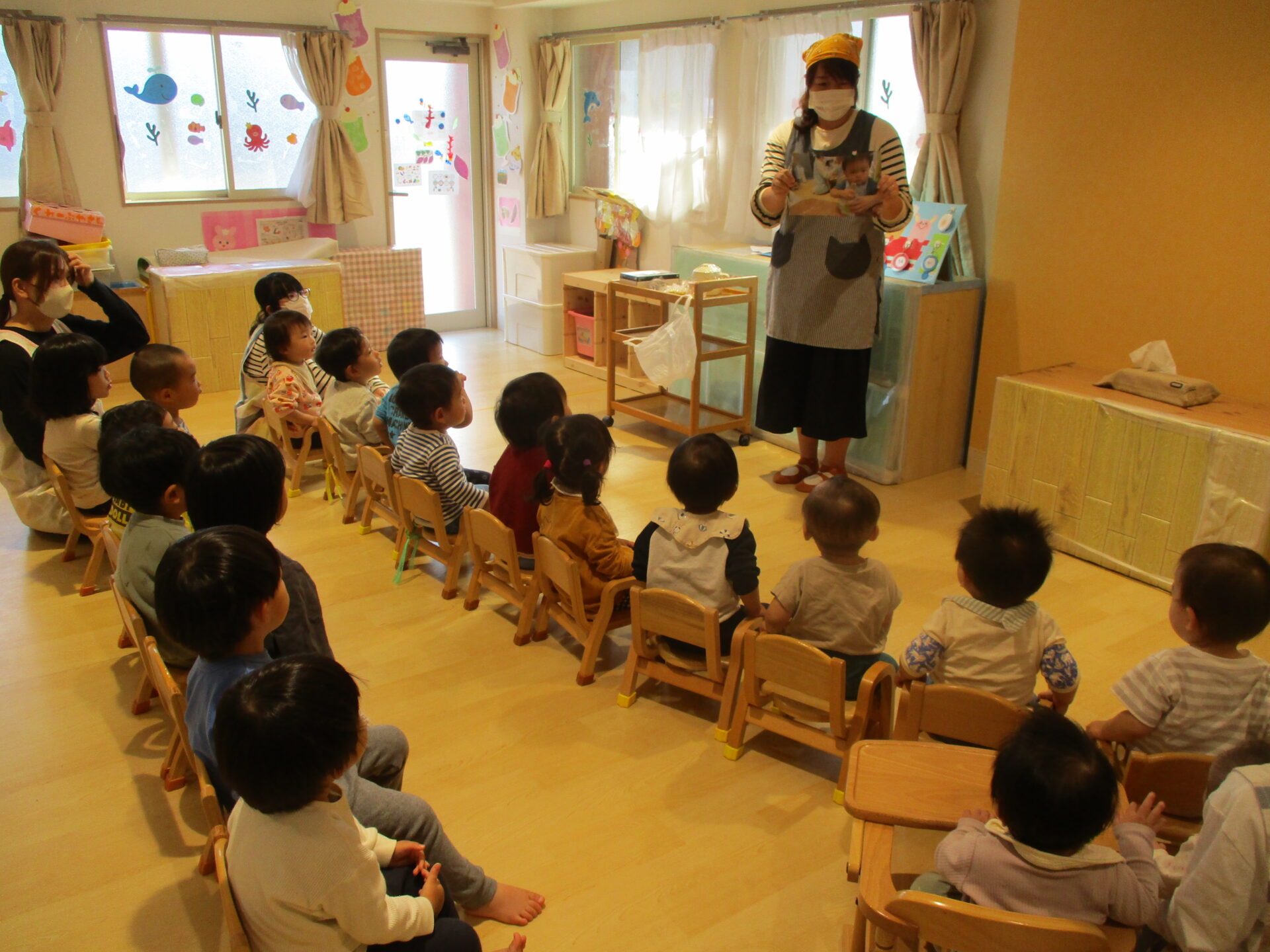 子ども達は期待たっぷりで椅子に座りました。