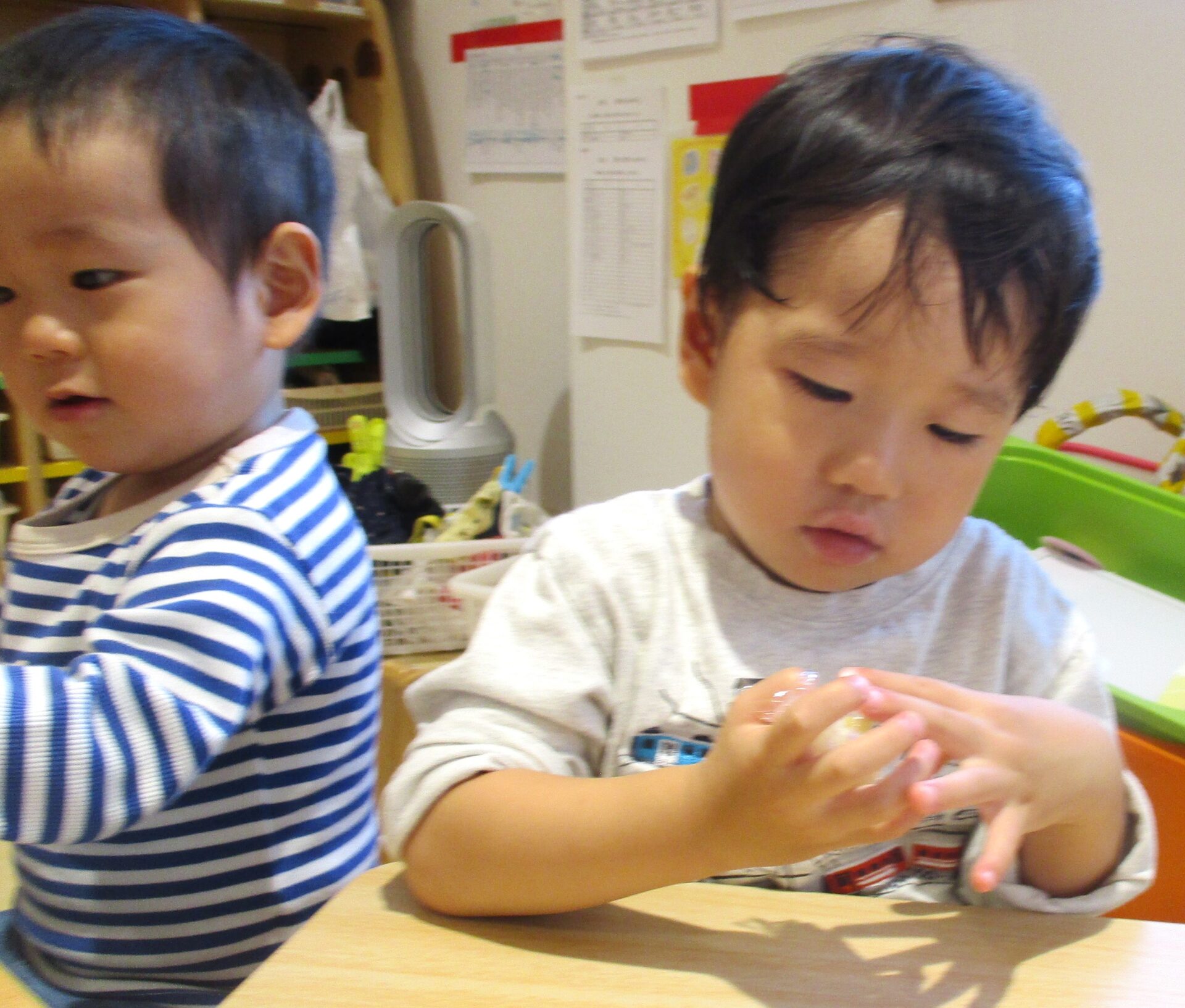 難しそうにしながらも、小さいお手手で一生懸命に取り組んでいました。