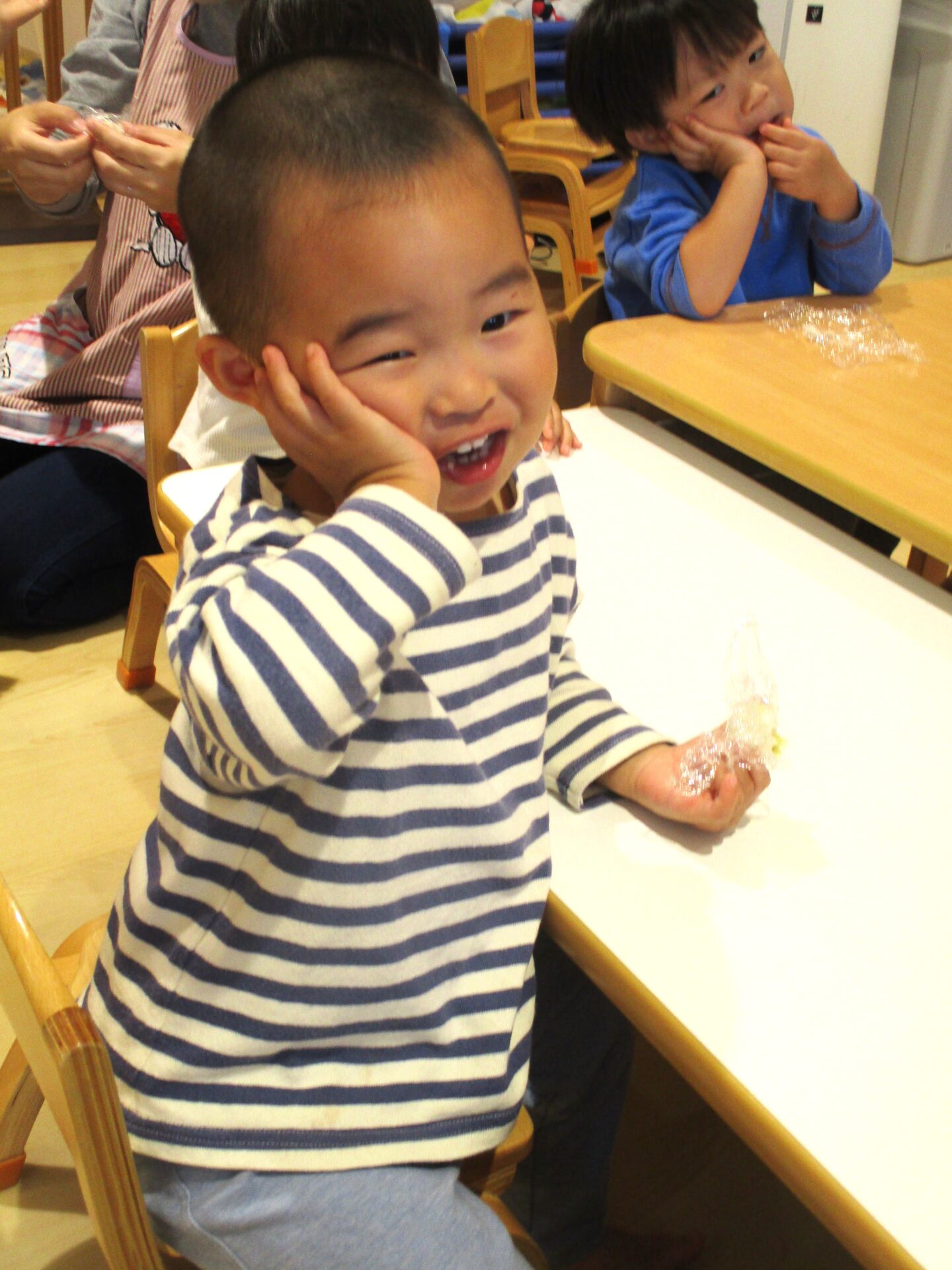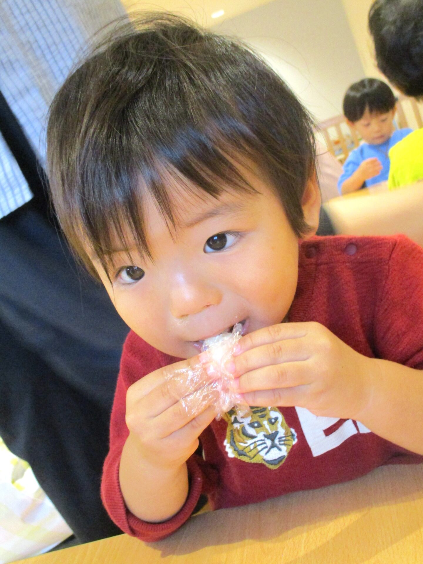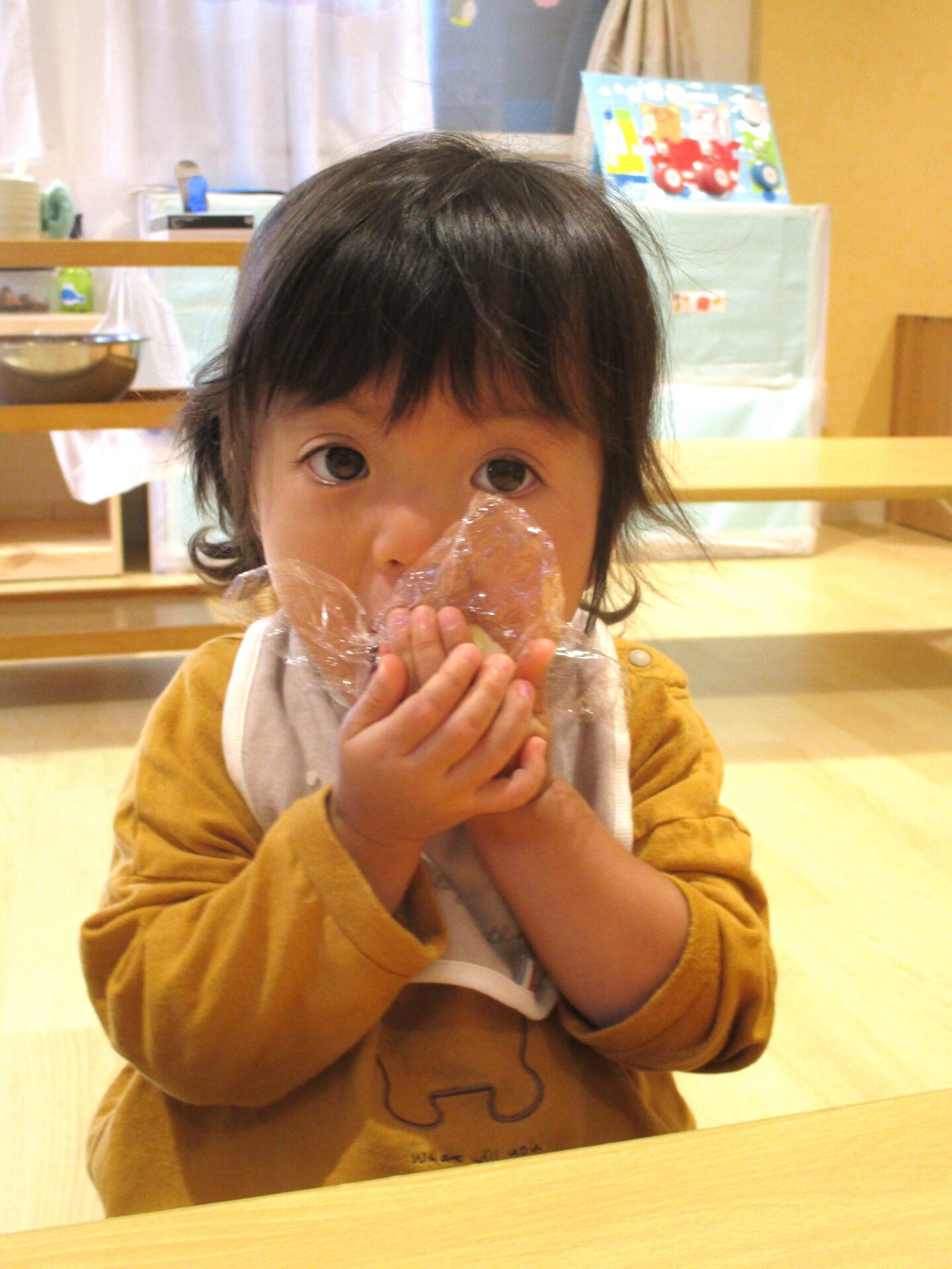 「食べたよ!」とピカピカのラップを見せてくれました。