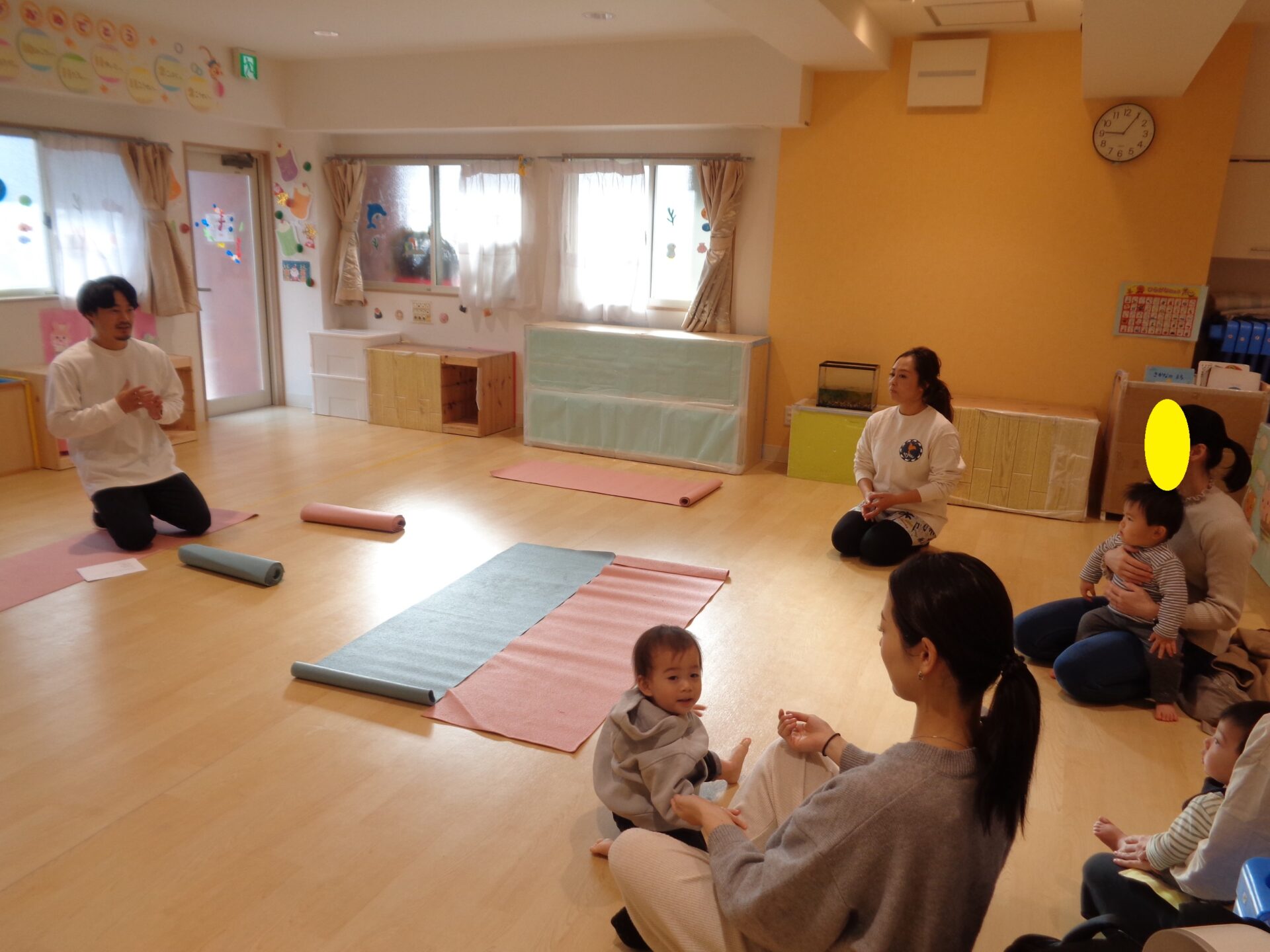 連携園の、明石上の丸くじら保育園が、以前親子ピラティスを開催したという情報を得て、目を輝かせた我が伊丹くじら小規模保育園。