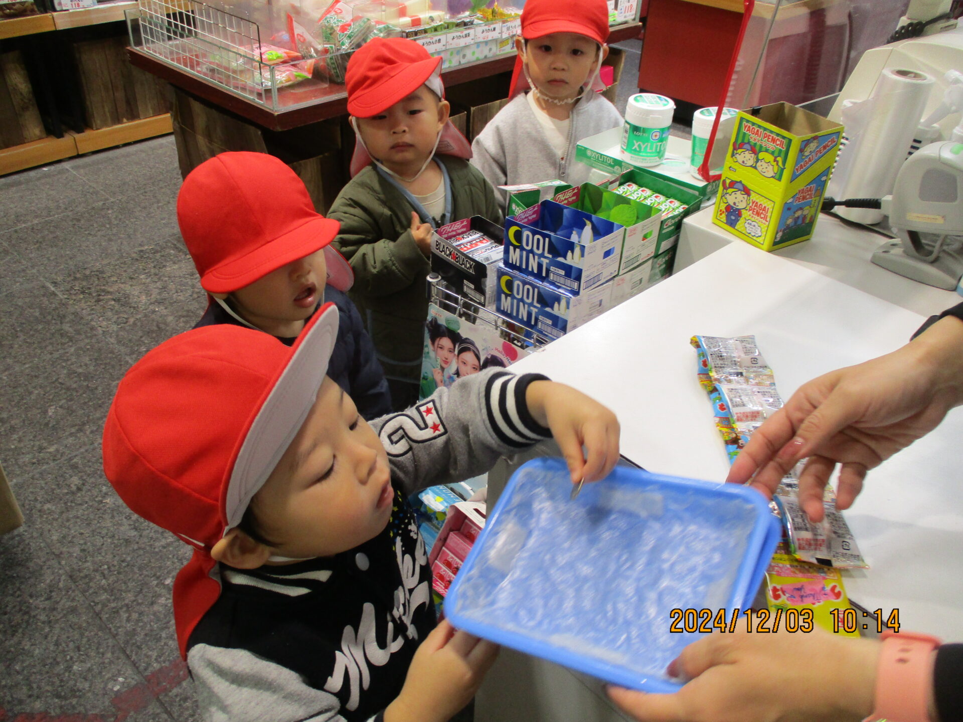 この一連の流れをすべて子ども達が行い、無事にお菓子が買えました👏