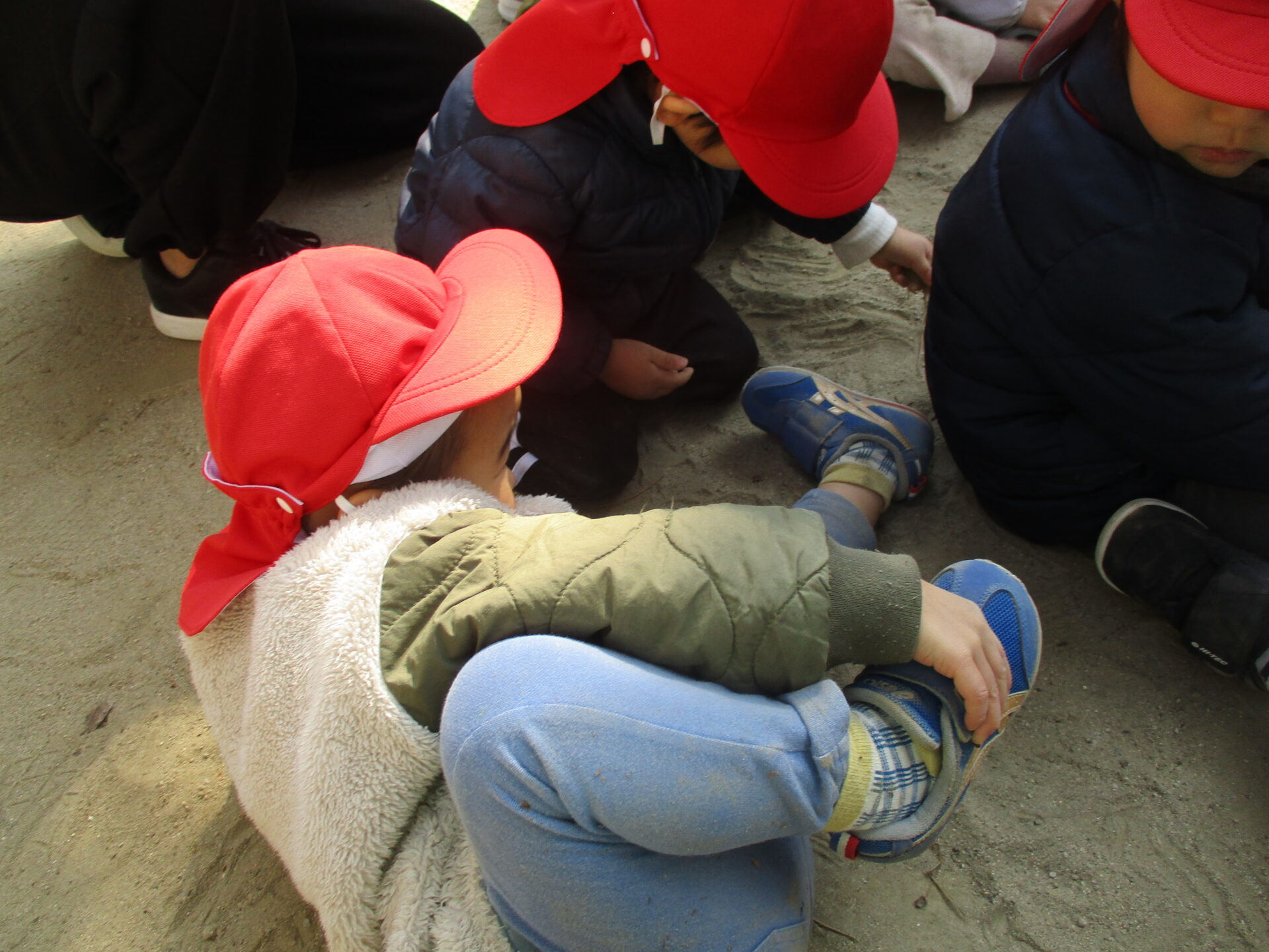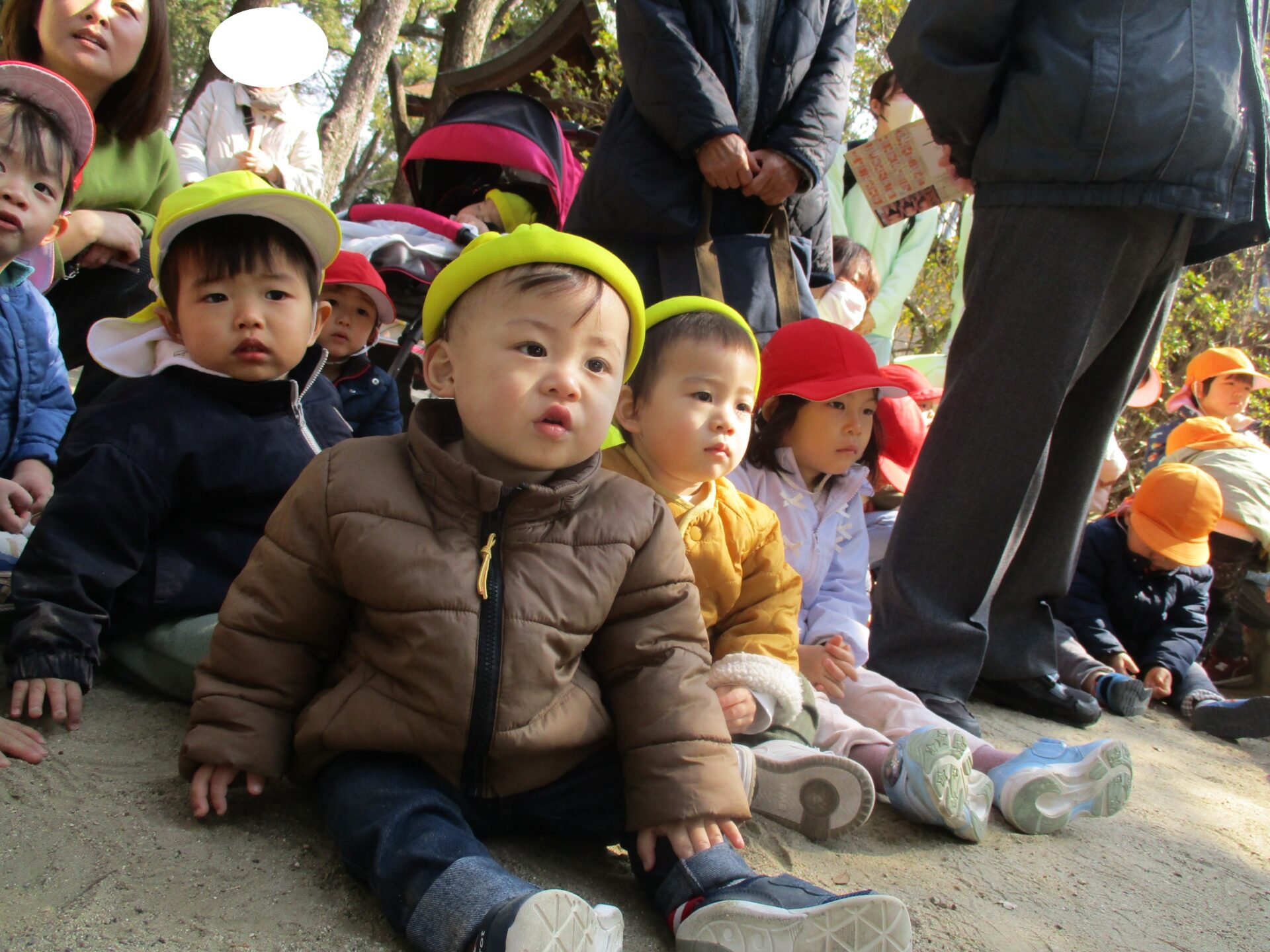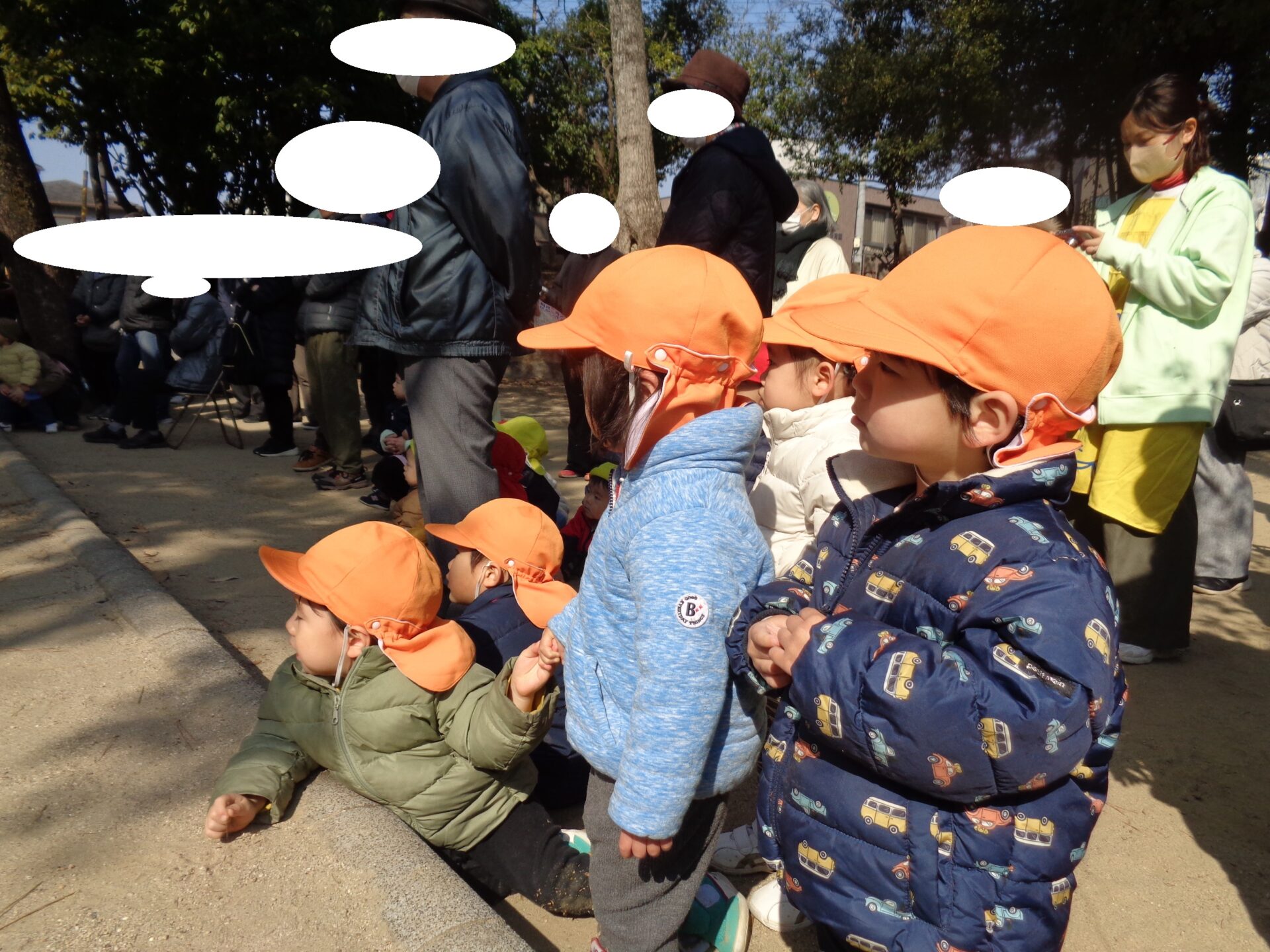 あめ組の何人かが「頑張れー!」と言うと、それが伝わり皆で「頑張れー!」と応援していました。