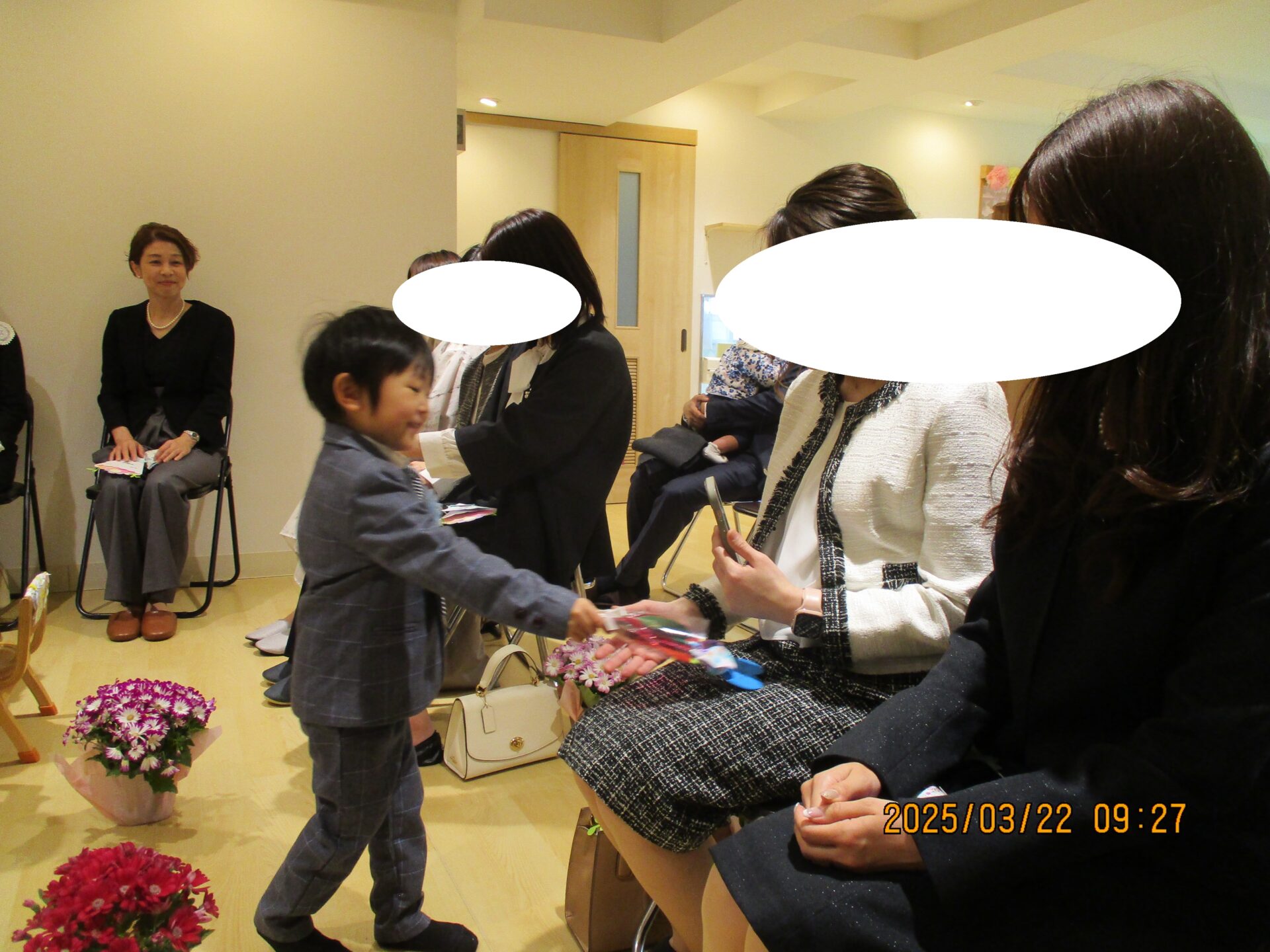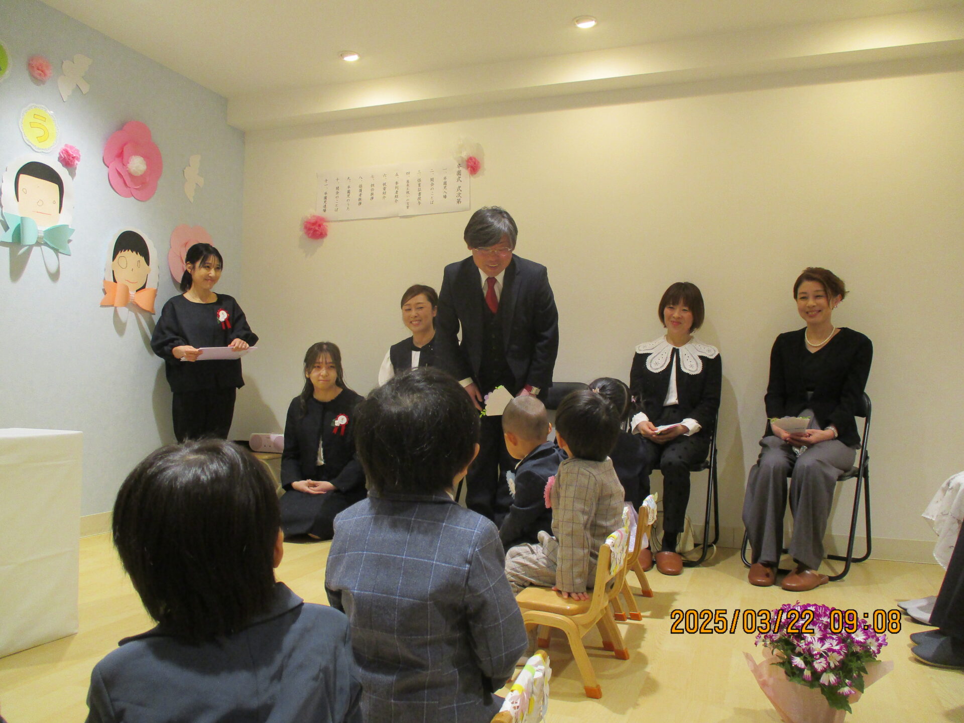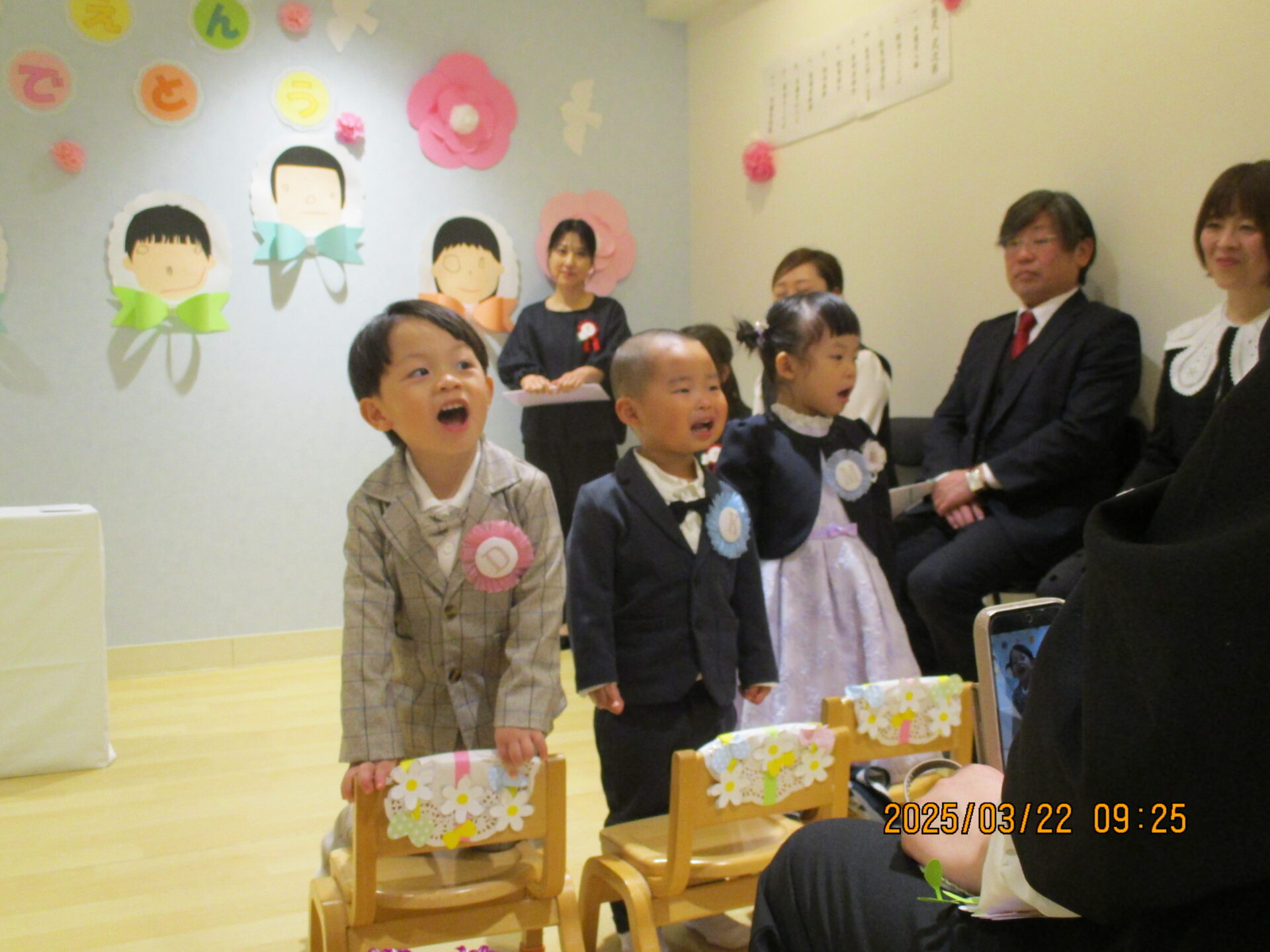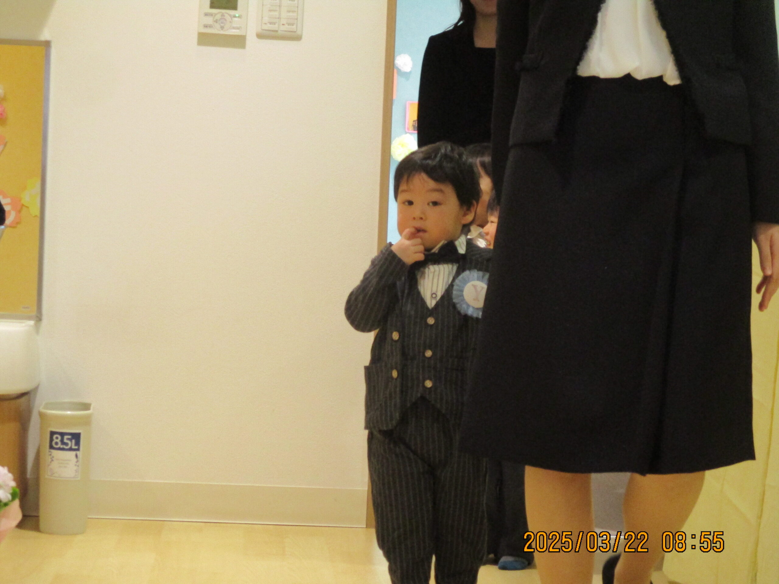 かっこいい服を着て笑顔で登園してくれ、「もうすぐだね!」「〇〇くんのお洋服かっこいい~」などとお話ししながら、式が始まるのを待っています😊
