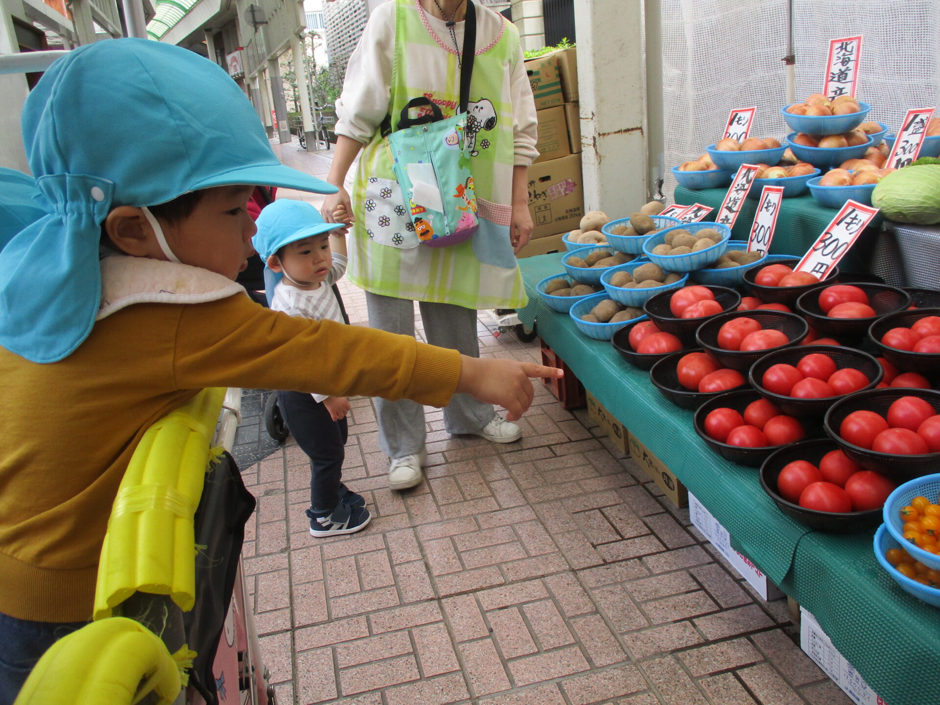 八百屋さんの前を通ると、知ってる野菜を見つけて指をさして教えてくれました🌟