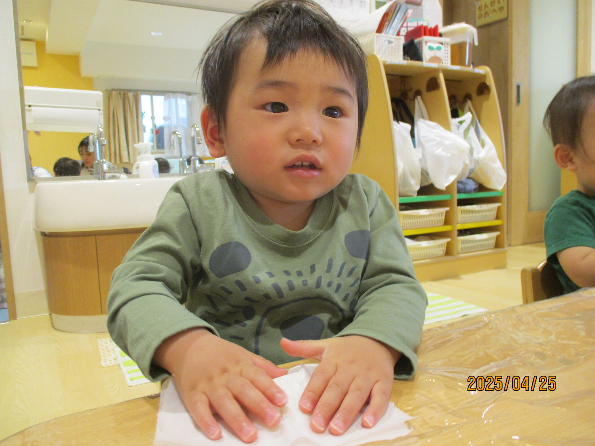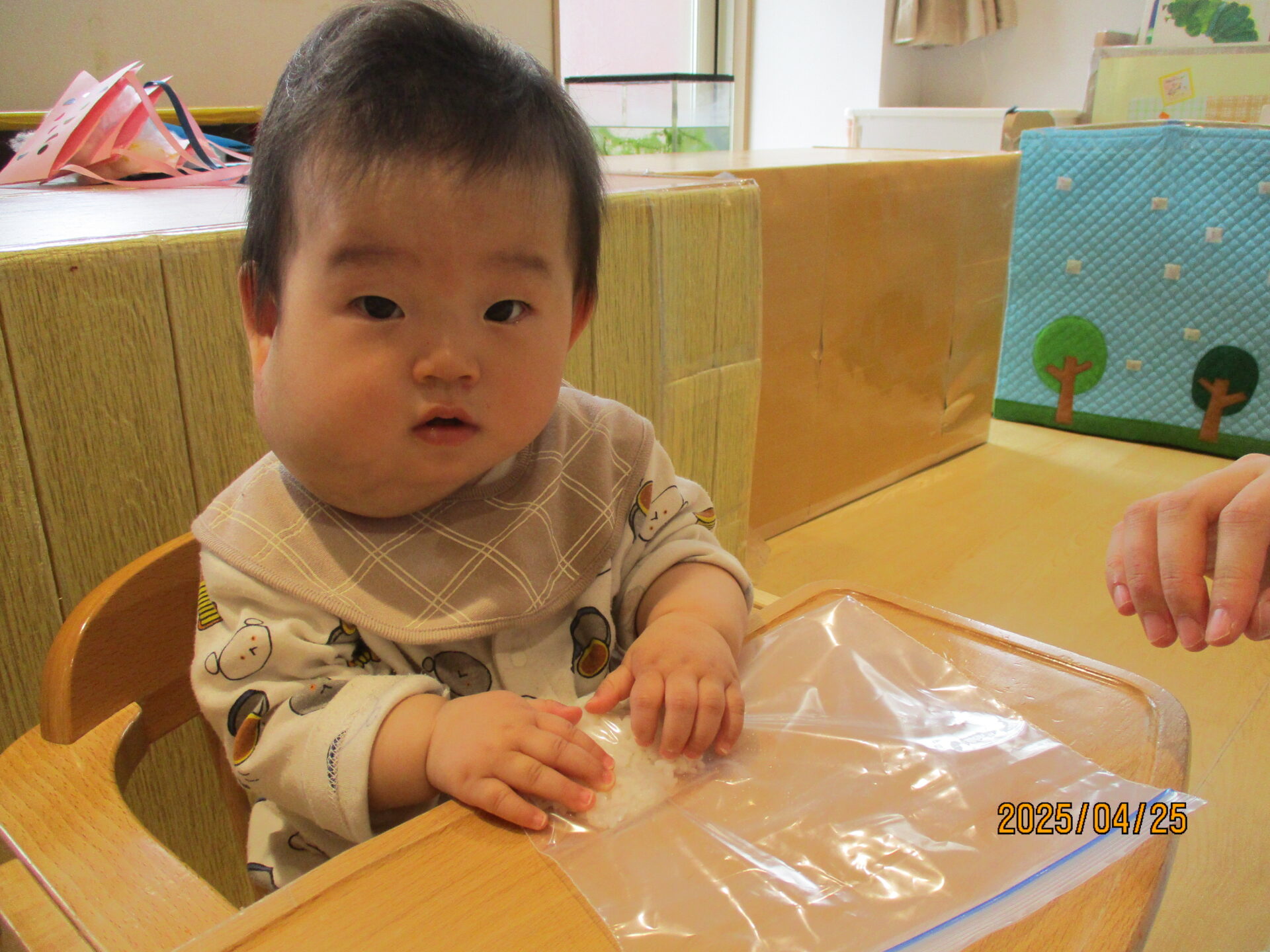 うみ組のお友達にも渡すと、指でツンツンとしてみたり手のひらで叩くなど感触を楽しんでくれました!