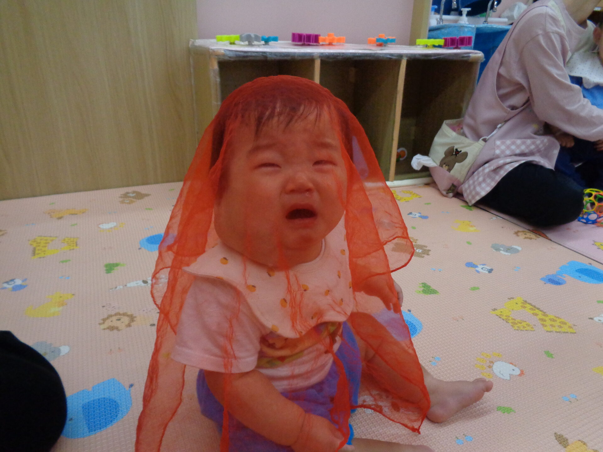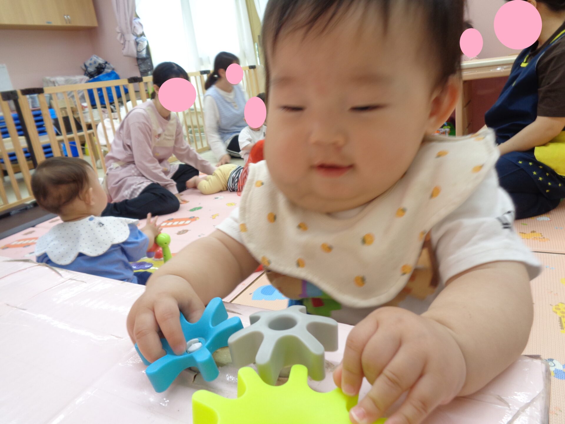 泣き止んではおもちゃをちらっと見たり、触ってみたりと少しずつ慣れていってくれました☺