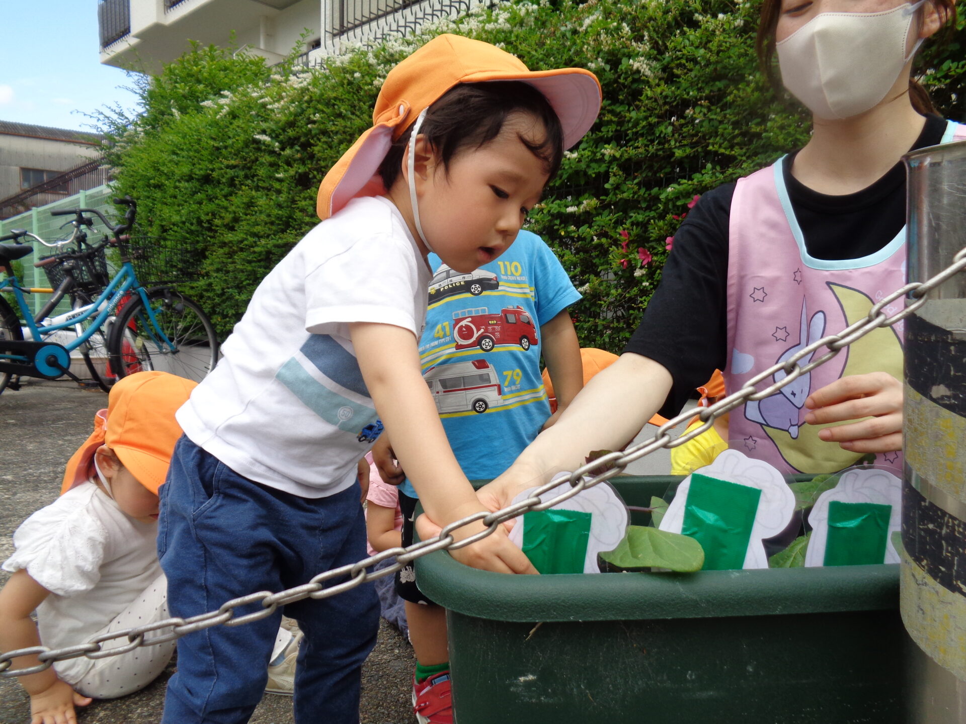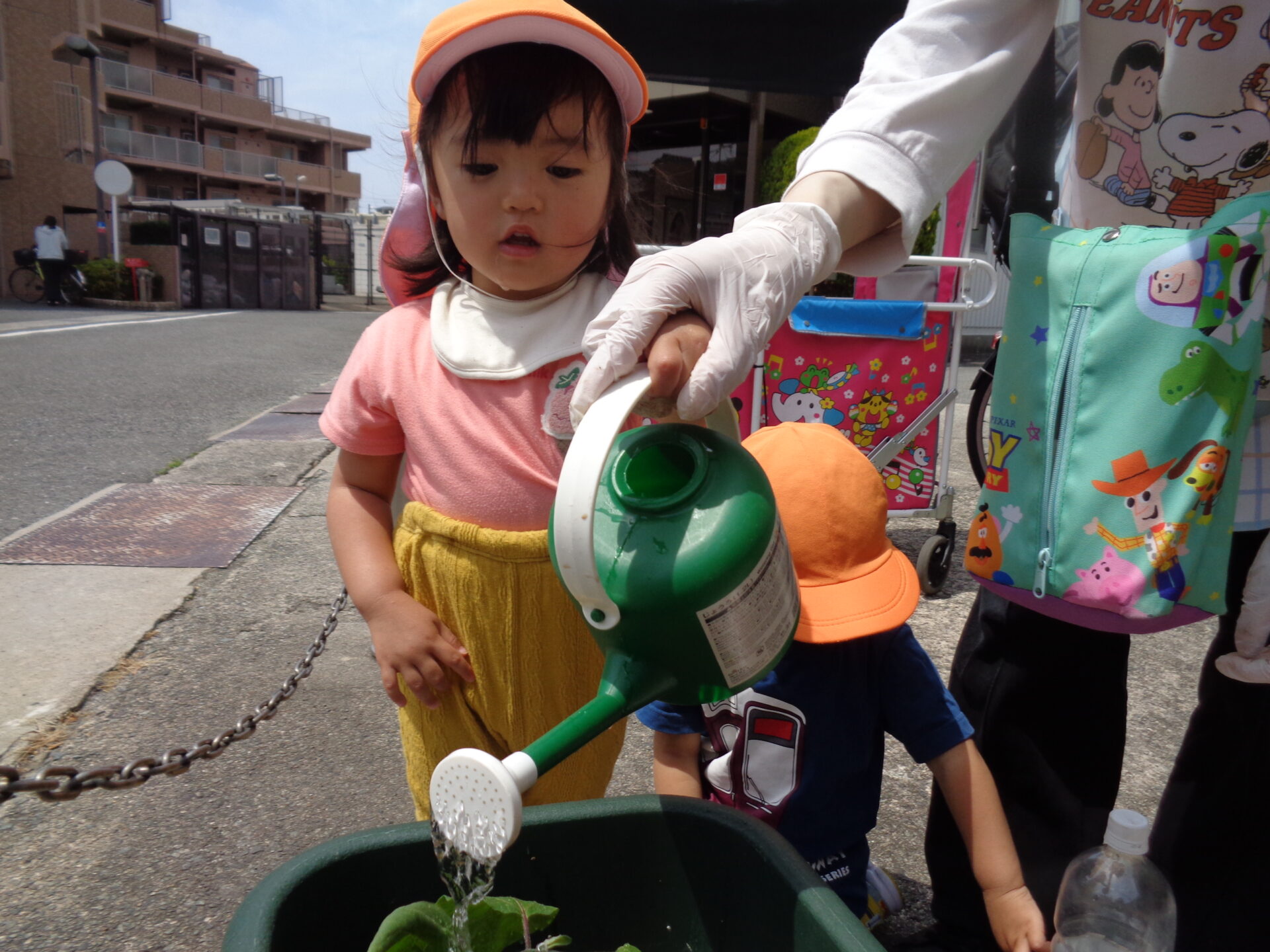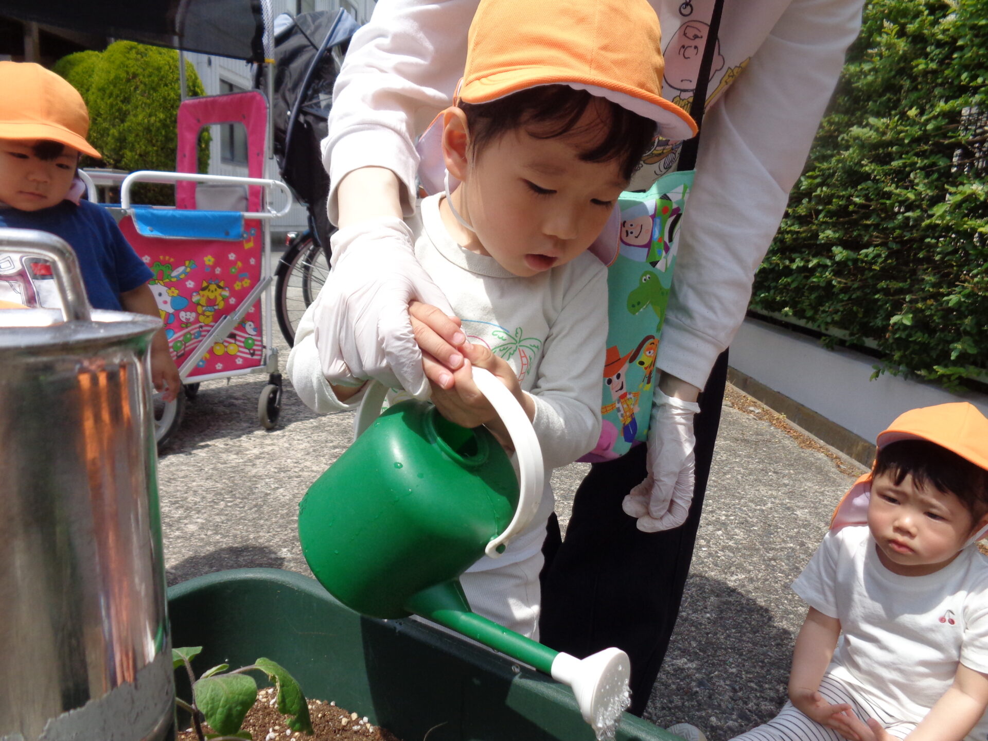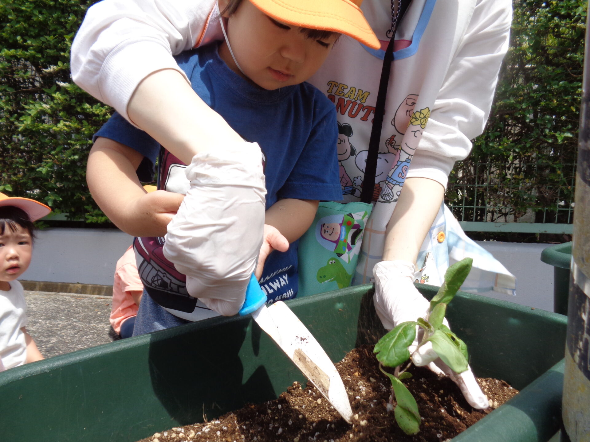 順番に一人ずつスコップで優しく土を掛けて水やりまでしてくれました!