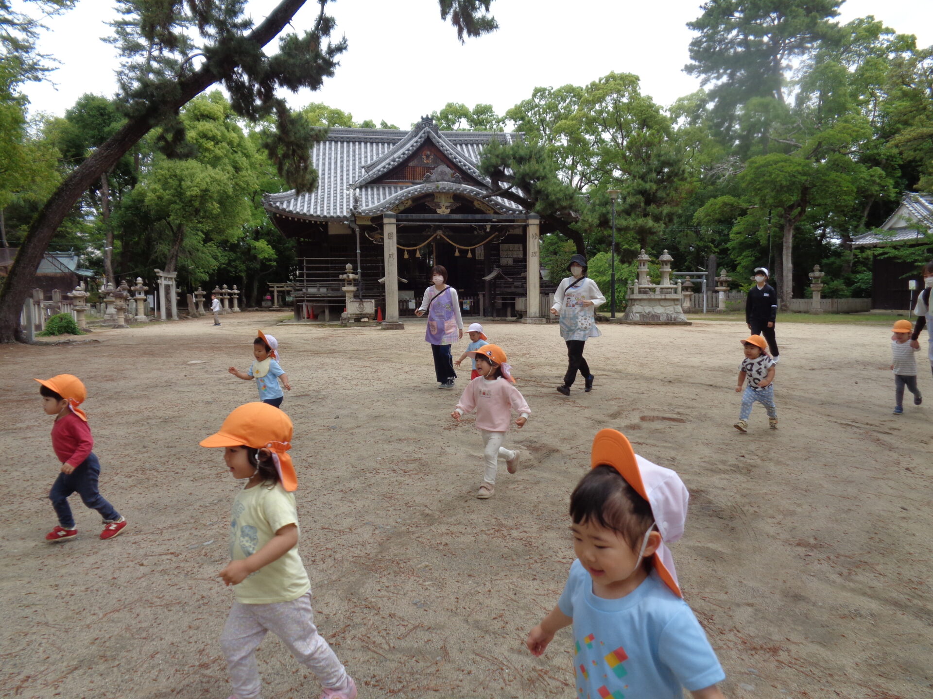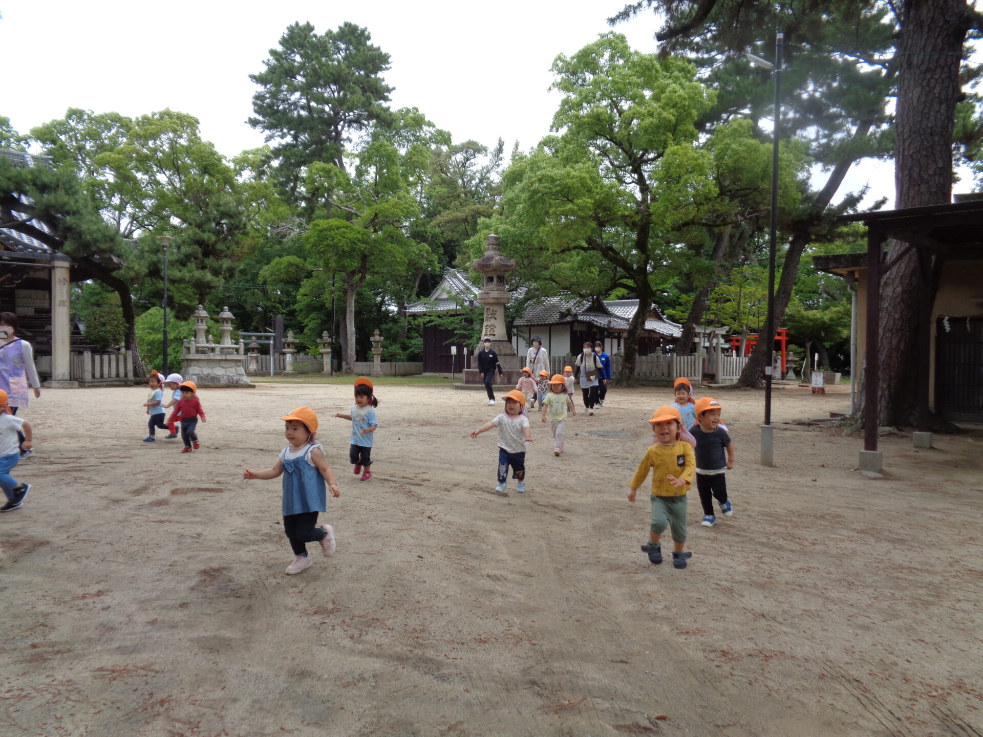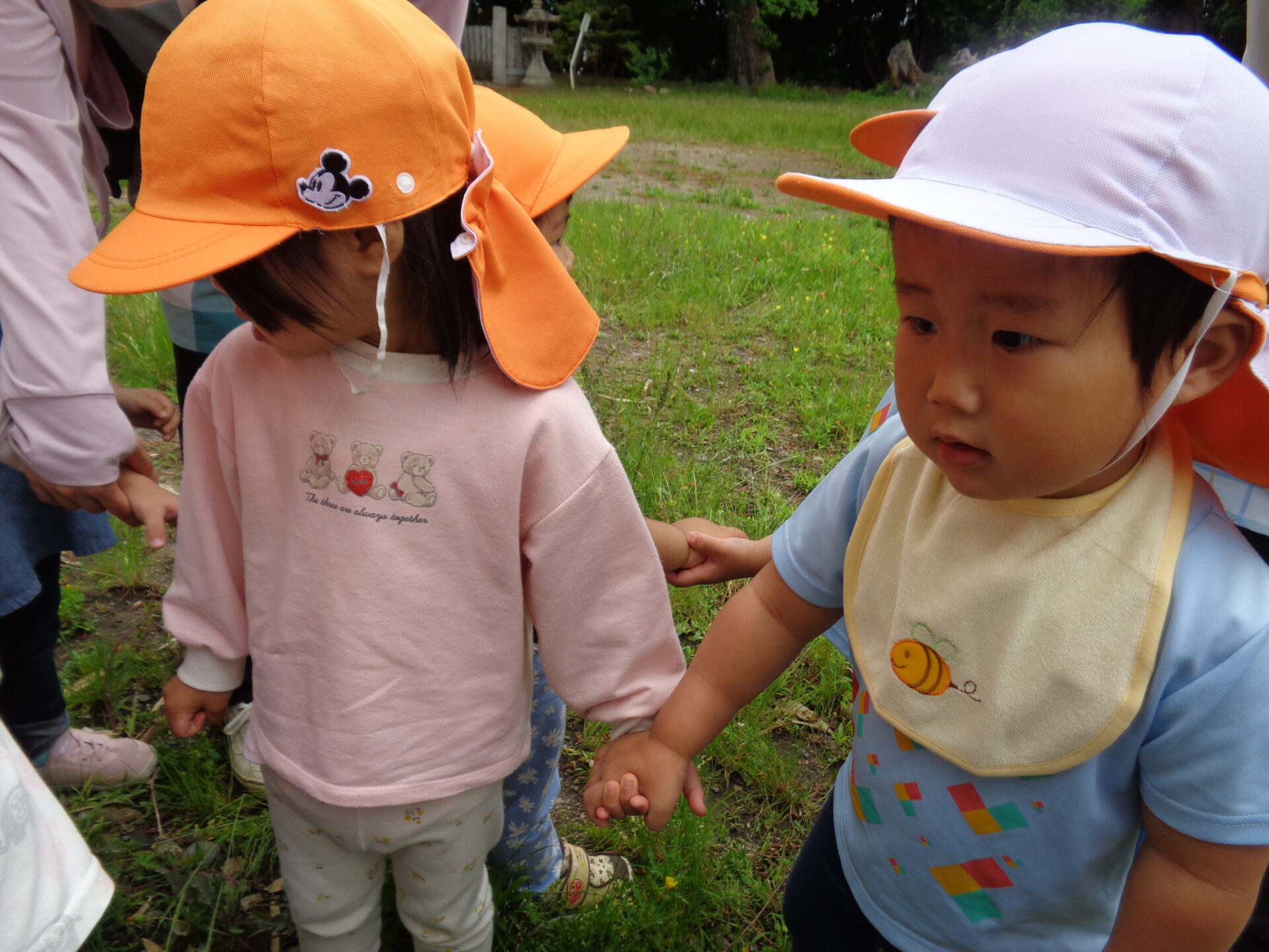 その後は新しいお友だちと手を繋いで、神社の境内をお散歩しました。