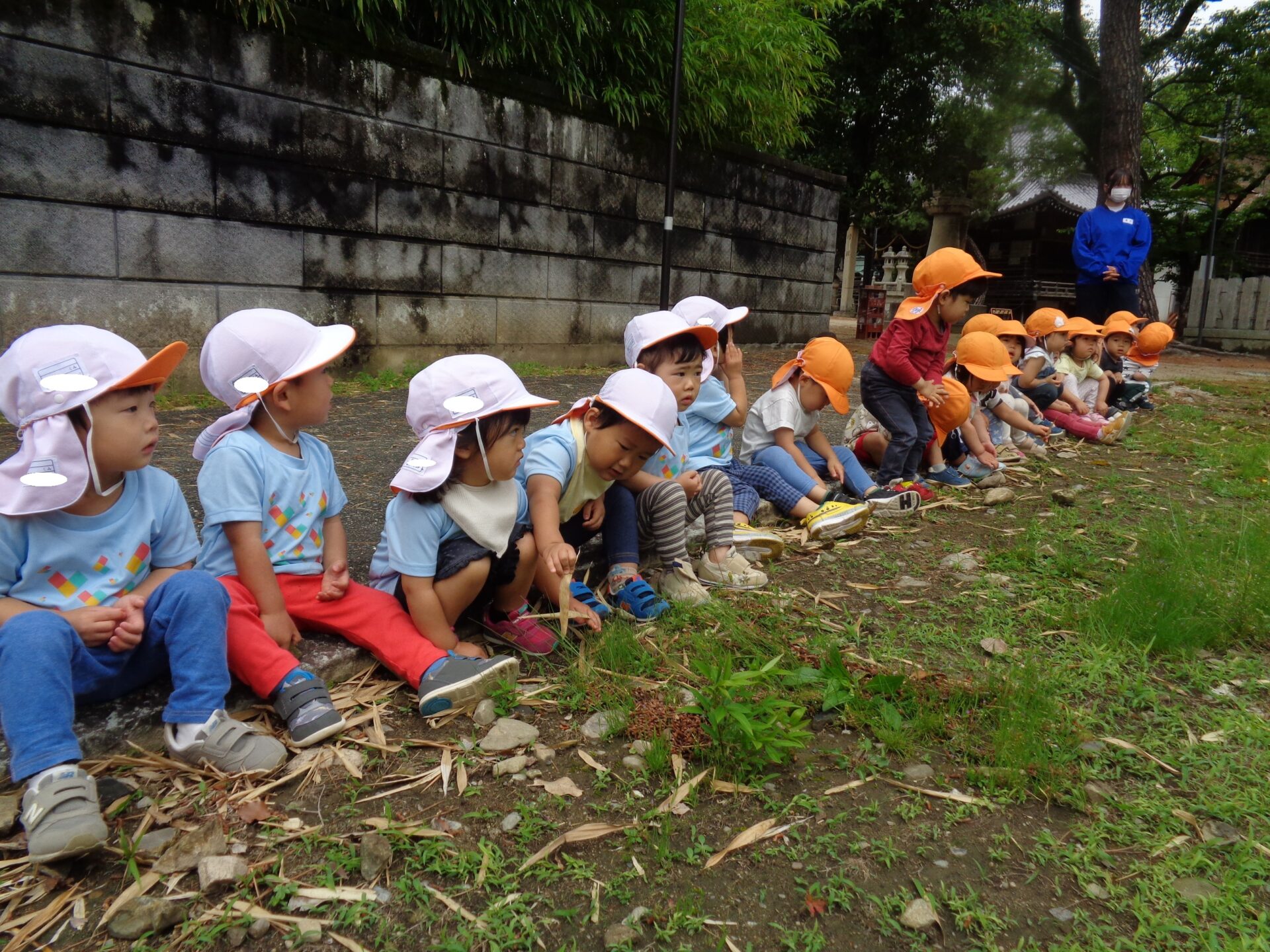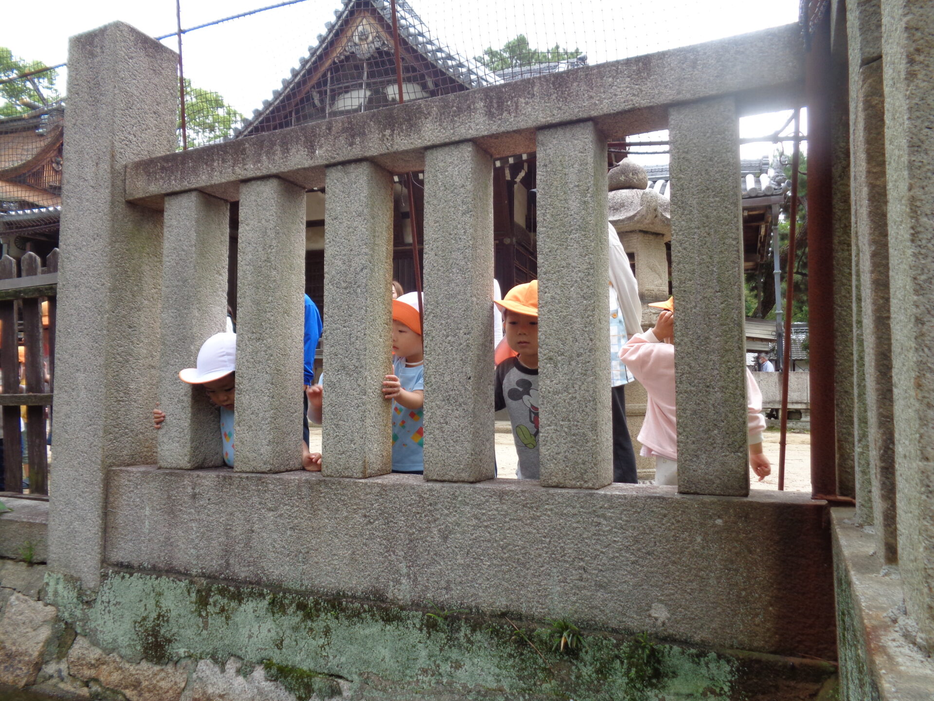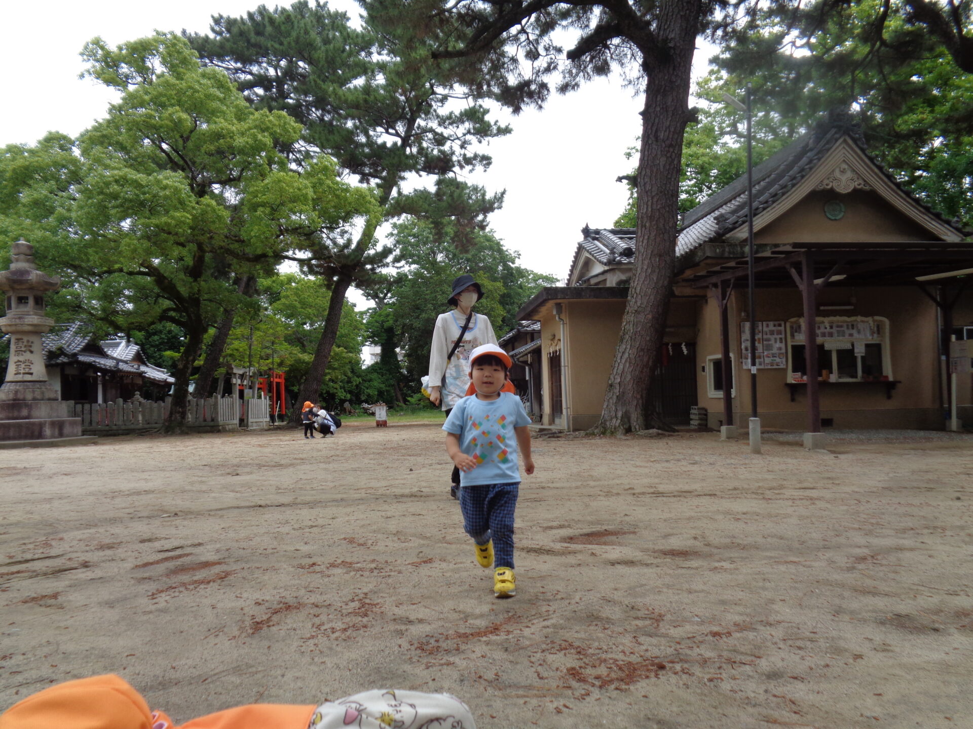 その後は新しいお友だちと手を繋いで、神社の境内をお散歩しました。