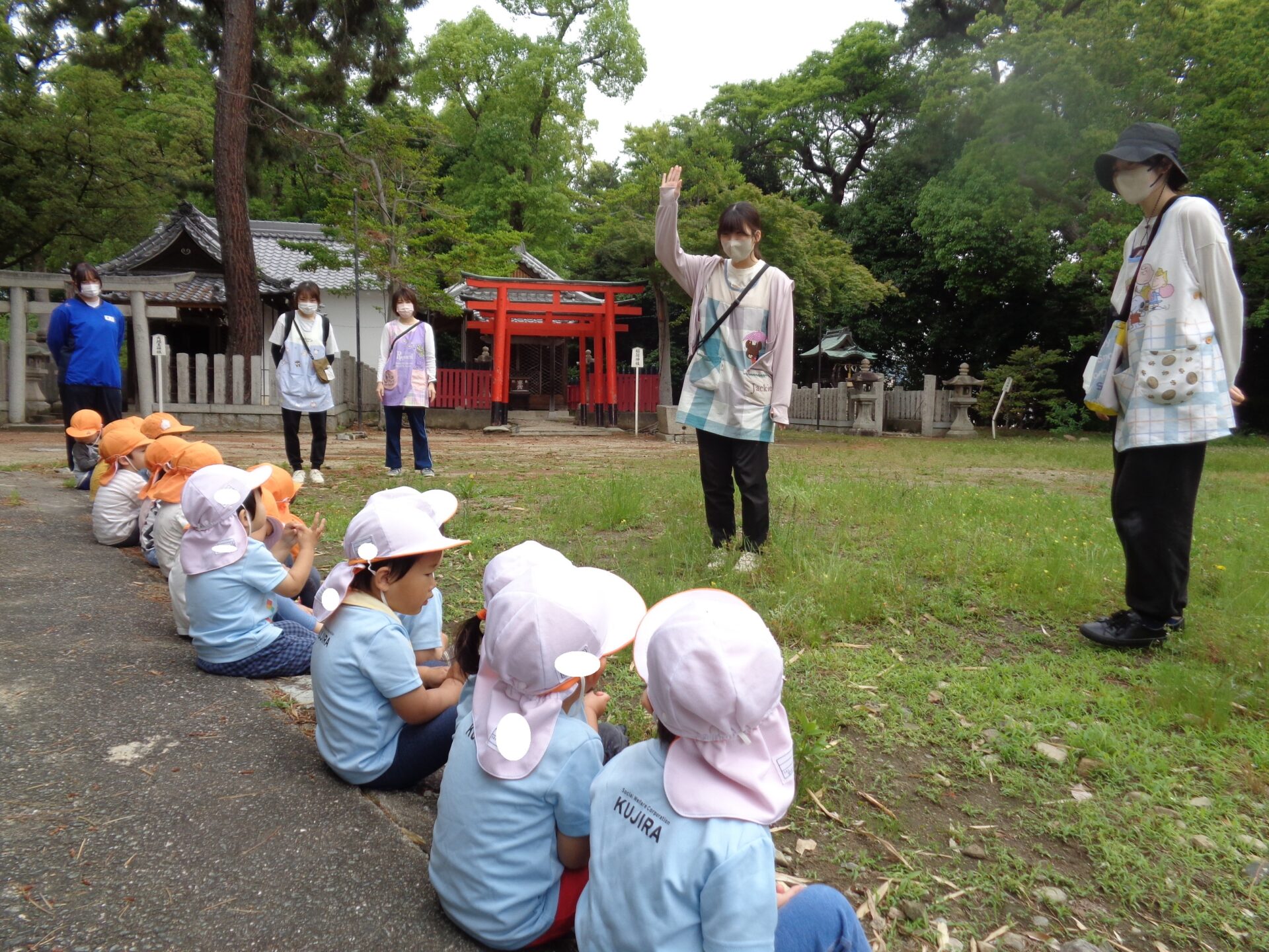 神社に到着し、まずはお互いの園の先生が自己紹介。