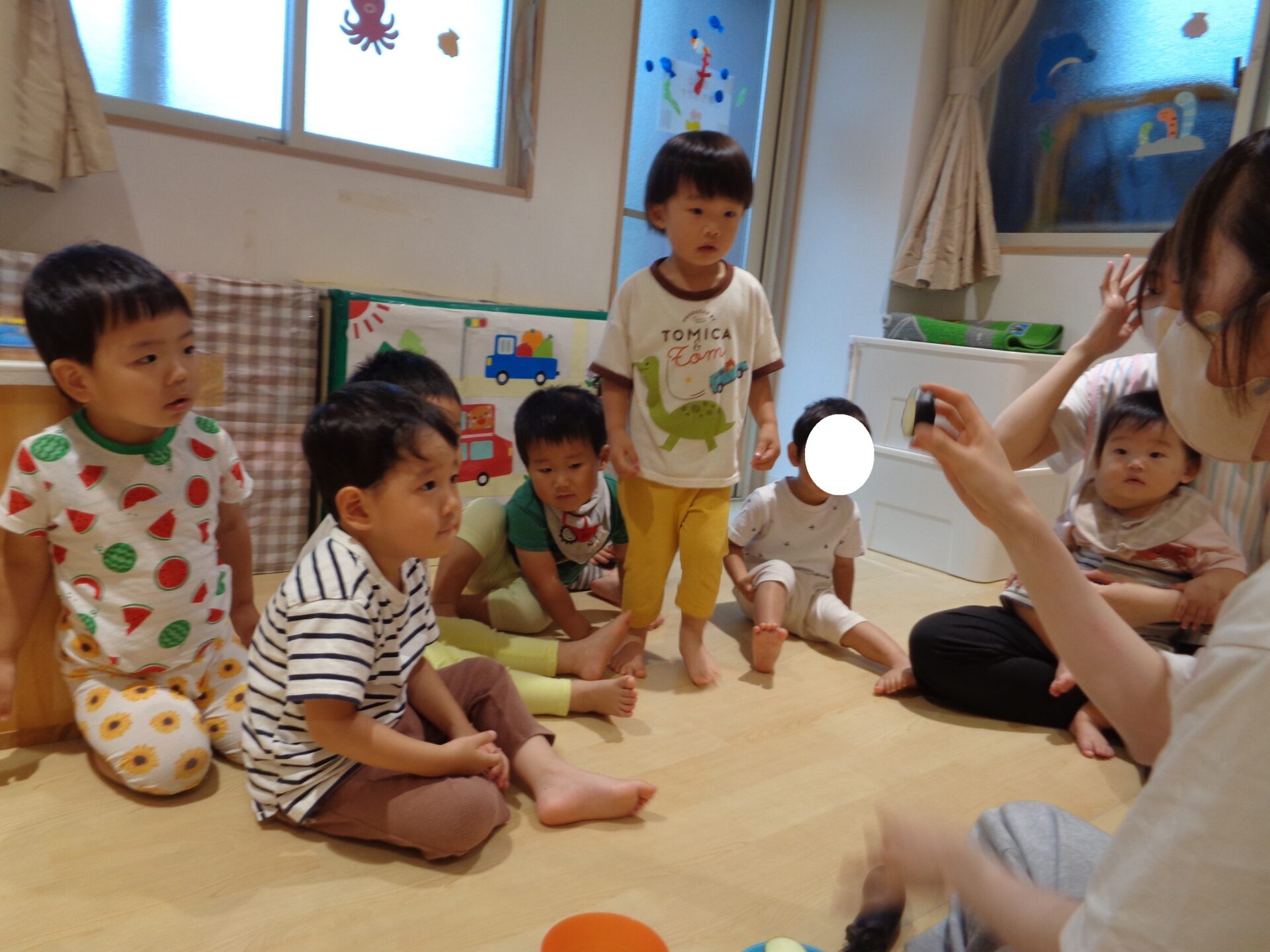 みんなで順番に触りながら、「おっきい!」「つるつる」とお話していました。