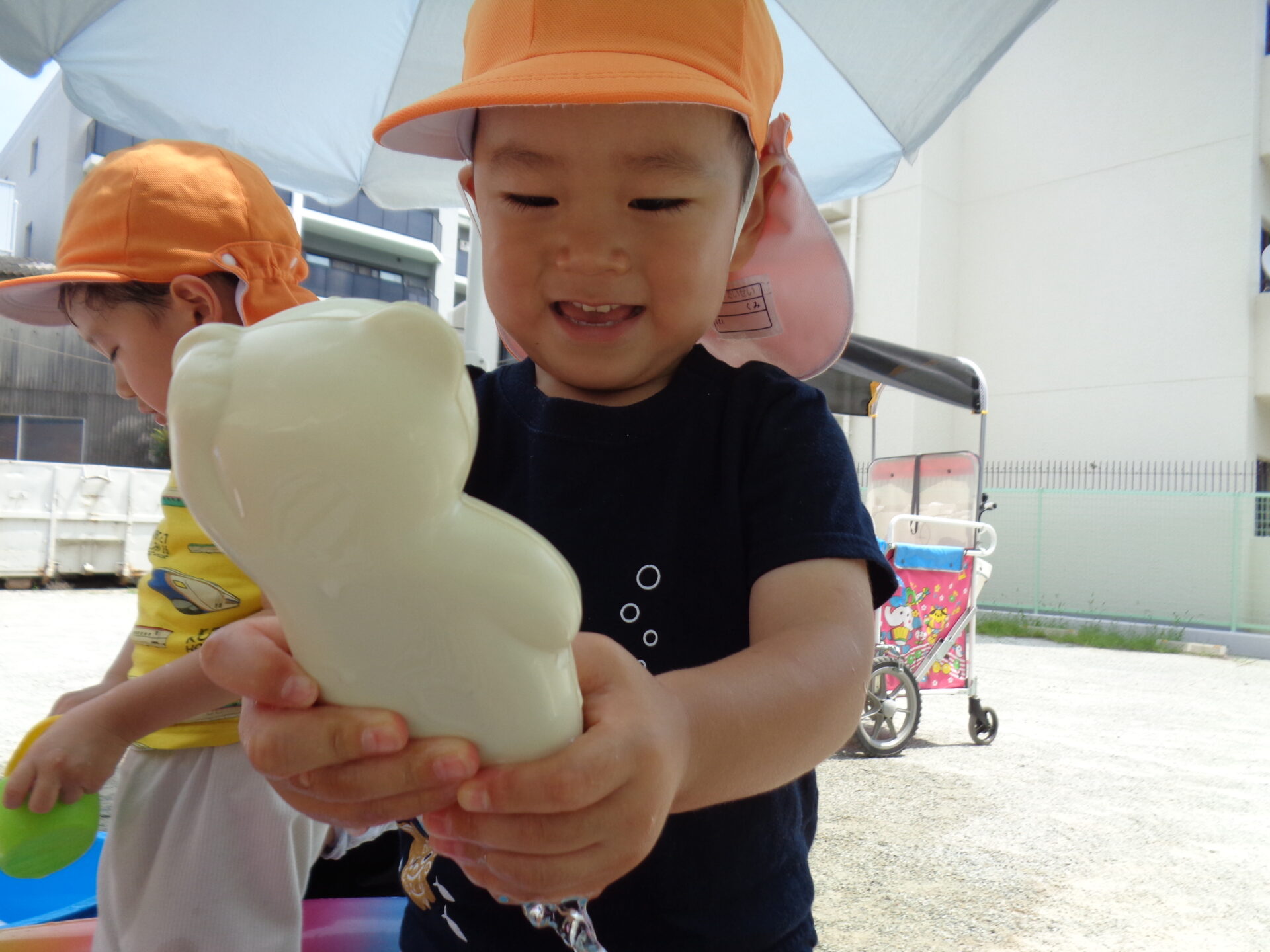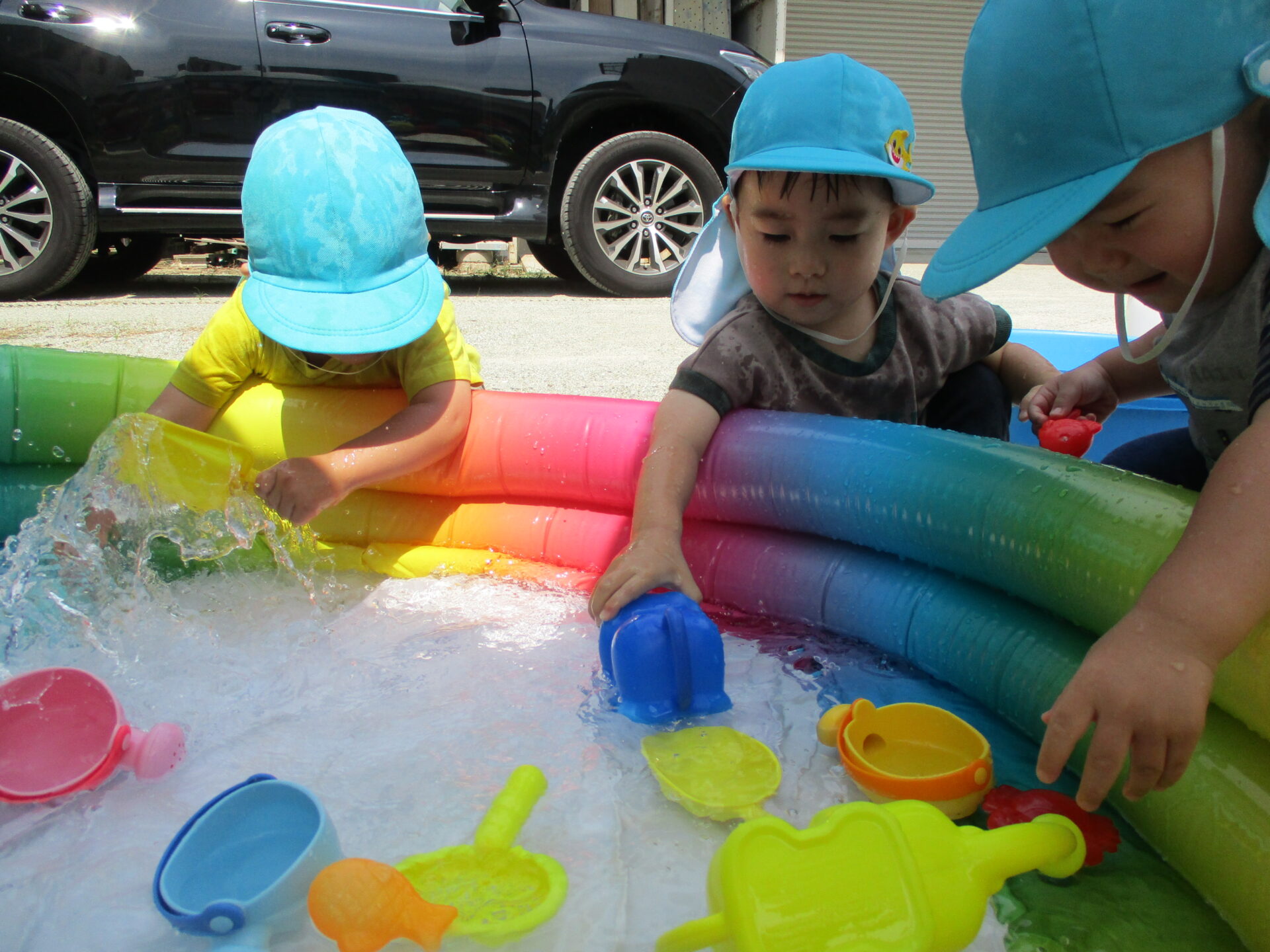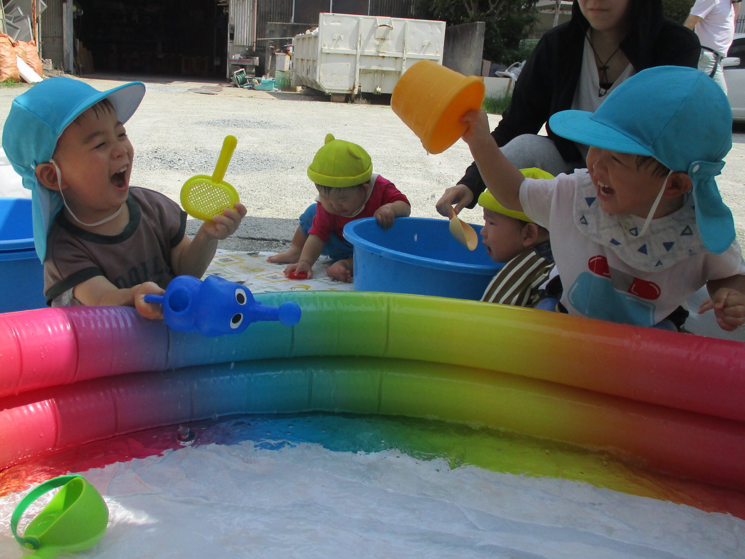 初めての水遊びのお友だちもいましたが、みんなお水の感触を楽しみながら遊ぶことができていました!