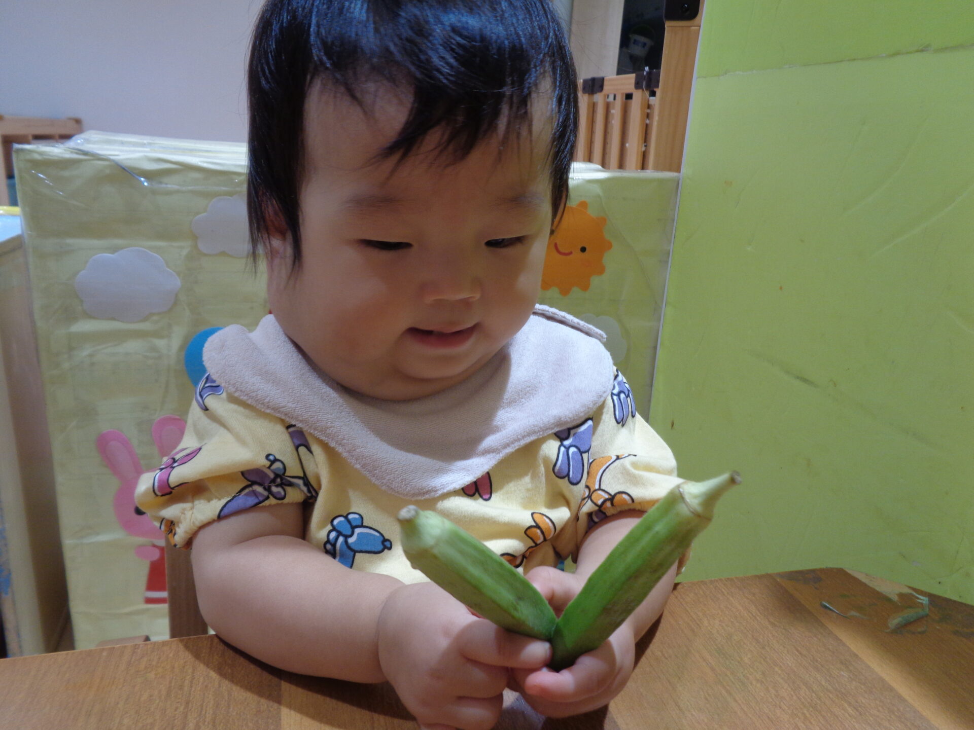 無事育ったオクラで、、、?(0歳児 うみ組)