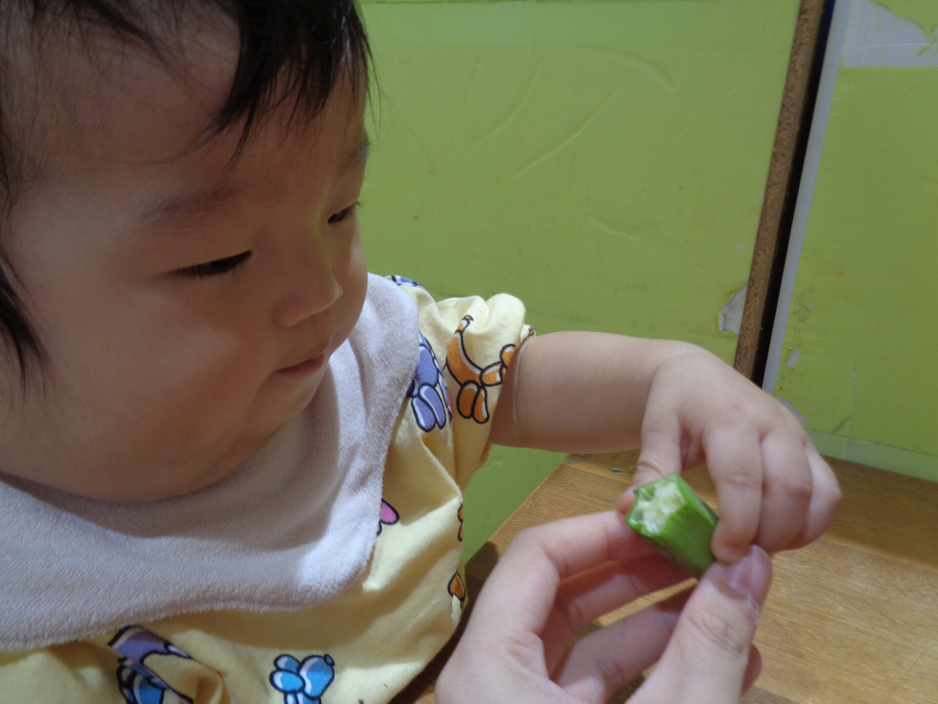 今回はオクラでの感触遊びでしたが、これからも様々な感触に触れて、知っていけたらいいなと