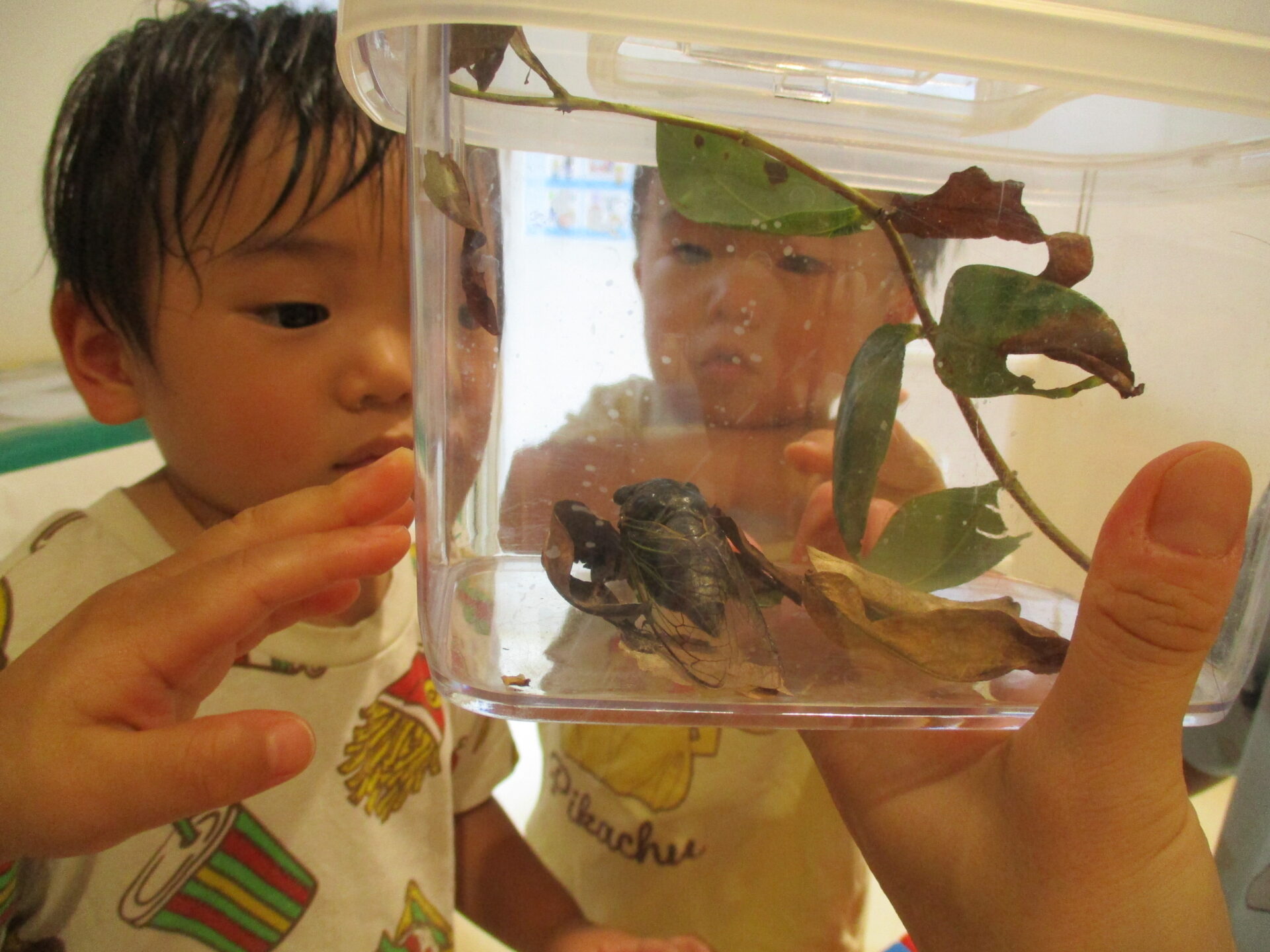 梅雨が明け、セミの声が賑やかに聞こえだしてから、セミをみんなで観察したいなと思ってきました。