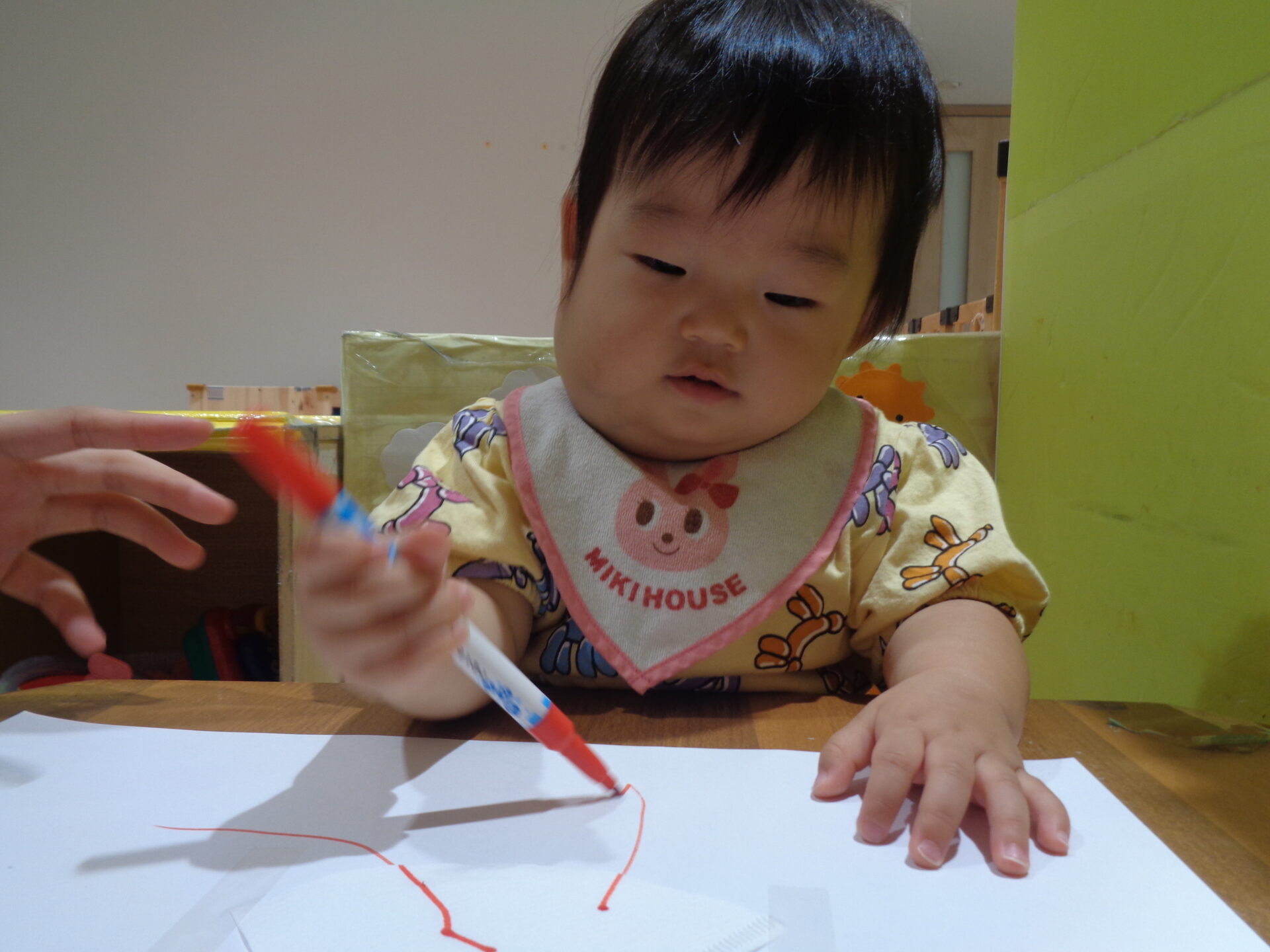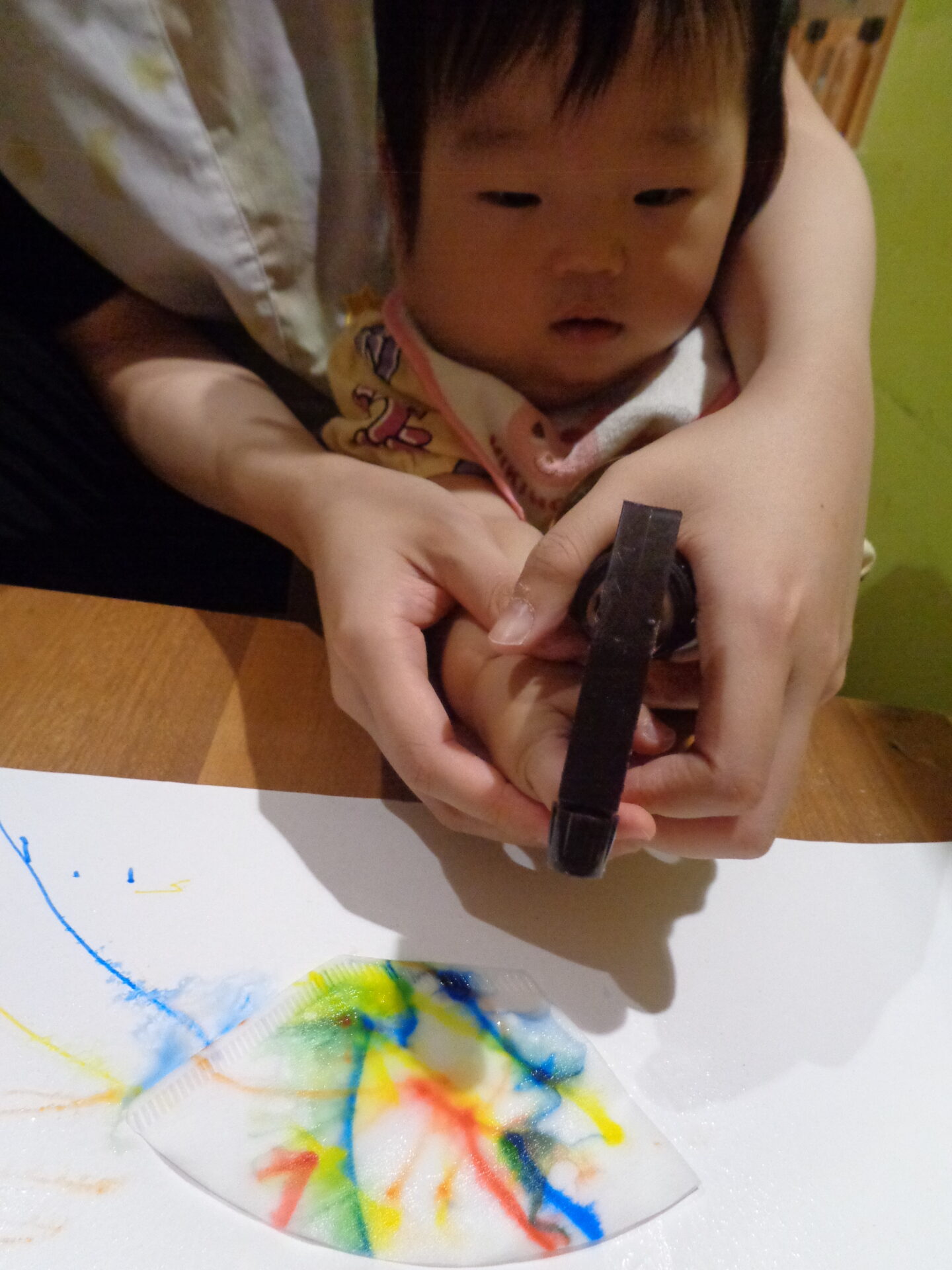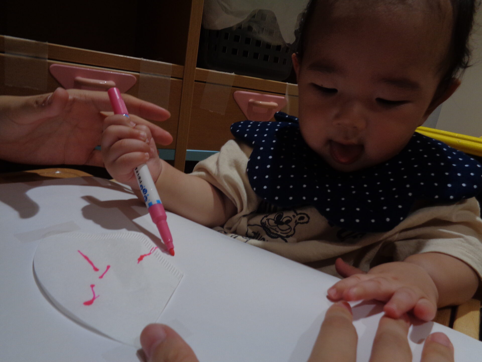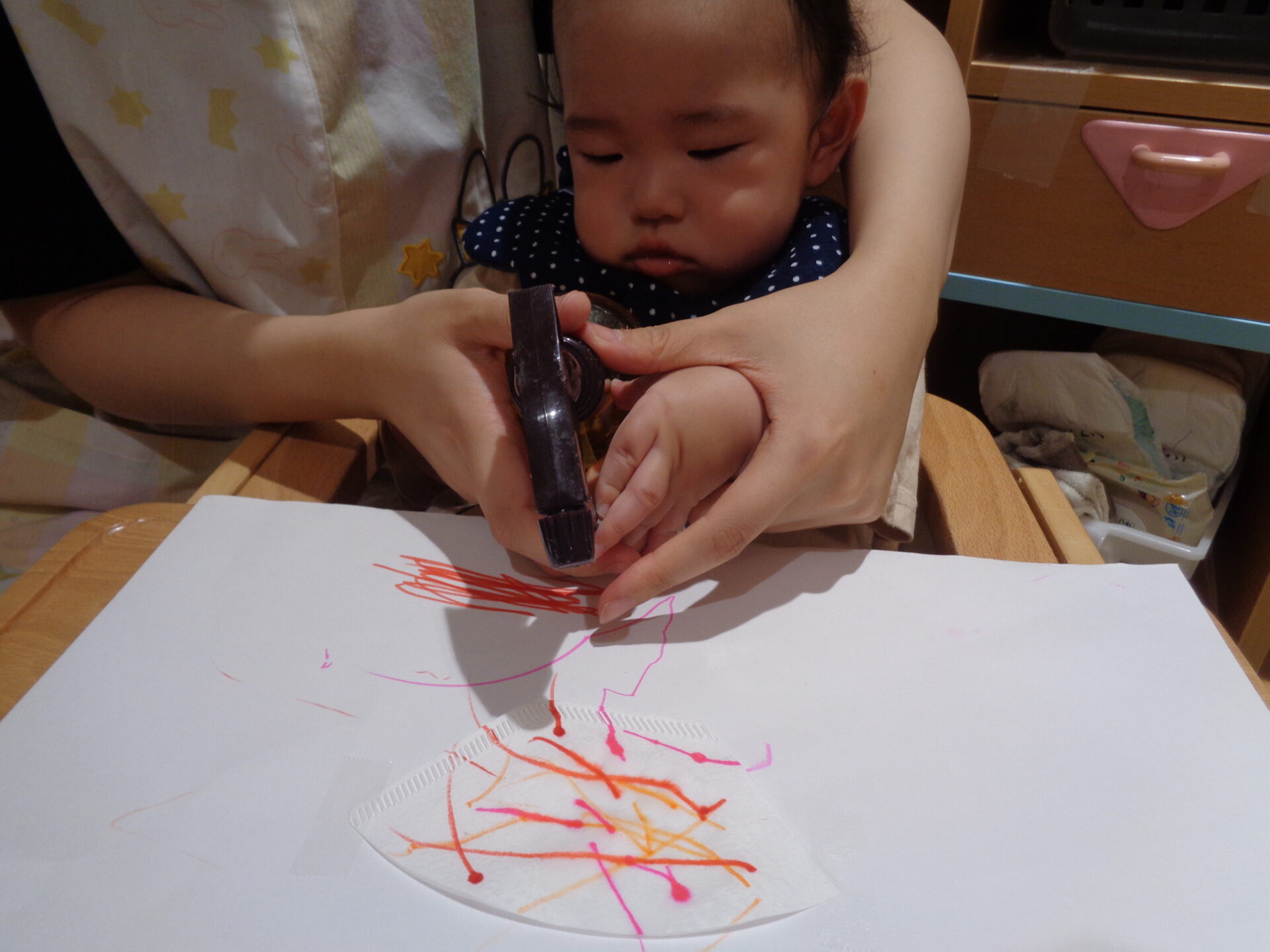 うみ組になり初めてのペンを使った製作で色が付くことに驚いたり、ペンが