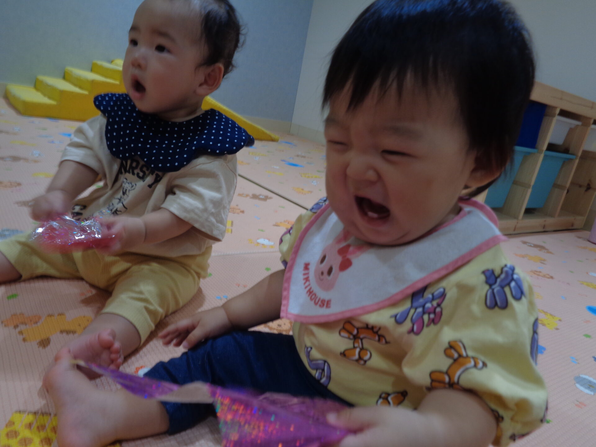 くしゃくしゃするのを二人で並んでやっていると思ったら、、、