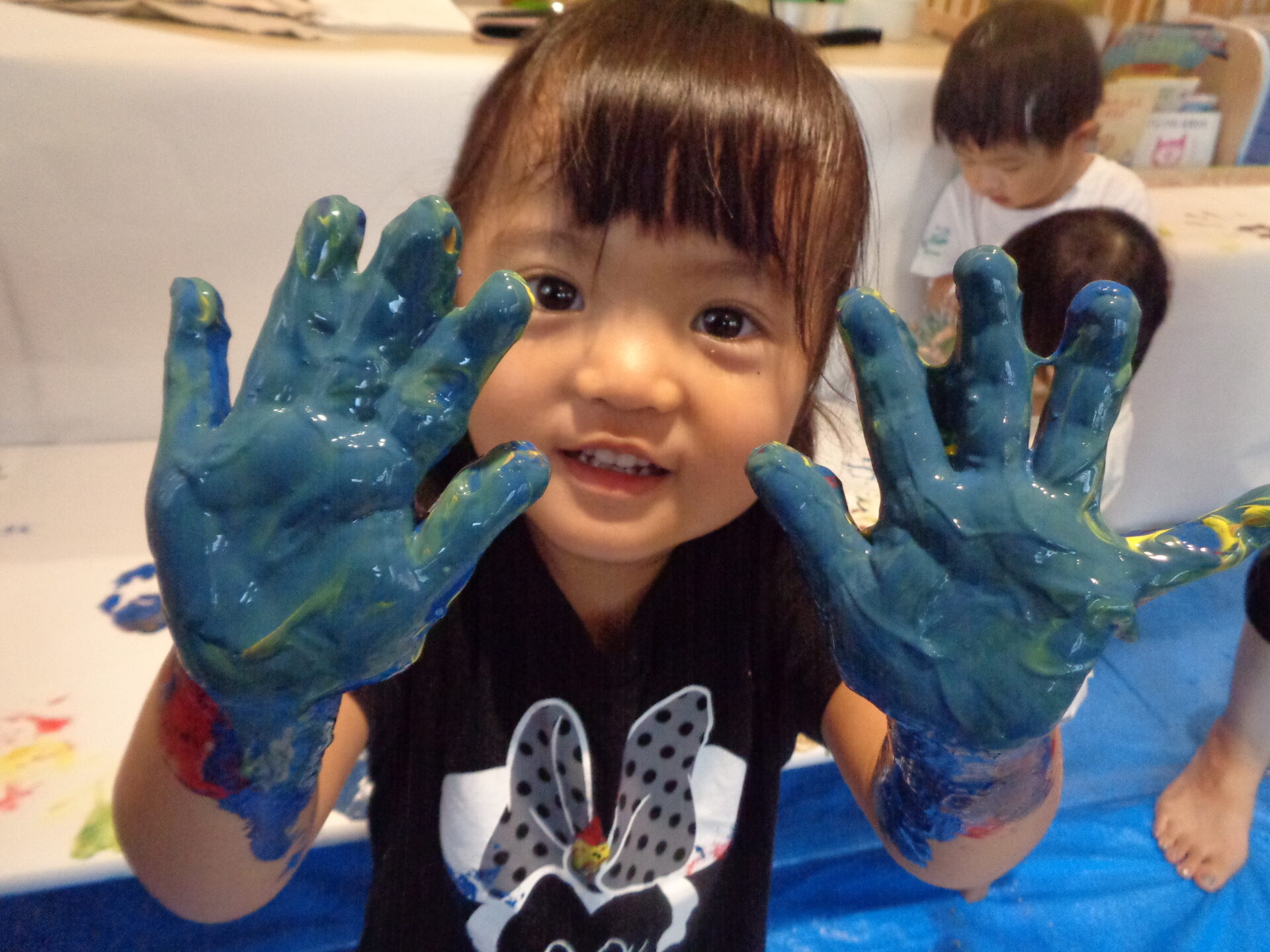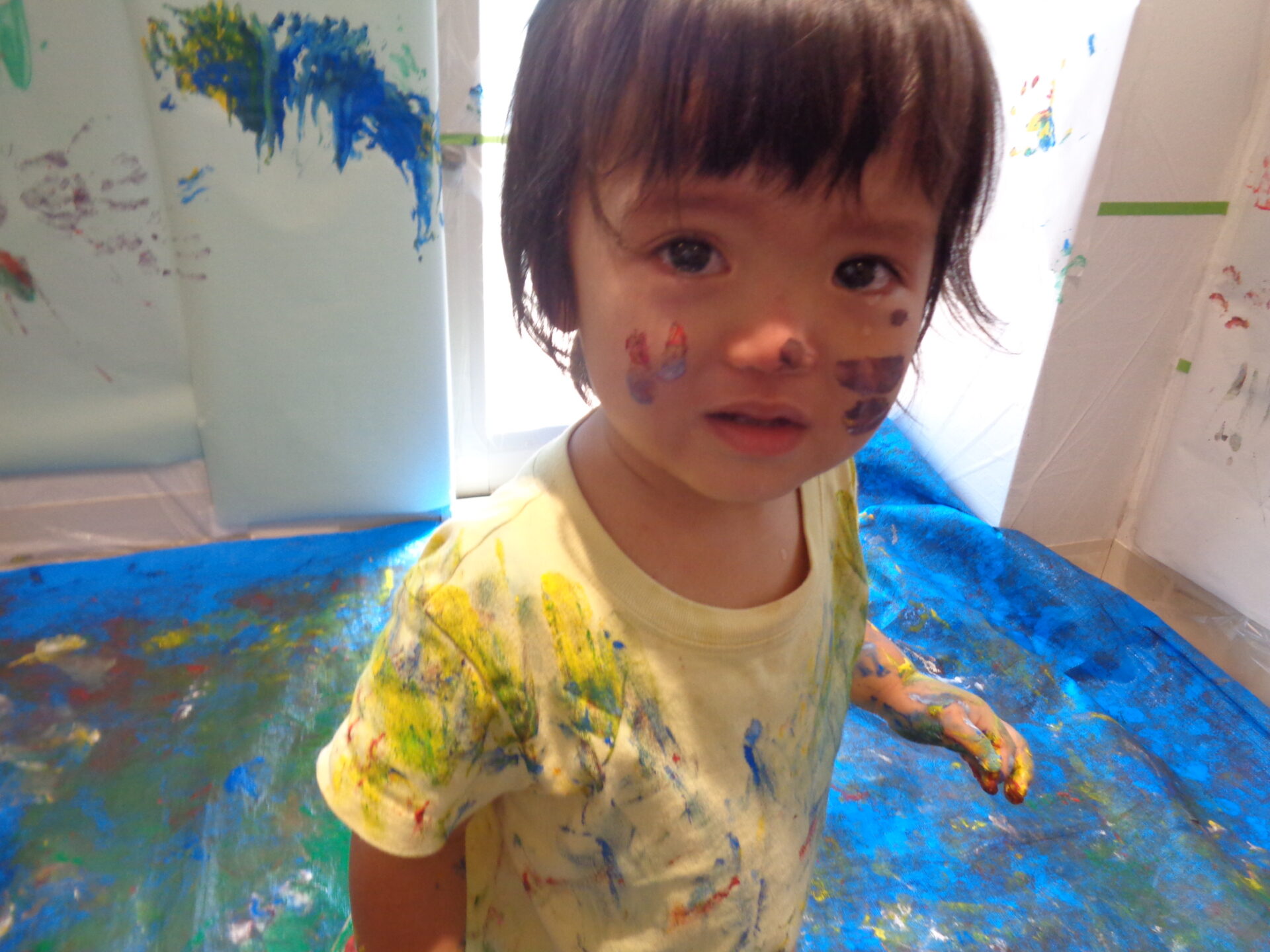 自分から絵の具を触りに行き、こんなに素敵な笑顔を見せてくれるようになりました😊