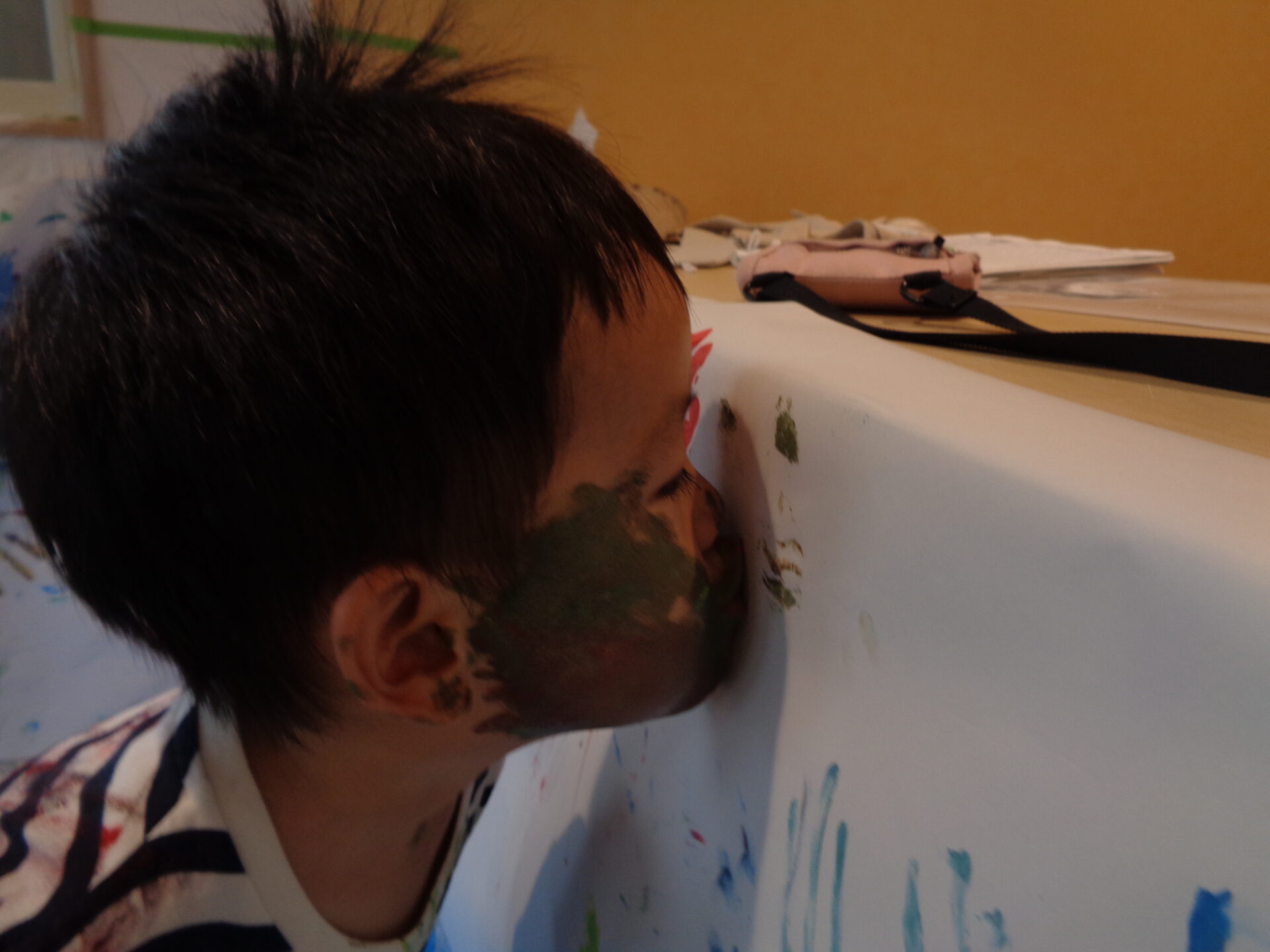 だいち組の頃は絵の具が付いて汚れることが苦手で、こんなに泣いてしまうお友だちもいたんです😢