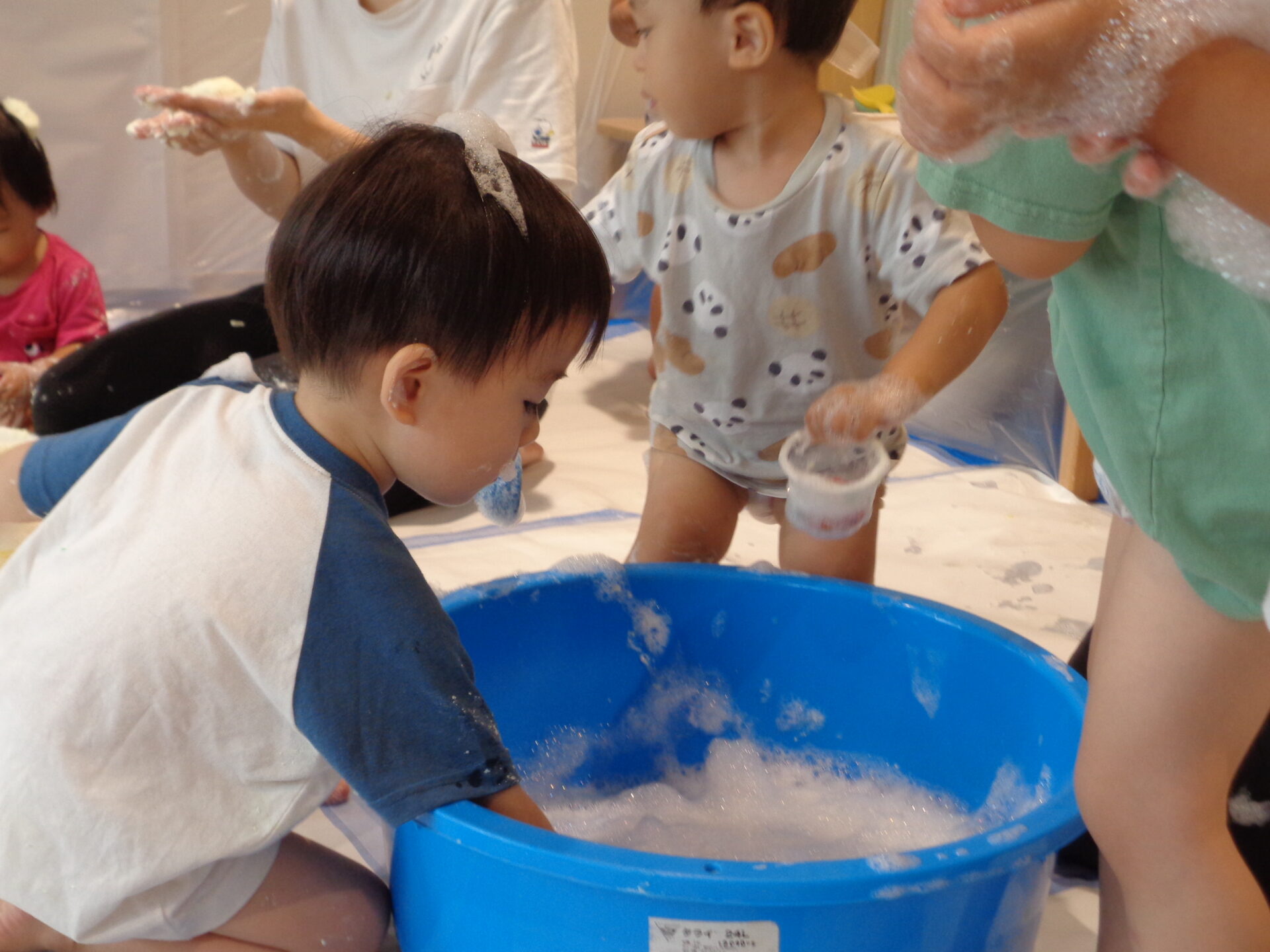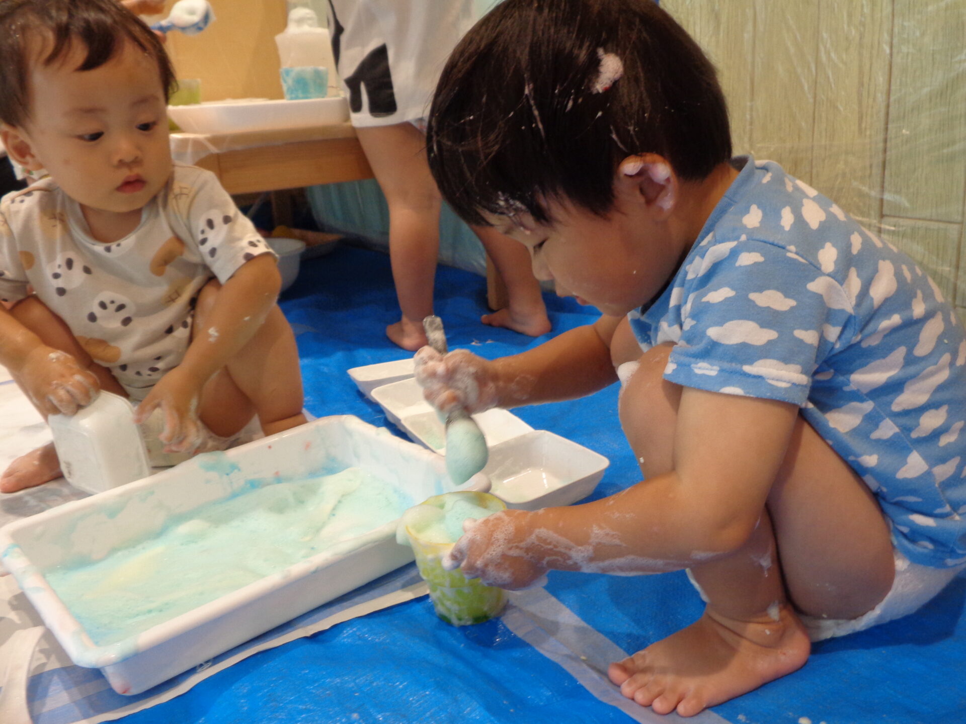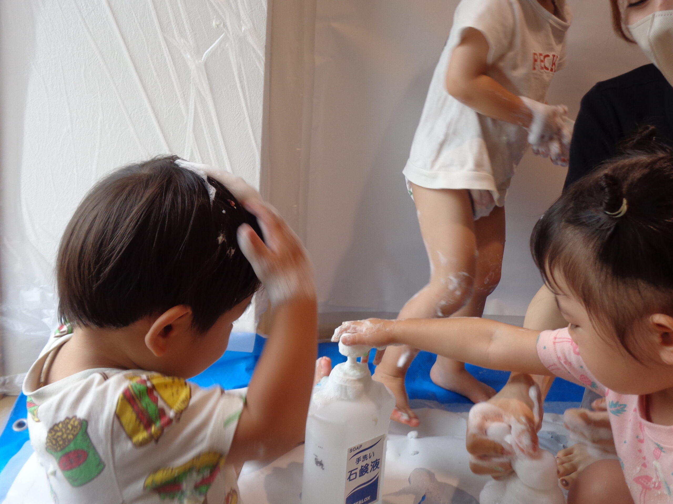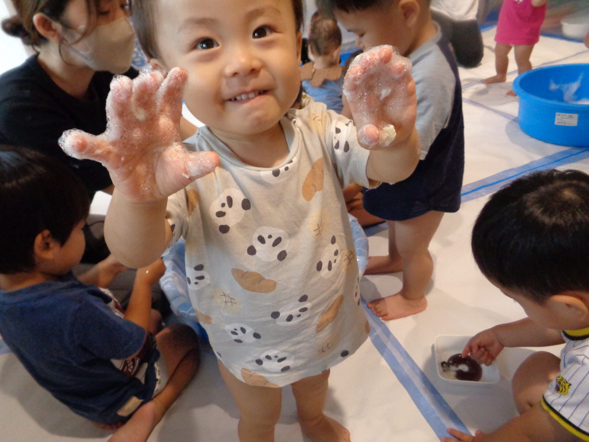 ふわふわの泡も完成して、いよいよ泡遊びスタートです!