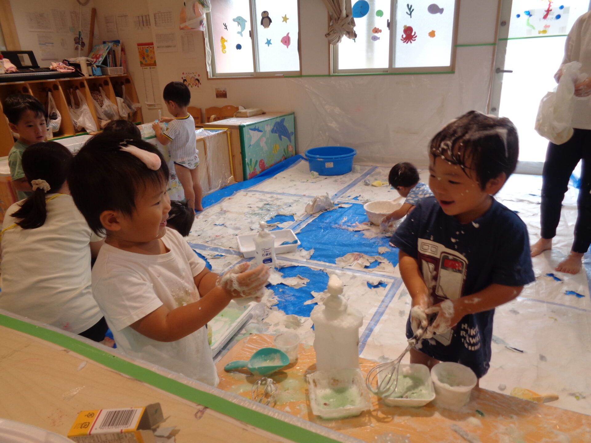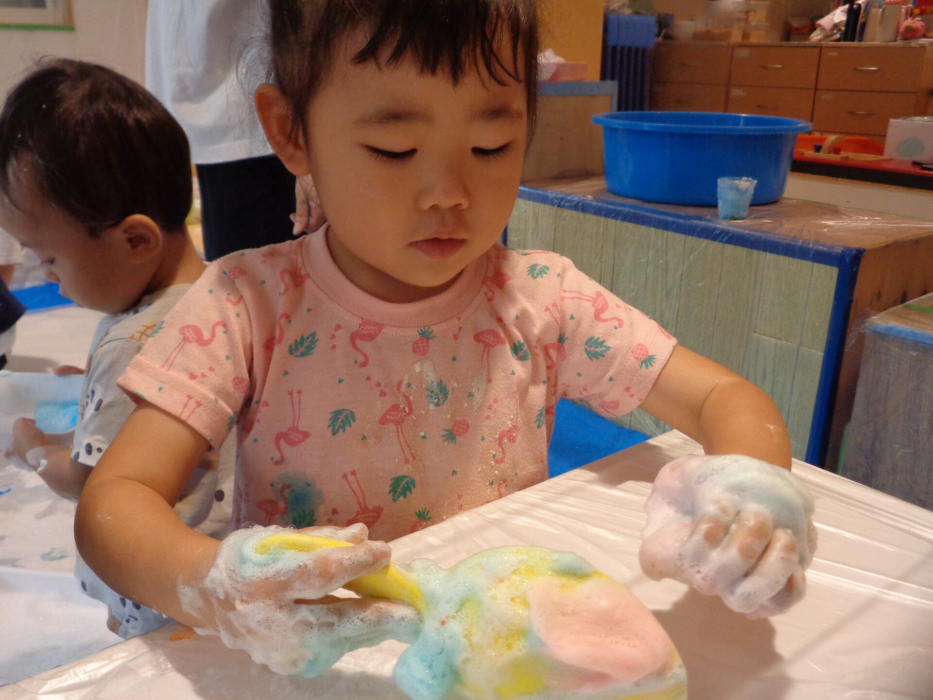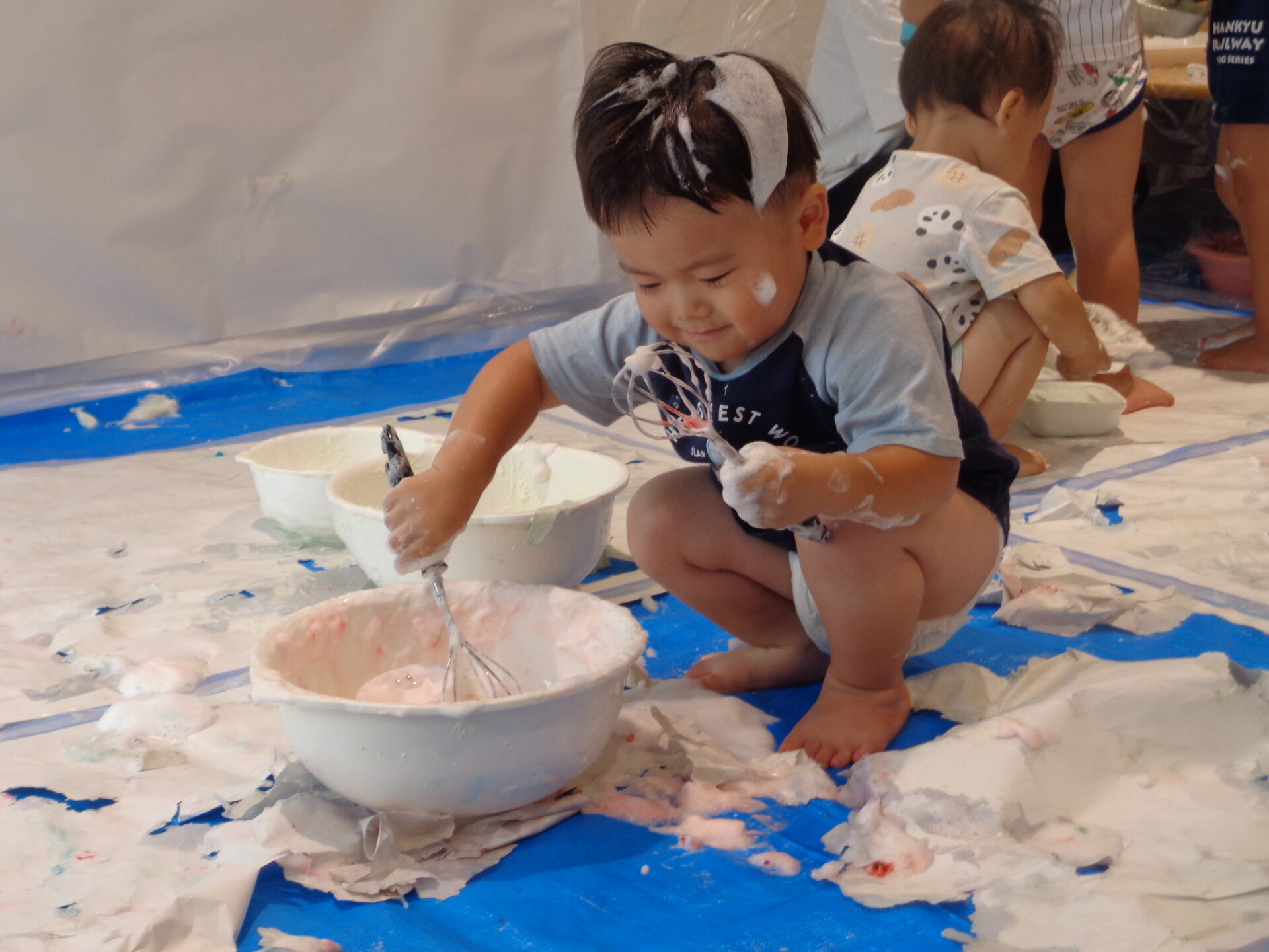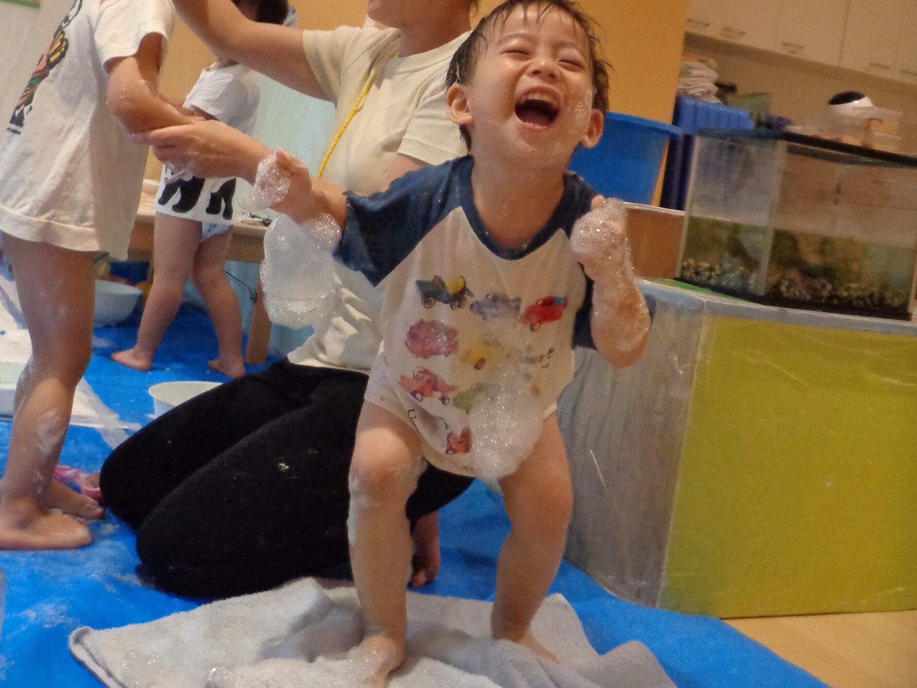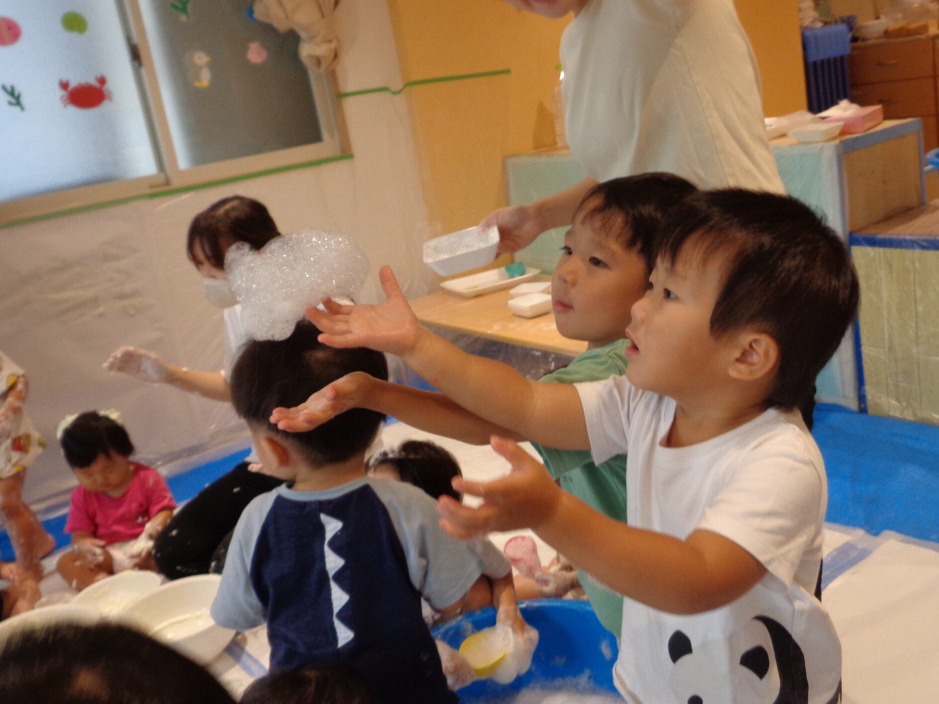 ふわふわの泡も完成して、いよいよ泡遊びスタートです!