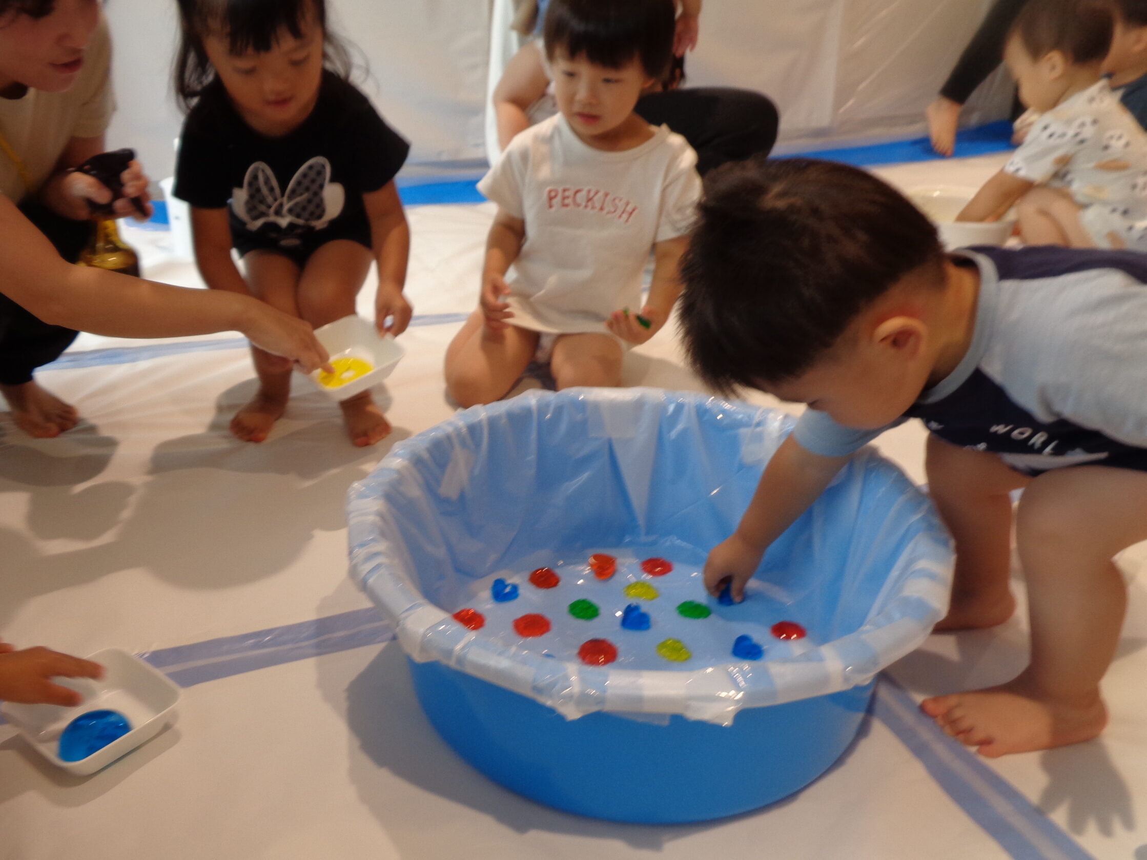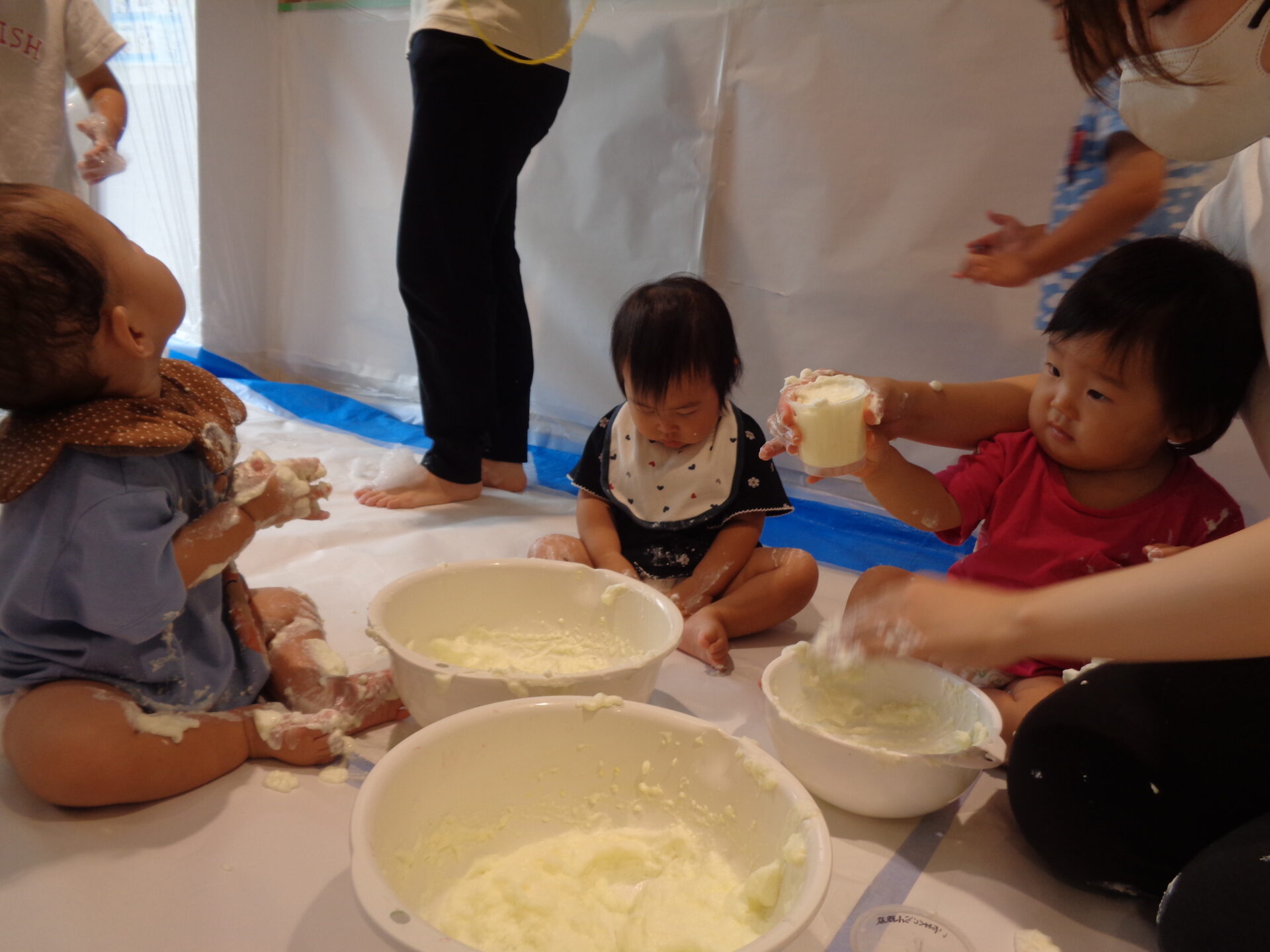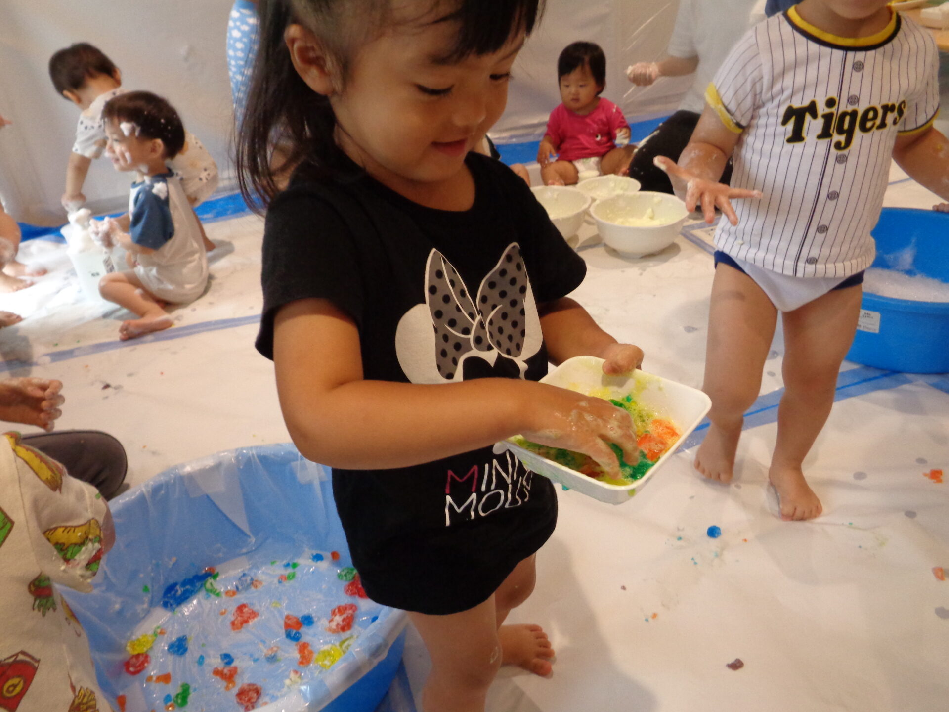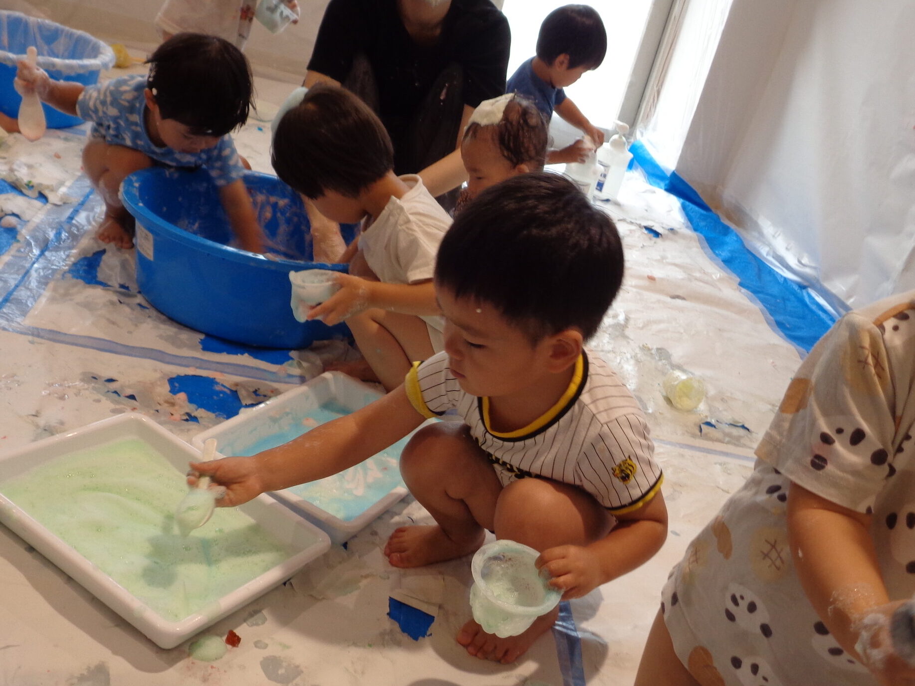 ふわふわの泡も完成して、いよいよ泡遊びスタートです!