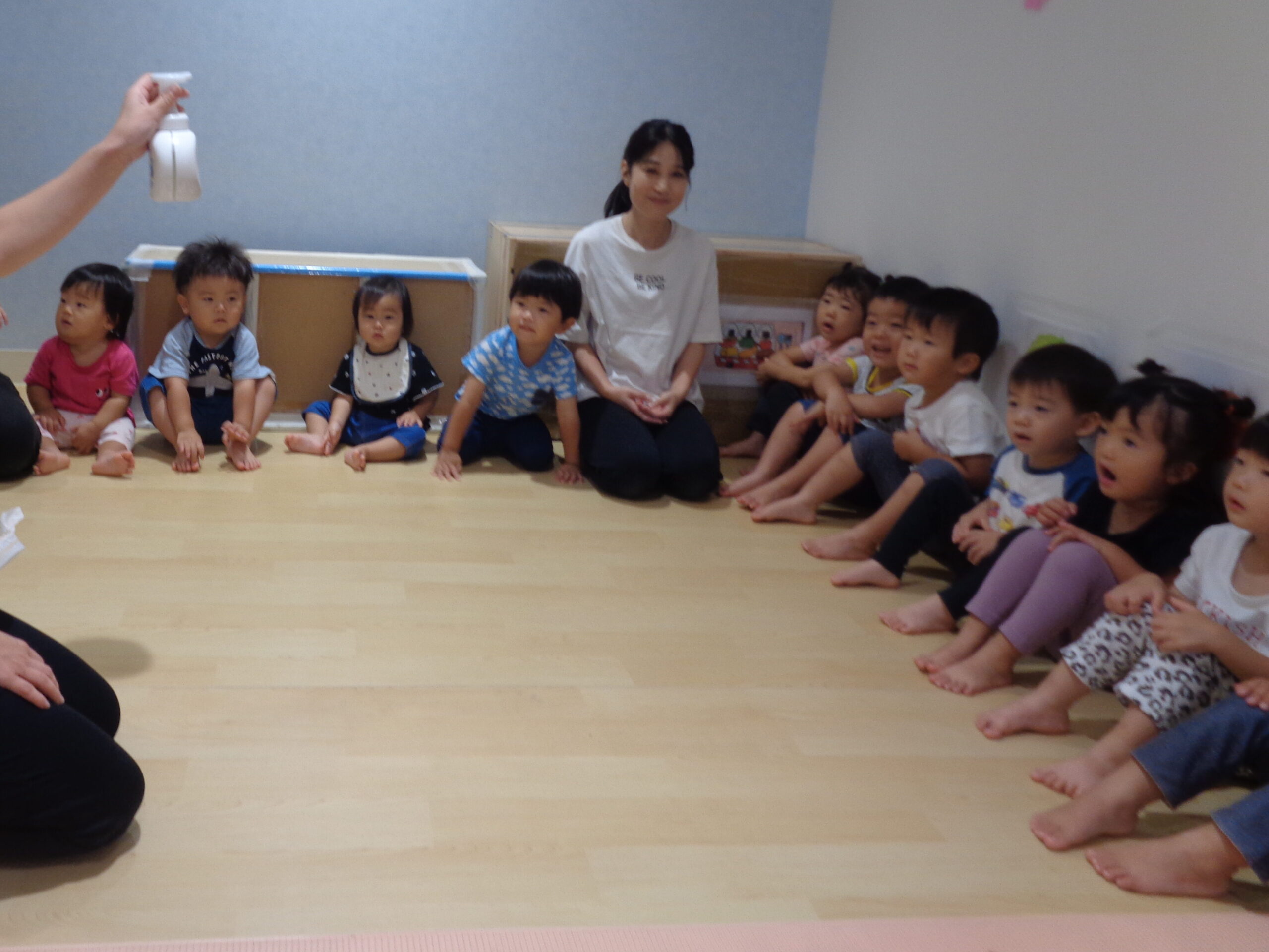 いつもは手洗いで使うハンドソープを用いた活動に、子どもたちはワクワクした表情でお話を聞いていました😊