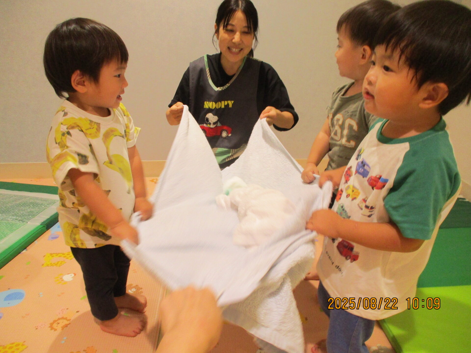 まずは、タオルを使って遊びました。