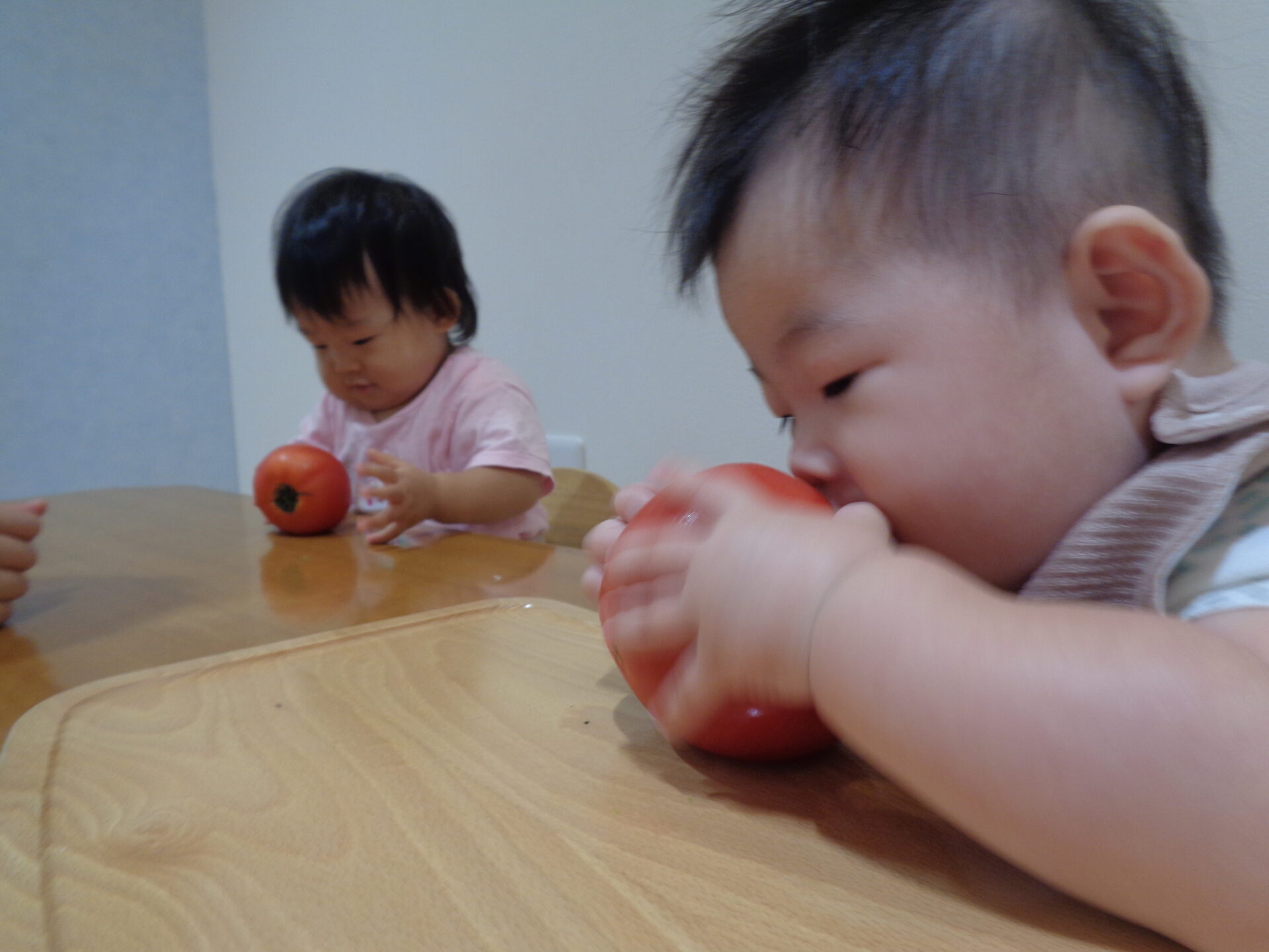 一方こちらのお友だちはトマトが切られたことが衝撃だったのか