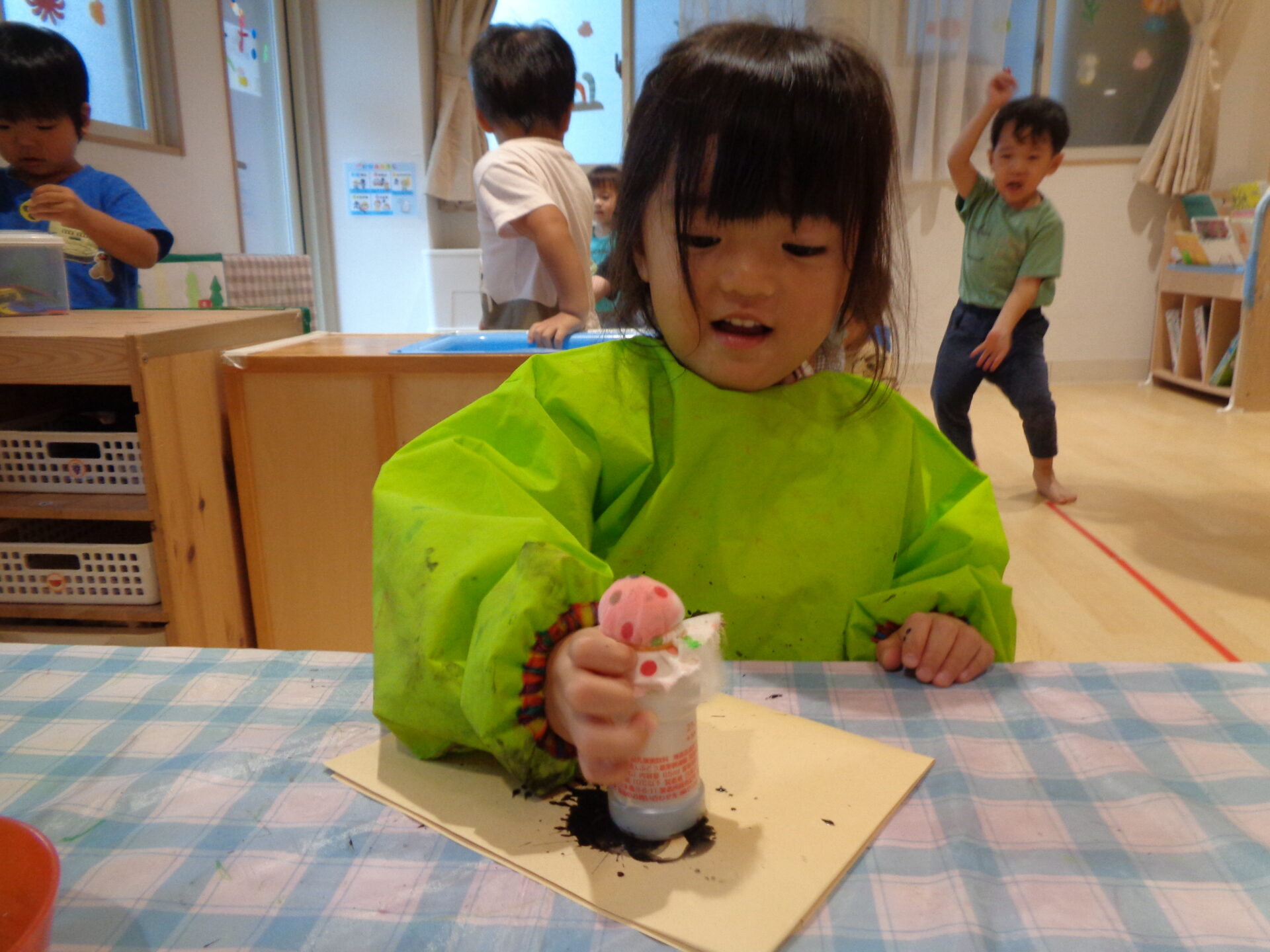 みんな手が汚れることも気にせず、たくさんどんぐりを描いてくれました。
