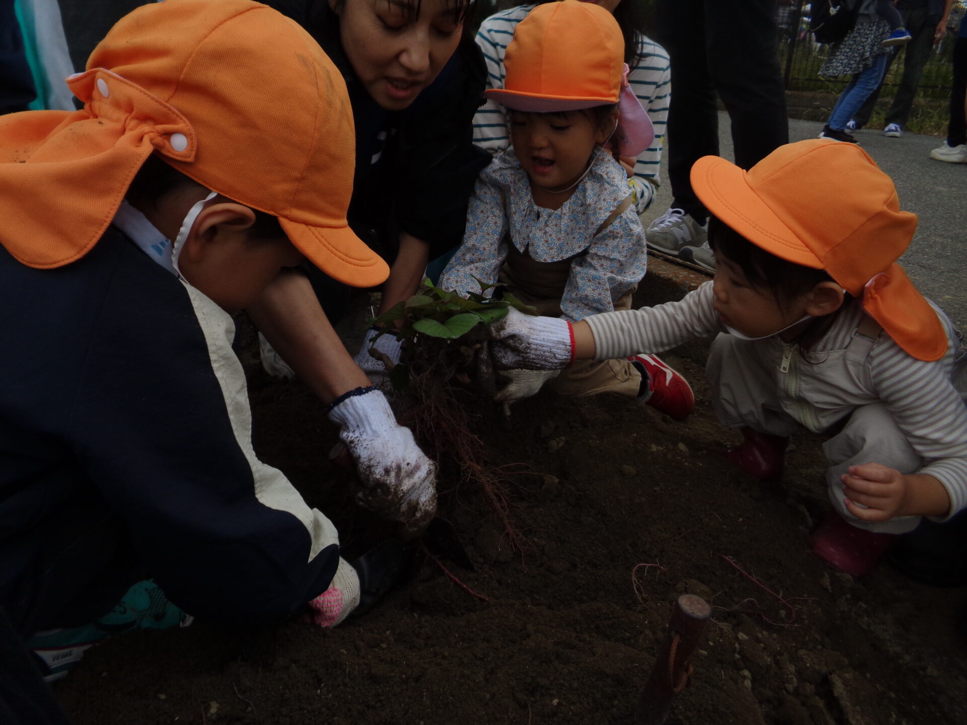 保護者の方と一緒に掘ったり、ひとりで引っ張ってみたり、、、!