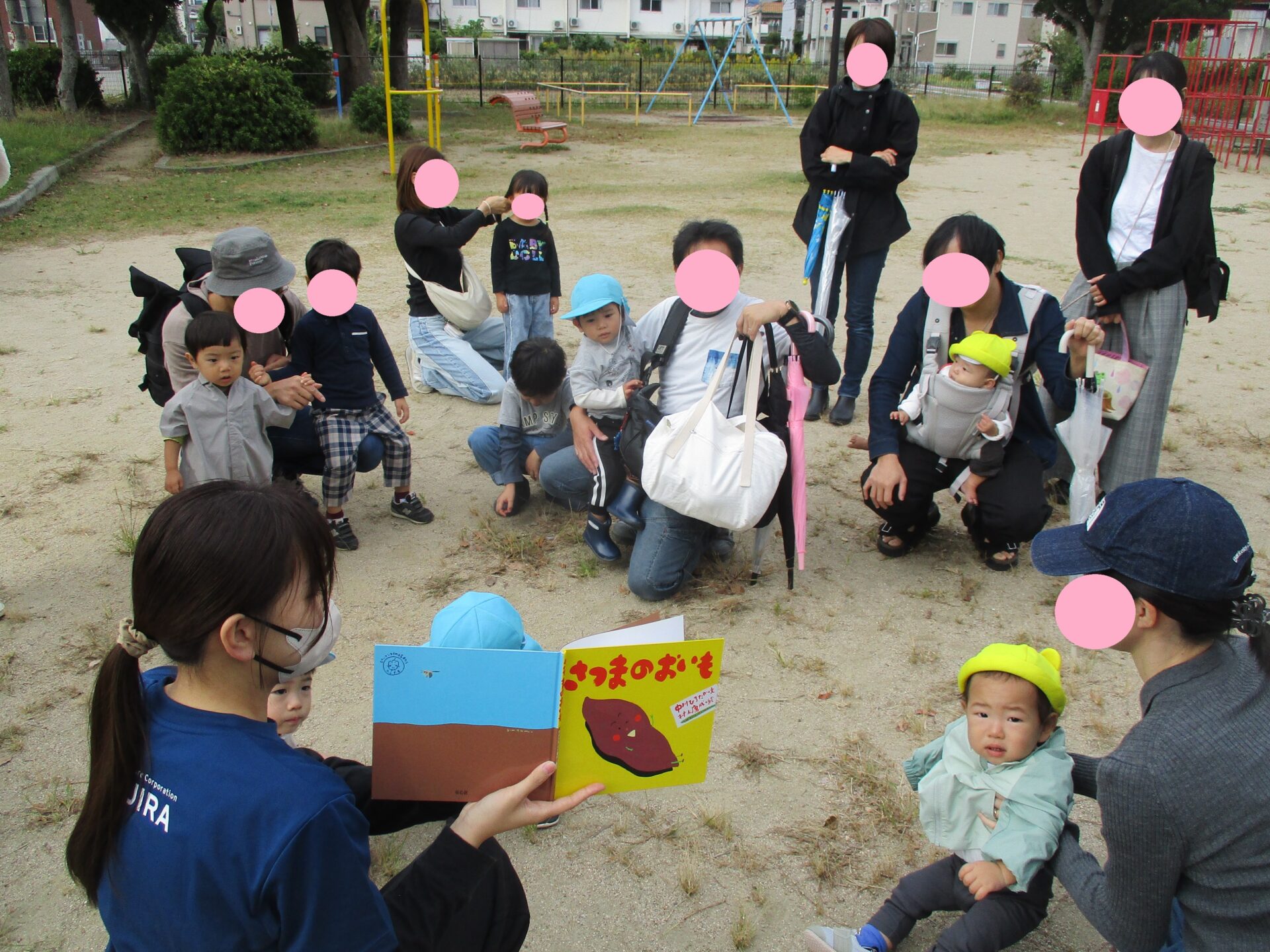 まず初めにお芋を掘る前に保育園でもよく読んでいる絵本と注意事項を聞きました。