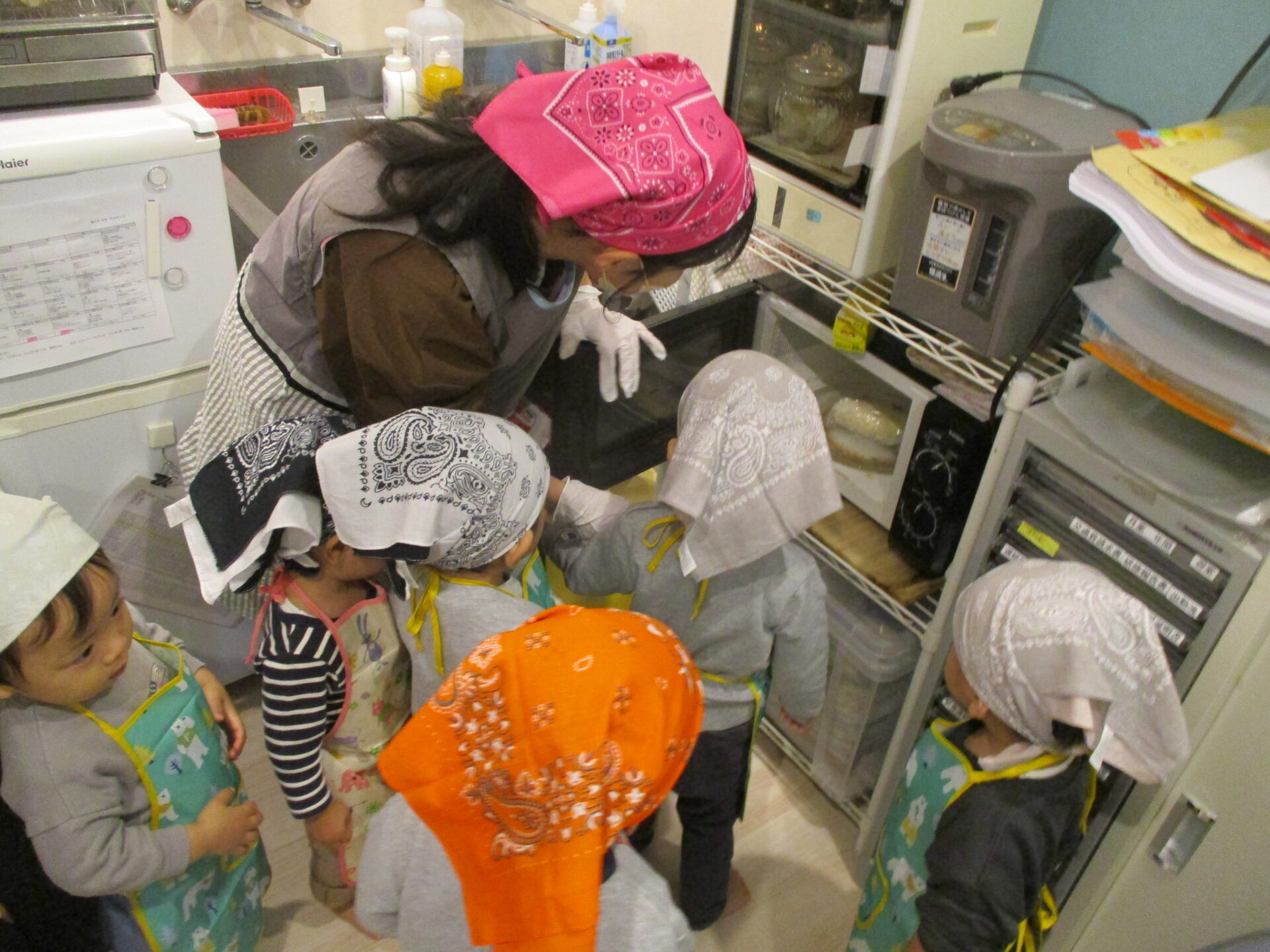 前回ピザ作りの時にエプロン・バンダナを着けたので、見せた時から