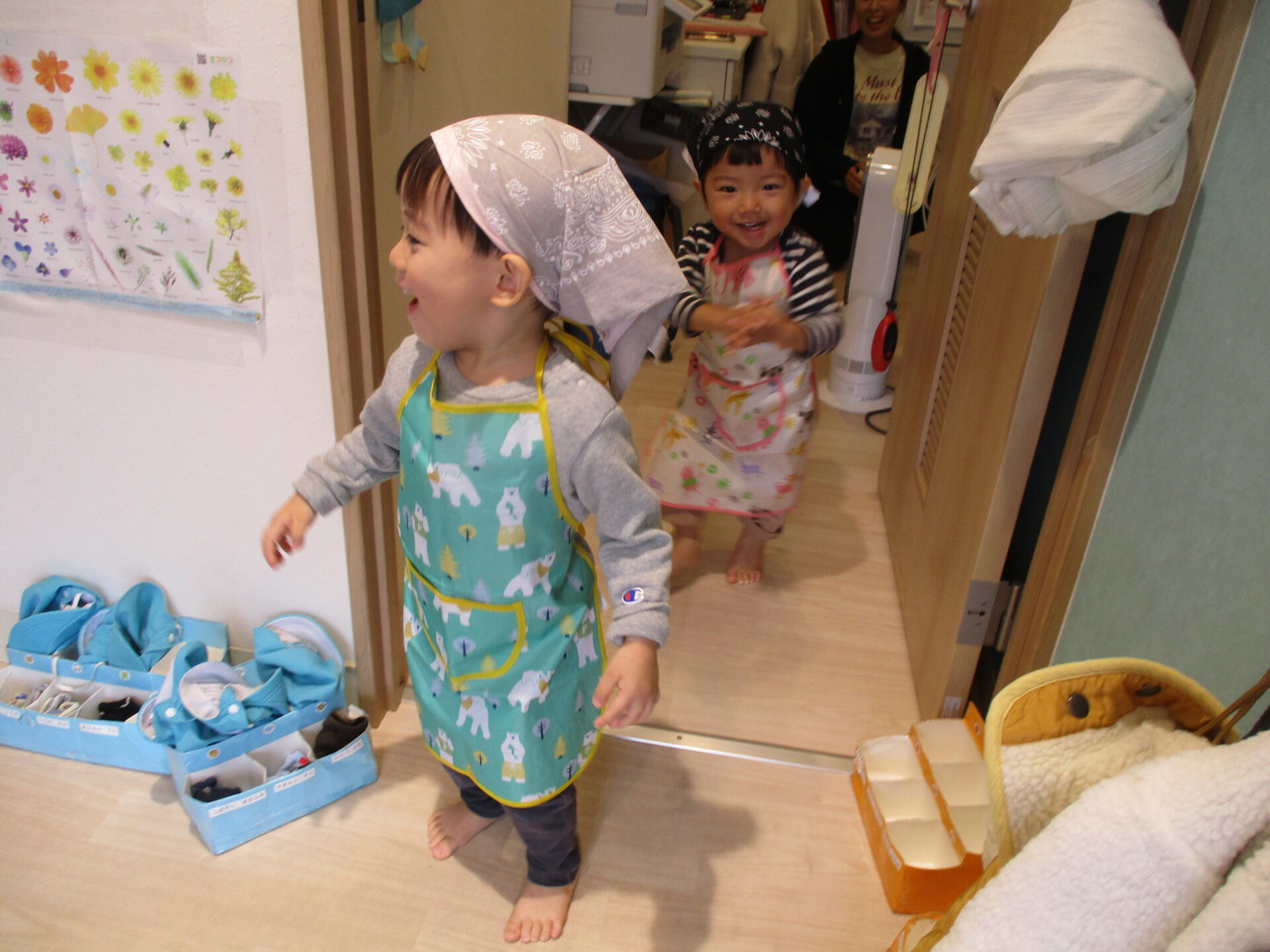 「〇〇くんも着ける!」